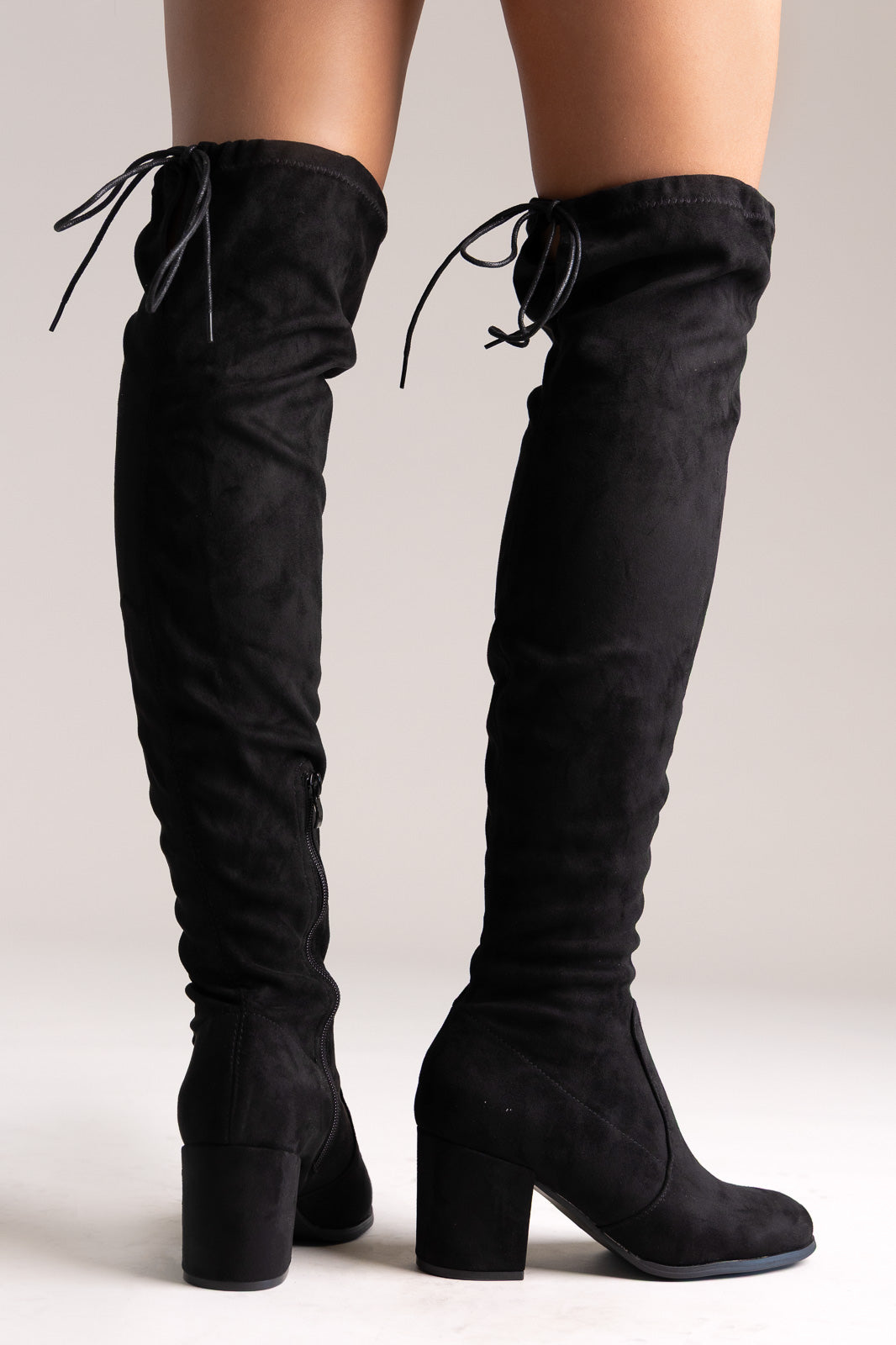 Over-the-Knee Suede Μπότες με Δέσιμο - Μαύρο Suede