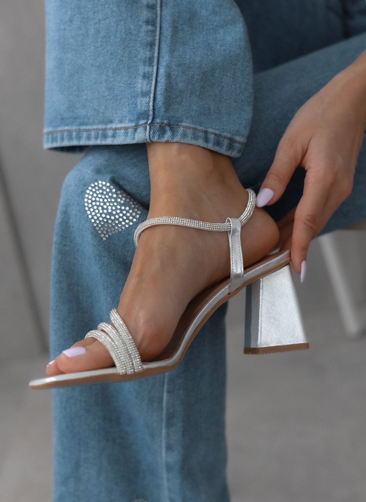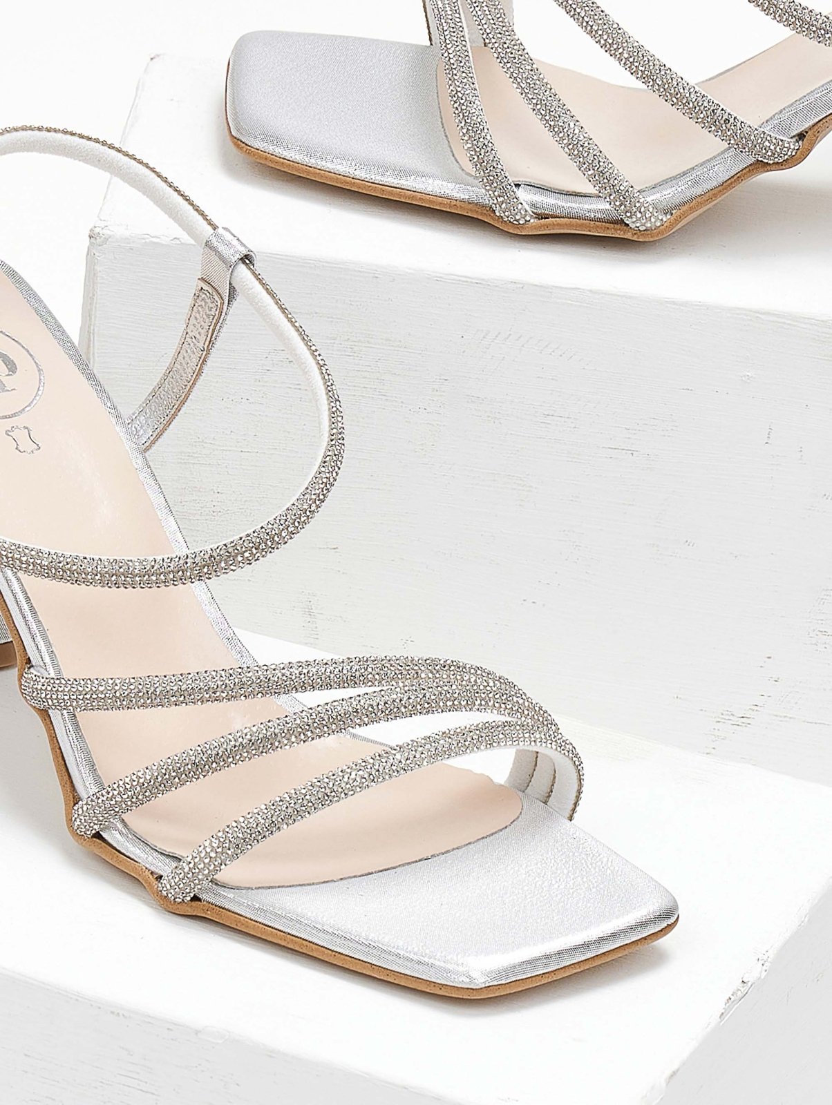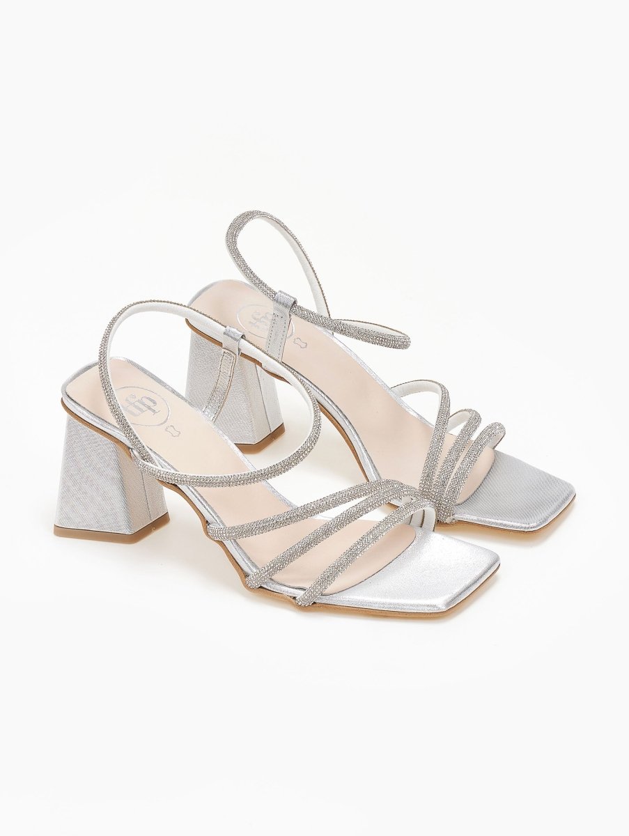 Πέδιλα με στρας σατέν tfp - Ασημί