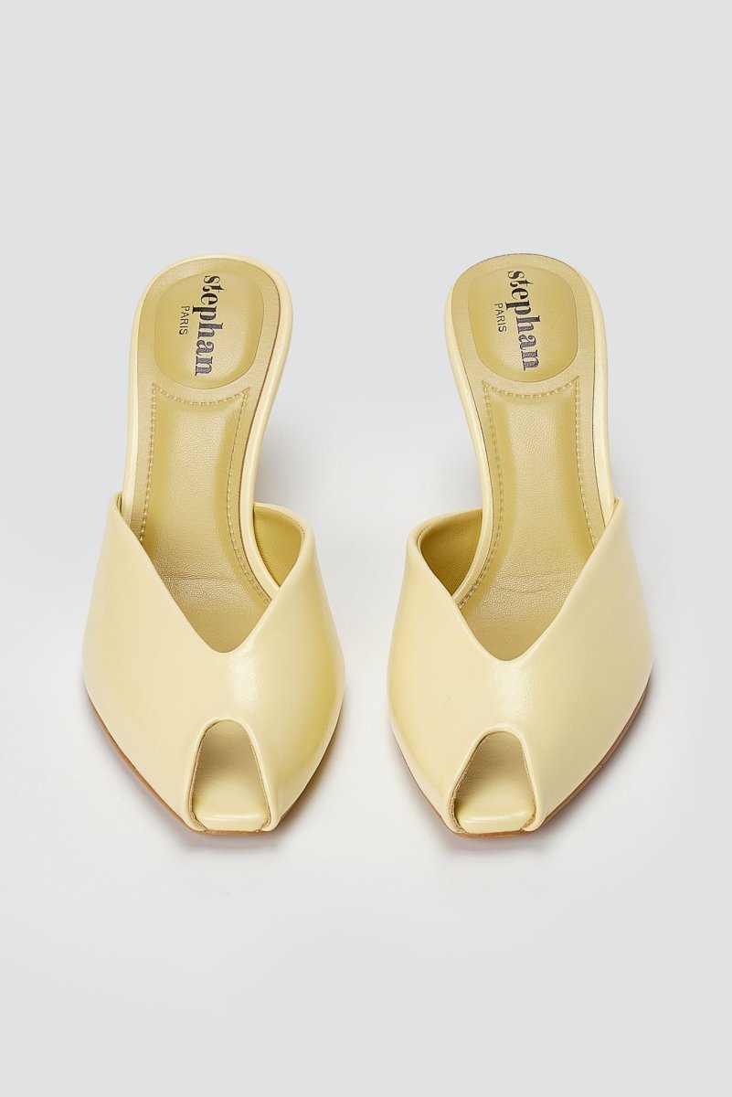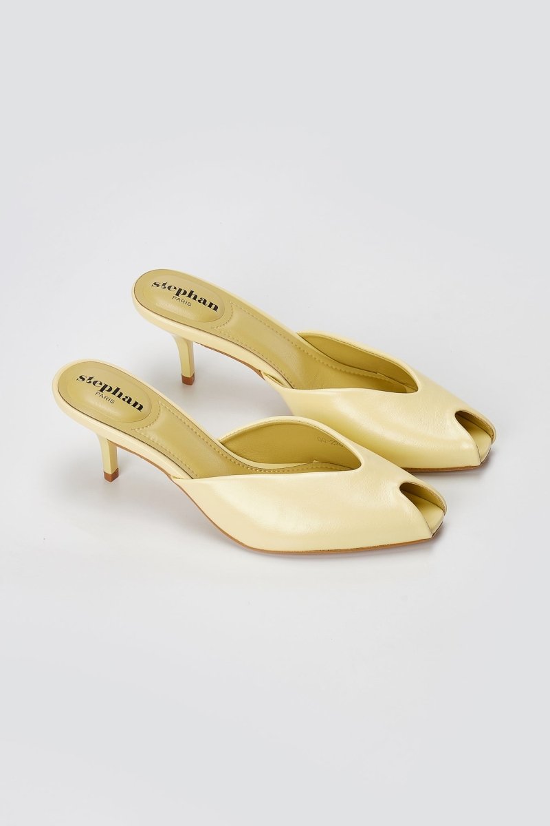 Peep Toe Mules Kitten Heel - Κίτρινα Ματ