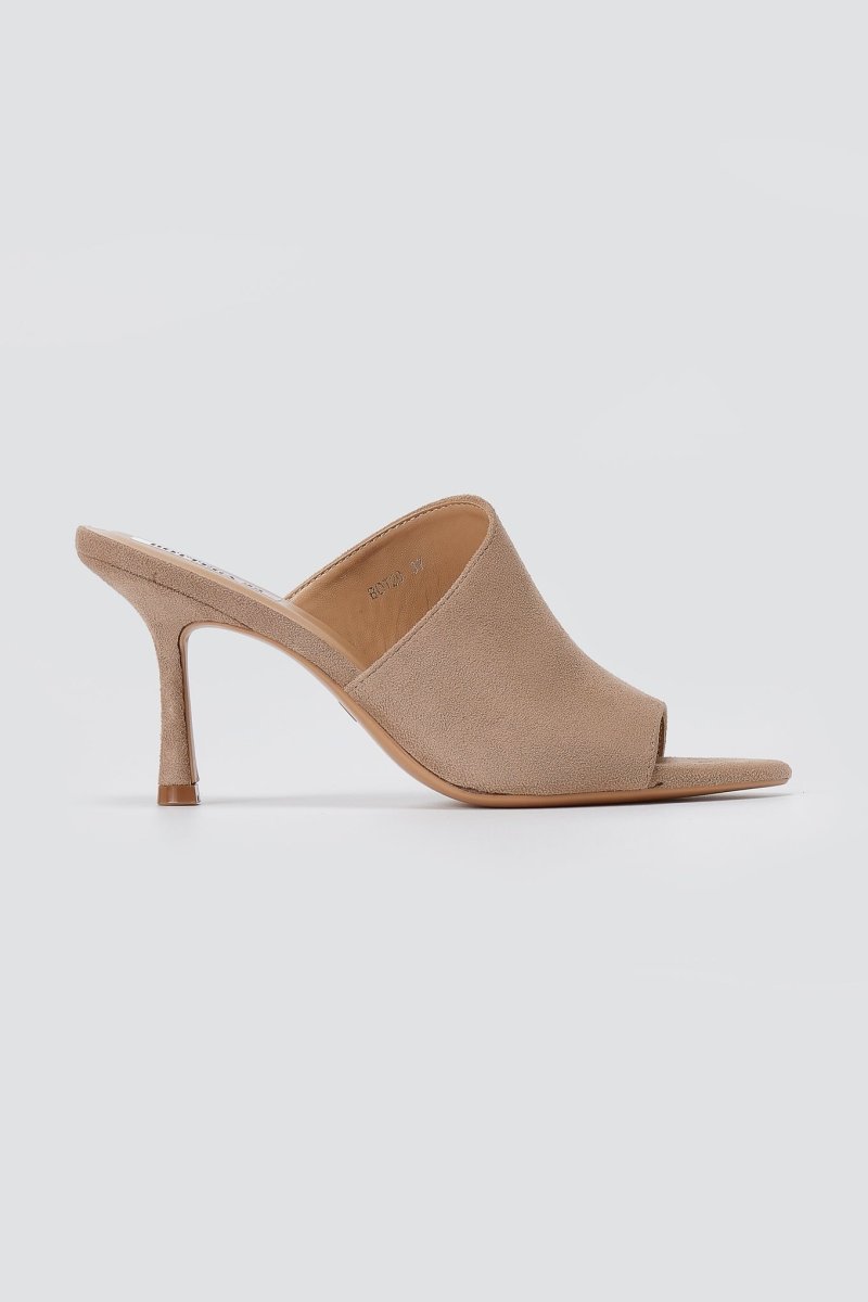 Peep Toe Mules με λεπτό τακούνι - Τάουπε Σουέντ