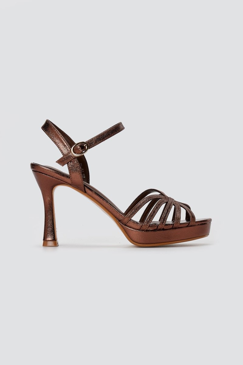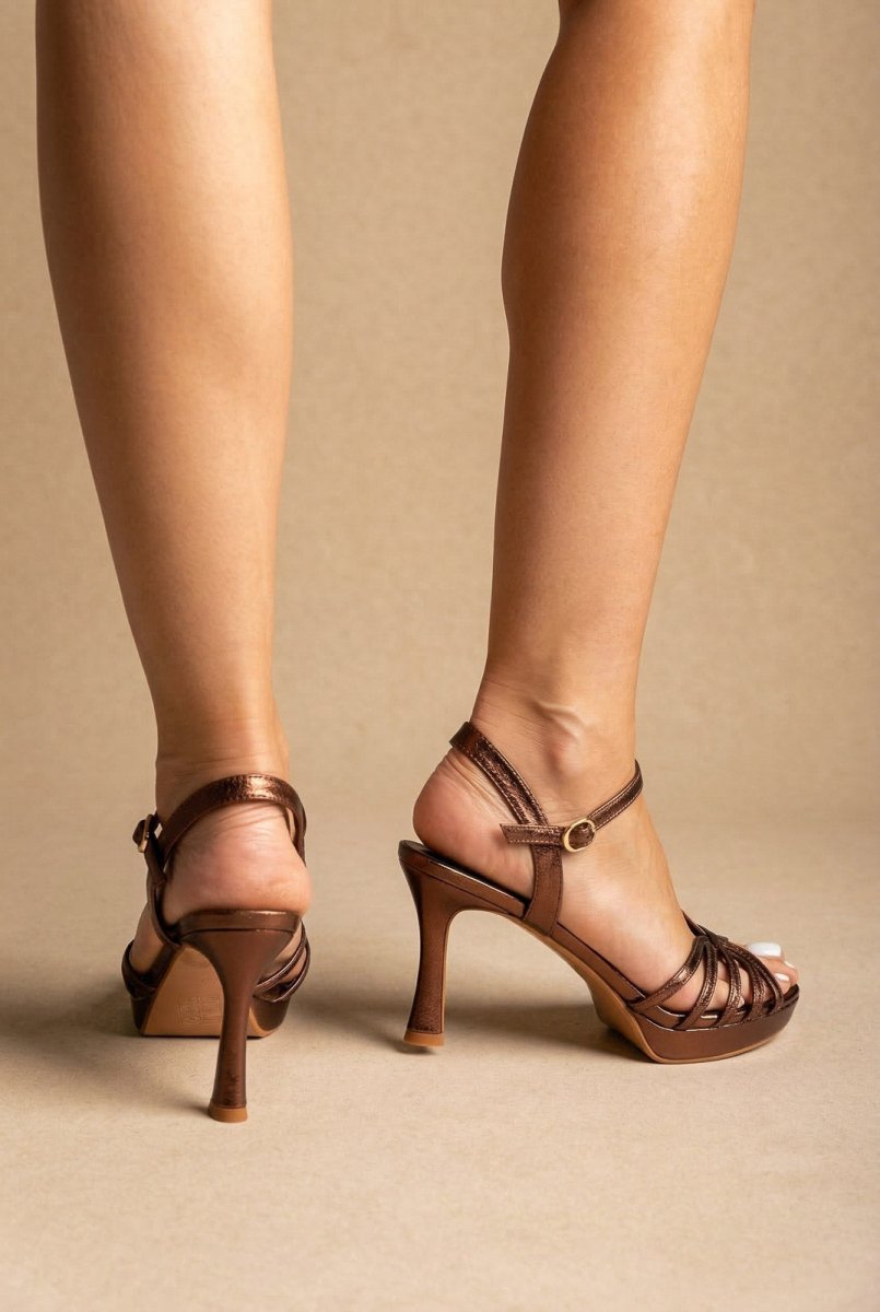 Πέδιλα με ψηλό τακούνι - μπρονζέ μεταλλικό