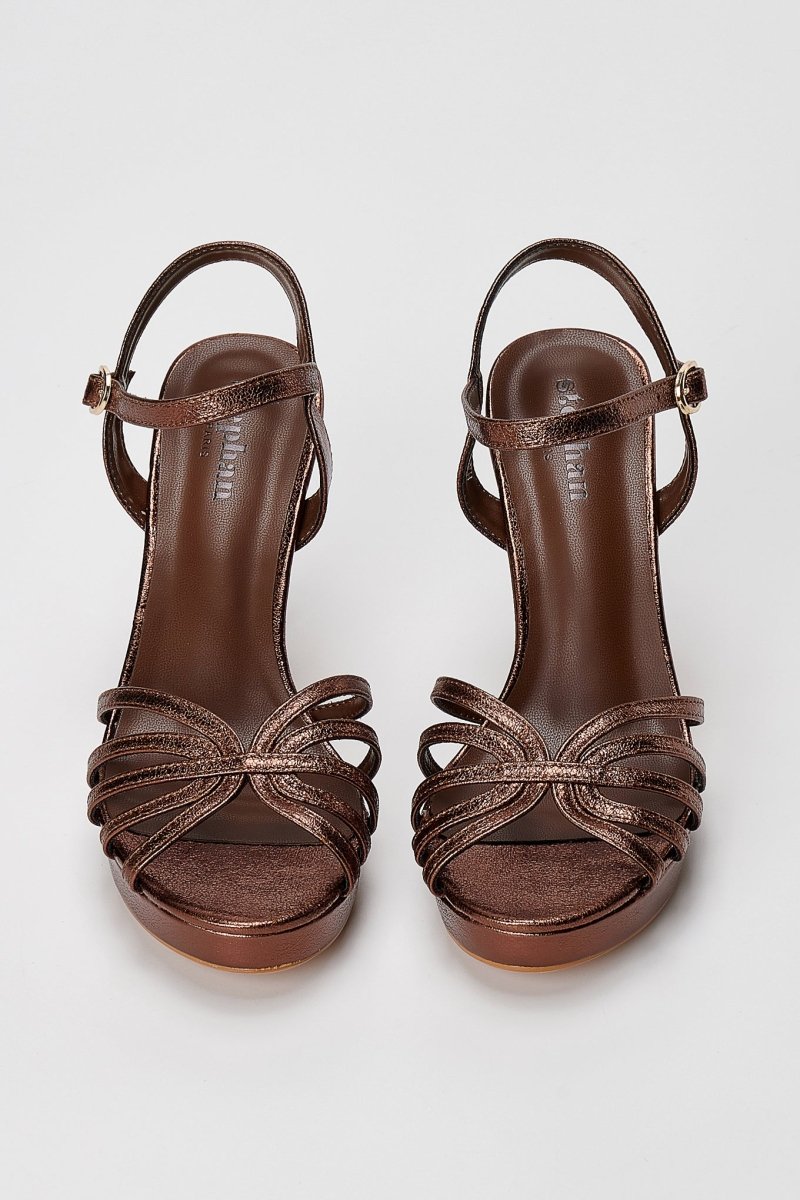 The Stephan Platform High Heel Sandals in Bronze Metallic are a sophisticated choice for those seeking glamorous footwear for special occasions. Featuring a striking metallic finish, these sandals combine contemporary style with practical comfort through their platform sole design and adjustable ankle strap. Perfect for evening events, cocktail parties, and standout occasion looks, these heels deliver both elegance and confidence with every step.