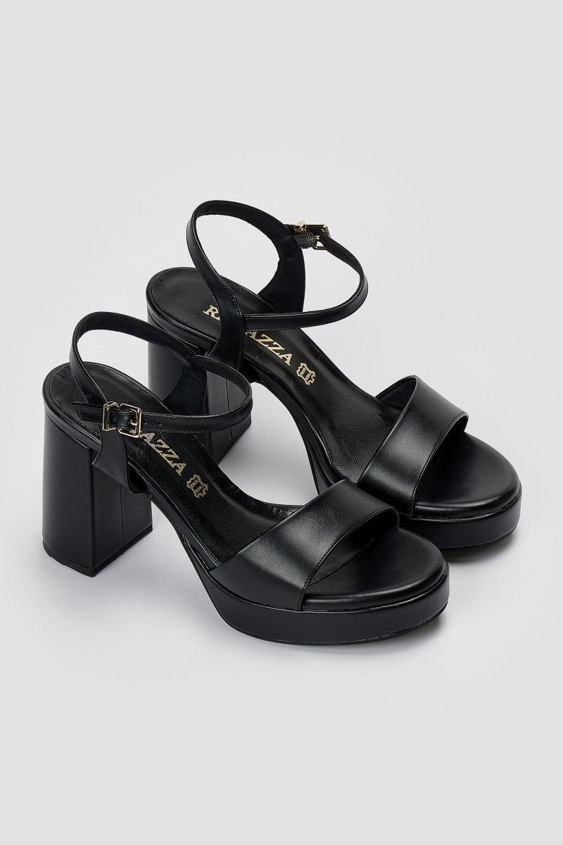 The RAGAZZA Platform Sandals in Black Matte deliver contemporary style with practical comfort. Featuring a stable block heel and sleek toe band design, these sandals combine modern aesthetics with functional engineering. The secure ankle strap ensures stability while the balanced platform lift provides elevated comfort for all-day wear.