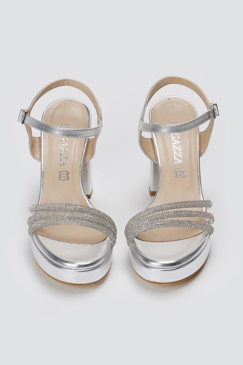 Πέδιλα με Χοντρό Τακούνι - Ασημί Μεταλλικό
