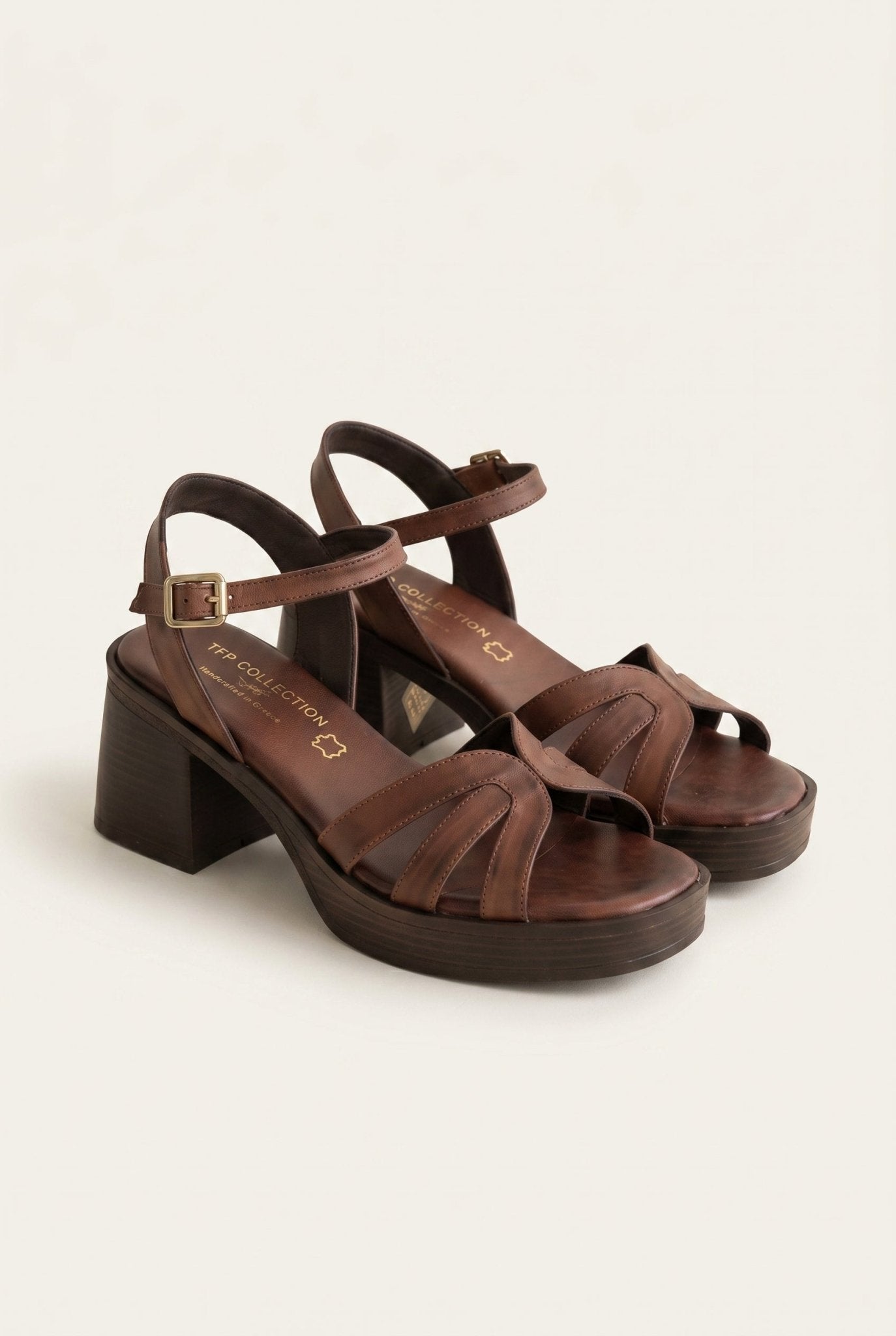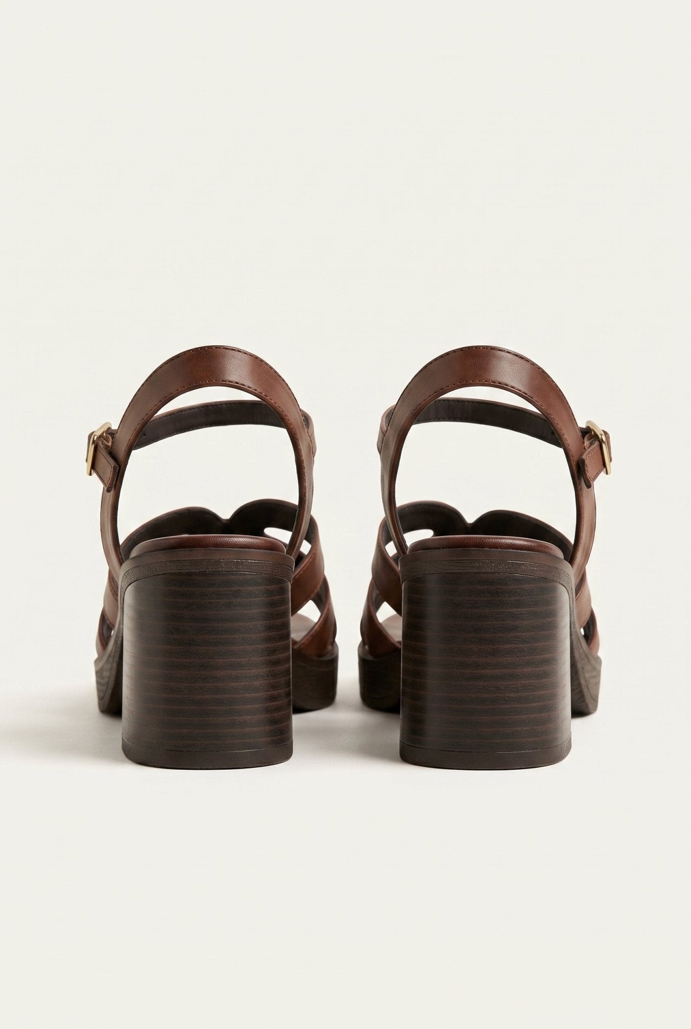 Πέδιλα με Τετράγωνο Τακούνι - Σκούρο Καφέ Ματ
