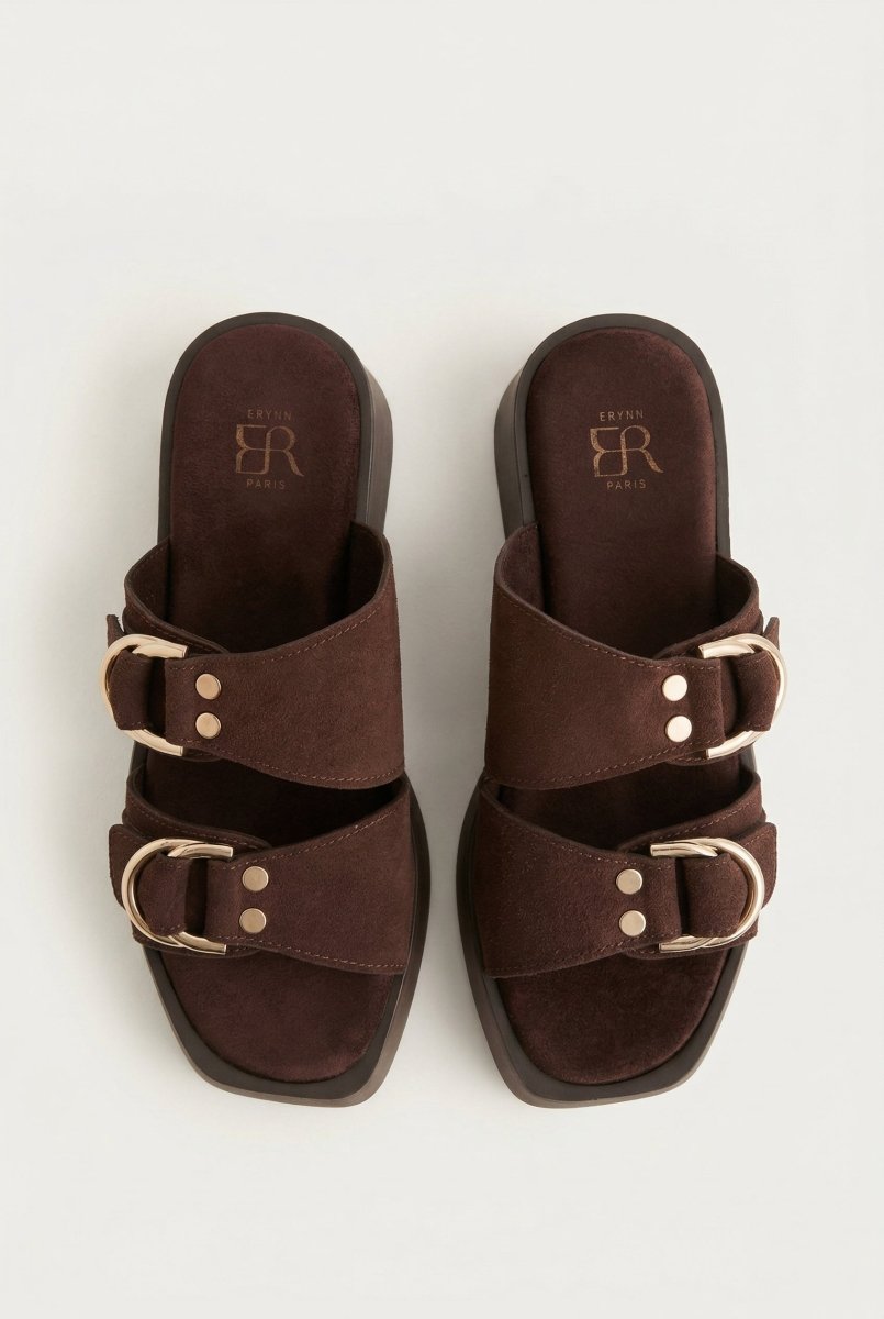 The ERYNN Platform Sandals Metal Detail in Brown Suede combine contemporary style with everyday comfort. These sophisticated sandals feature premium suede construction, striking metallic accents, and a supportive platform design. Perfect for summer wardrobes, these versatile sandals transition seamlessly from casual outings to elevated casual occasions.