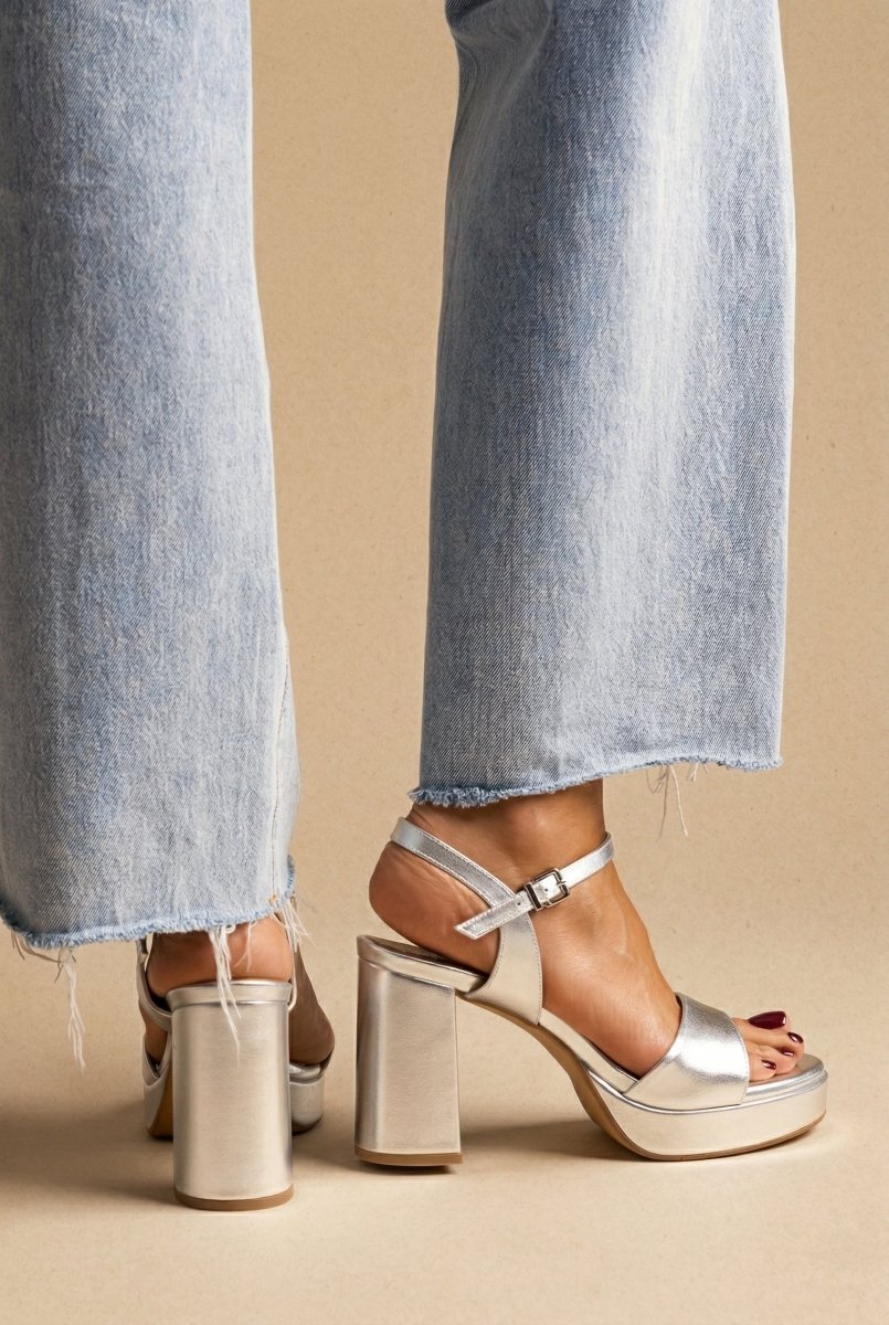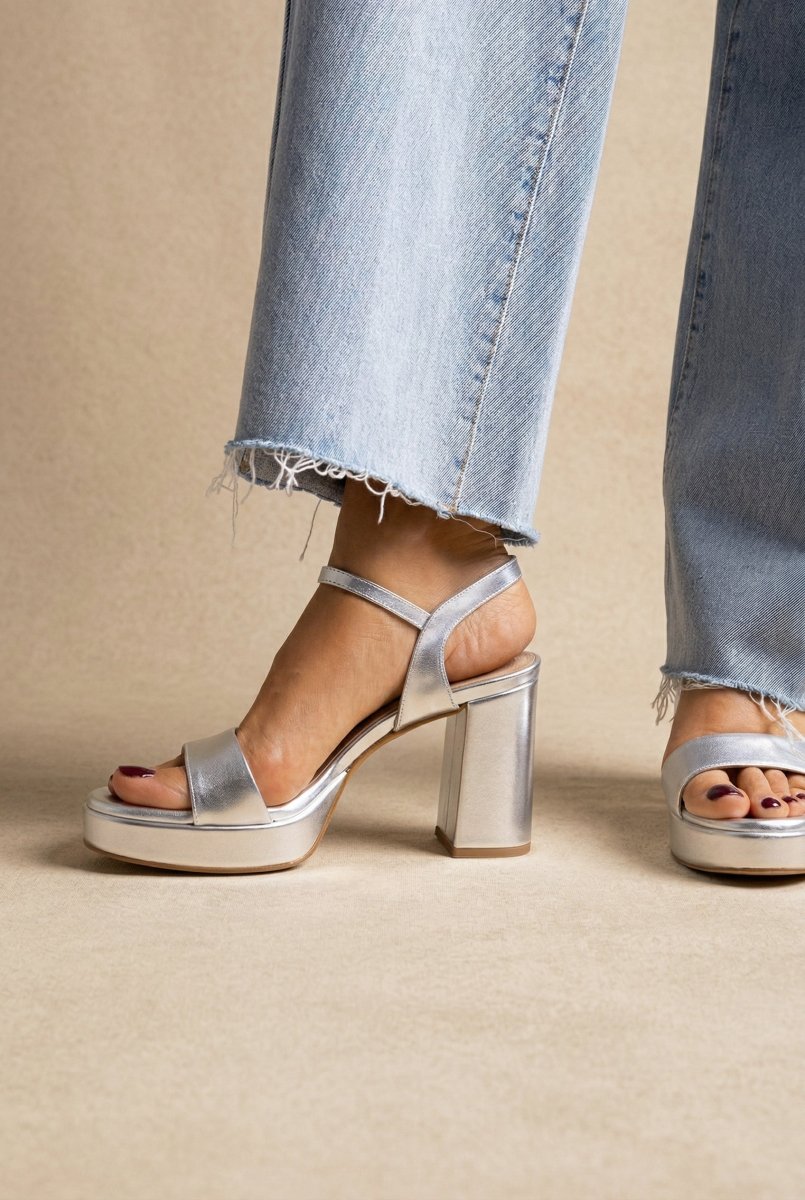 Πέδιλα με τετράγωνο τακούνι - ασημί μεταλλικό