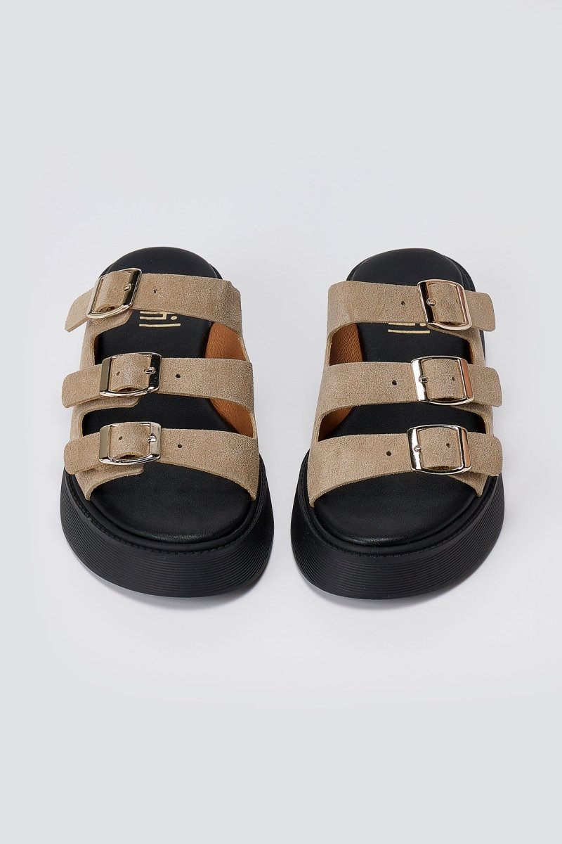 The Estil Platform Sandals in Taupe Suede combine contemporary style with everyday comfort. Featuring a sophisticated flatform design, these sandals showcase premium suede leather construction with three adjustable straps and metallic buckle fastenings. The soft cushioned footbed provides supportive comfort for all-day wear, making these sandals an ideal choice for modern women seeking refined, versatile footwear.