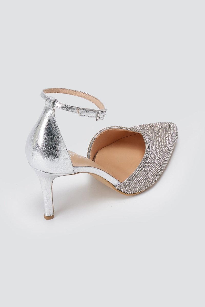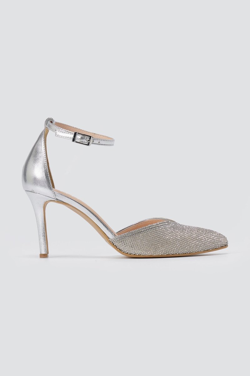 Μυτερές Γόβες Με Μπαρέτα Διακοσμημένες με Στρας - Ασημί Strass