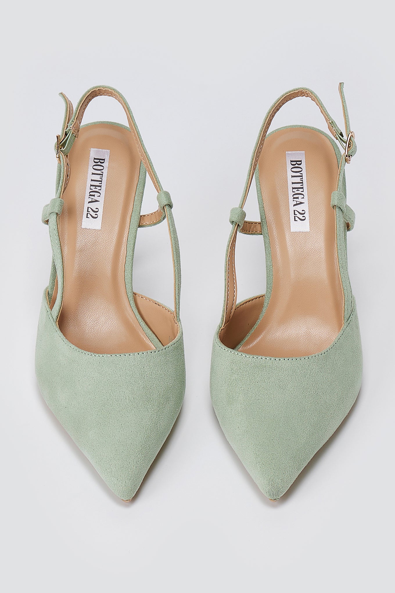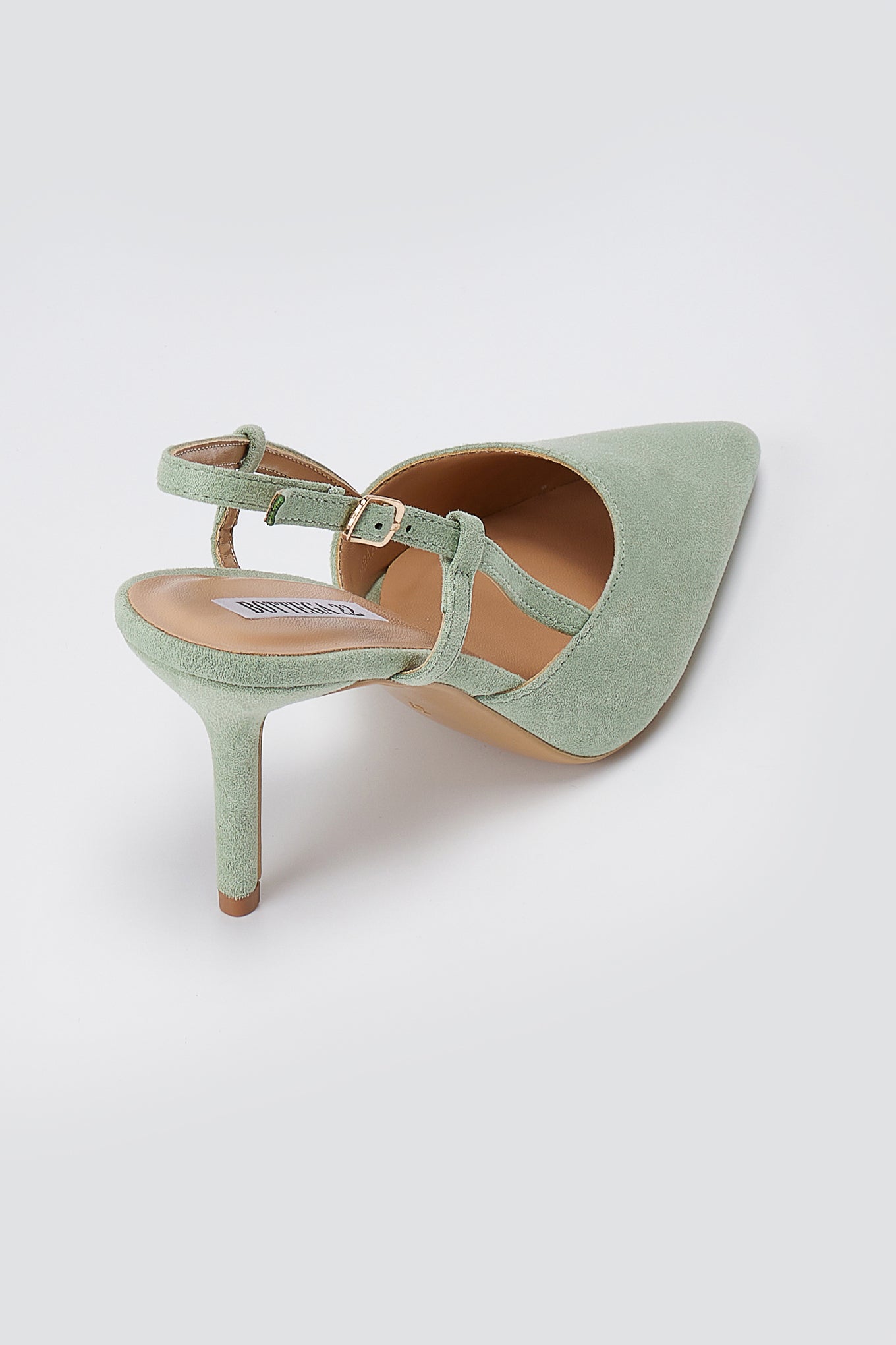 The BOTEGGA 22 Pointed Slingback Pumps in Mint Green Suede combine contemporary elegance with timeless sophistication. Featuring a sleek pointed toe and secure slingback design, these slim heel pumps deliver a refined feminine silhouette perfect for both professional and formal settings. Crafted from premium suede, they offer a luxurious finish that elevates any wardrobe.
