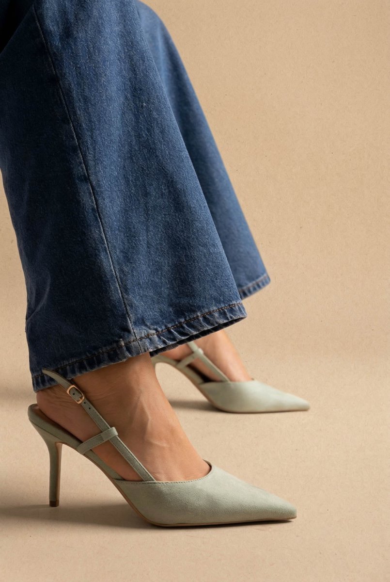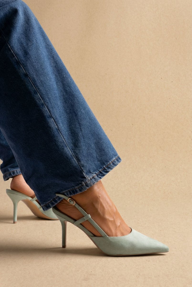 Μυτερές Slingback γόβες με λεπτό τακούνι - Μέντα πράσινο Σουέντ