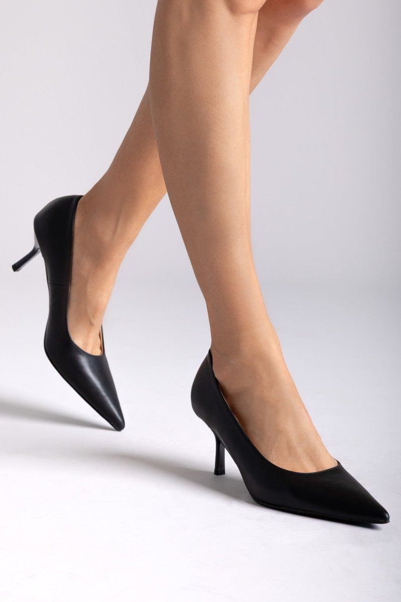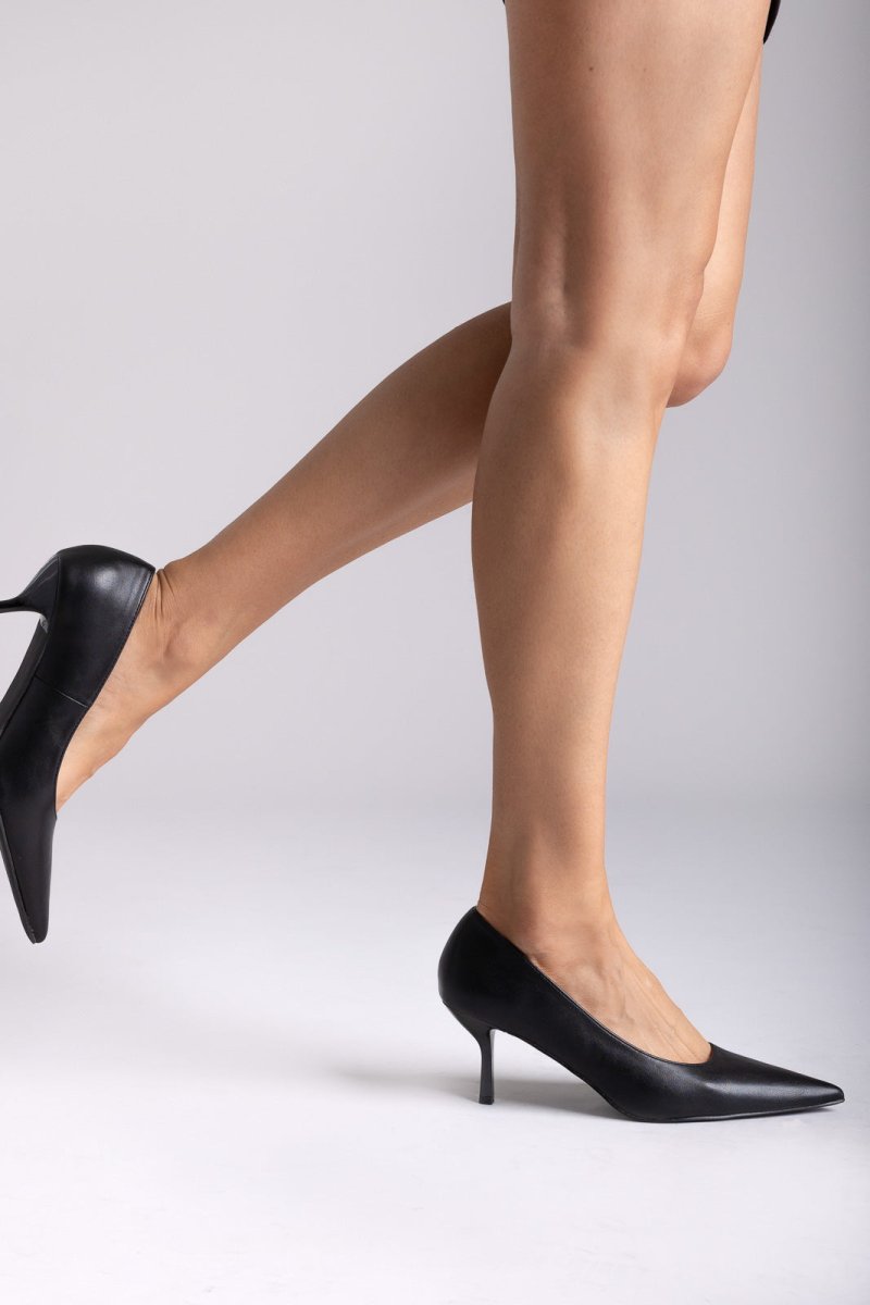 Κομψές γόβες με μυτερή μύτη και γυαλιστερό τακούνι στιλέτο. Μια εκλεπτυσμένη, θηλυκή σιλουέτα που συνδυάζει τη σύγχρονη κομψότητα με άνεση όλη μέρα.