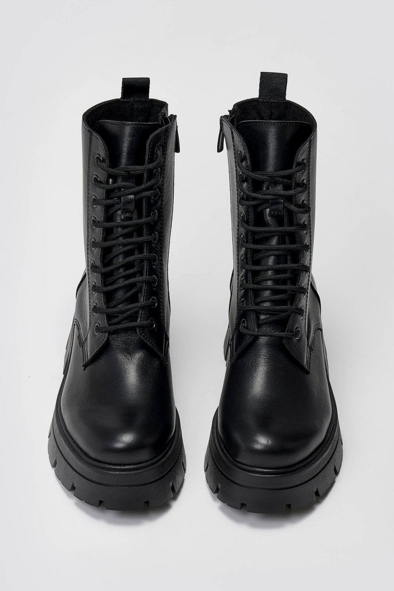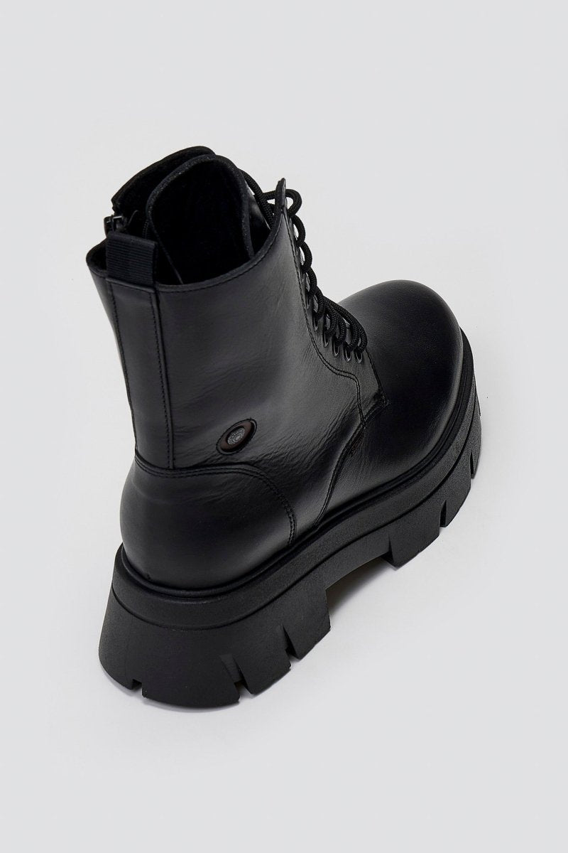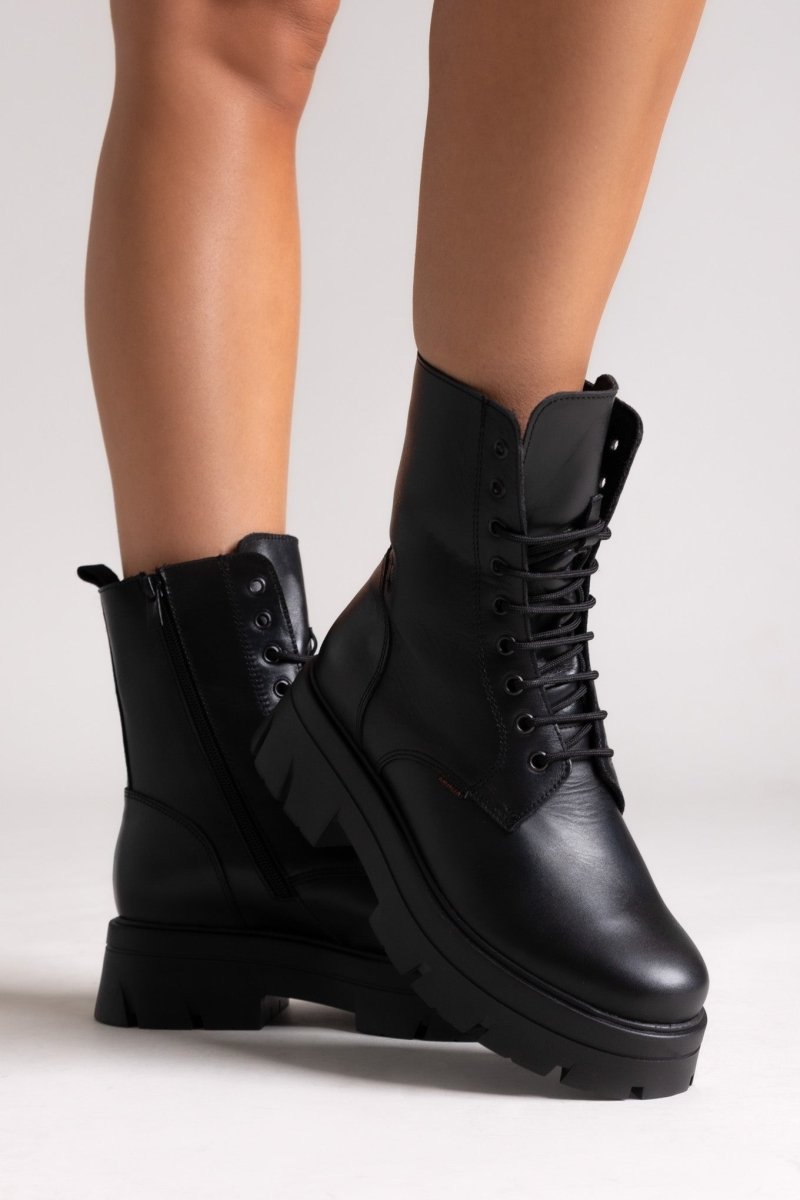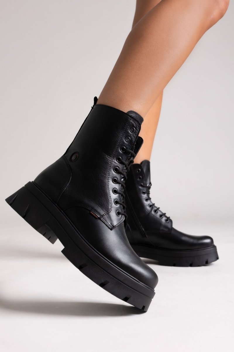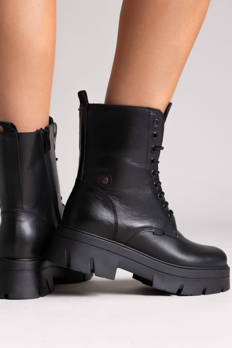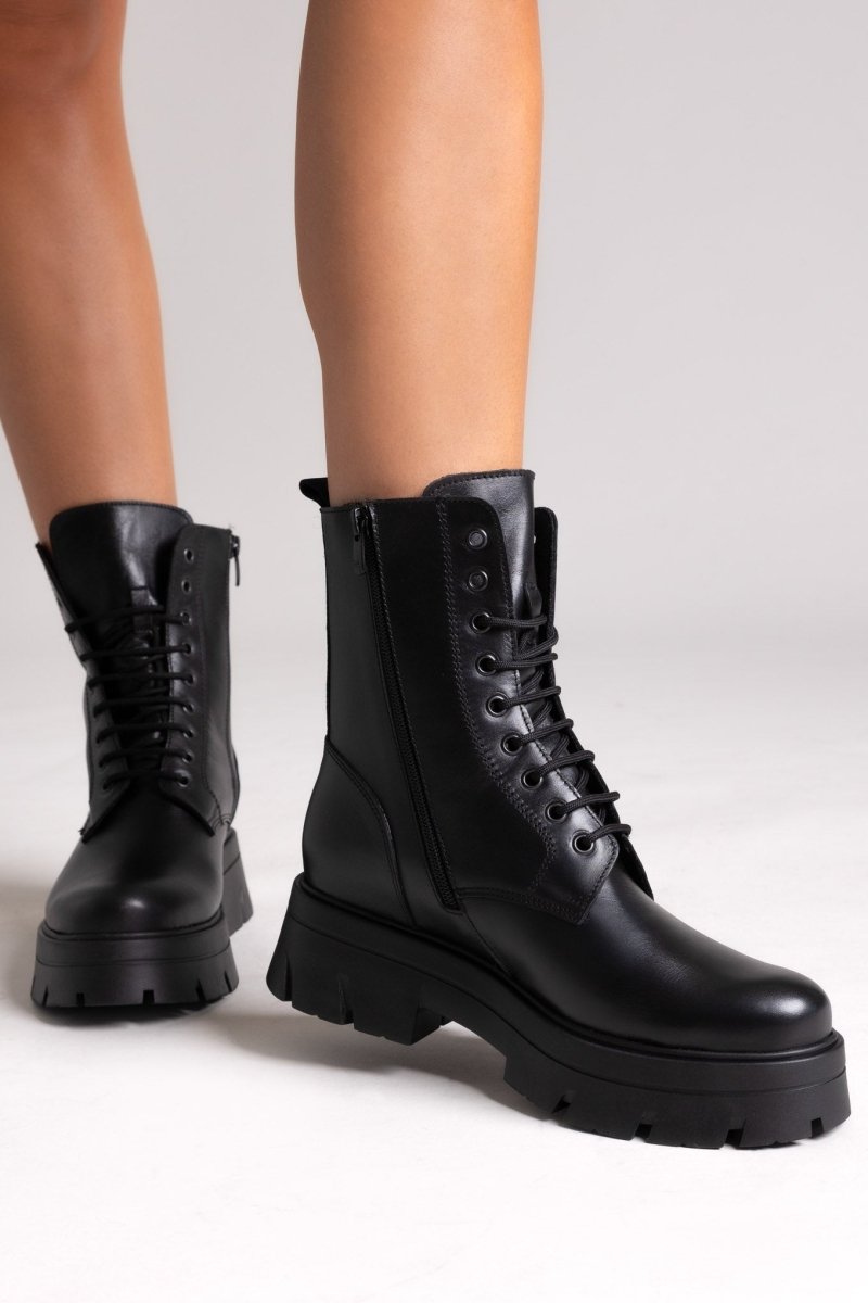 Ragazza 0258 Δερμάτινα combat μποτάκια με κορδόνια - Μαύρο Matte