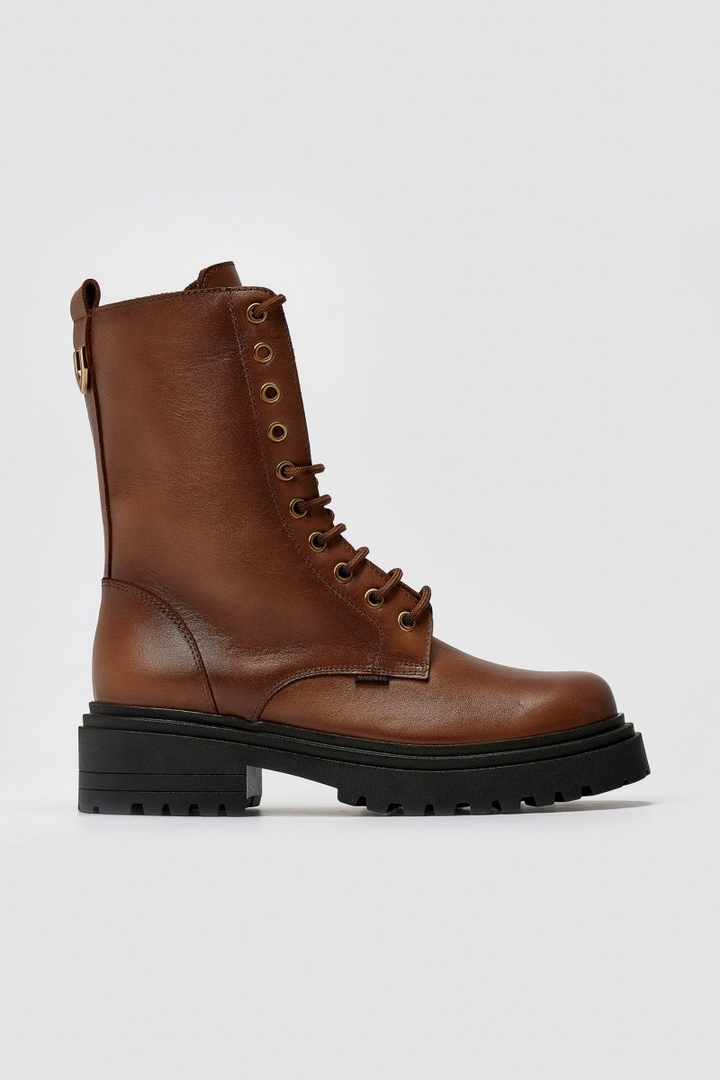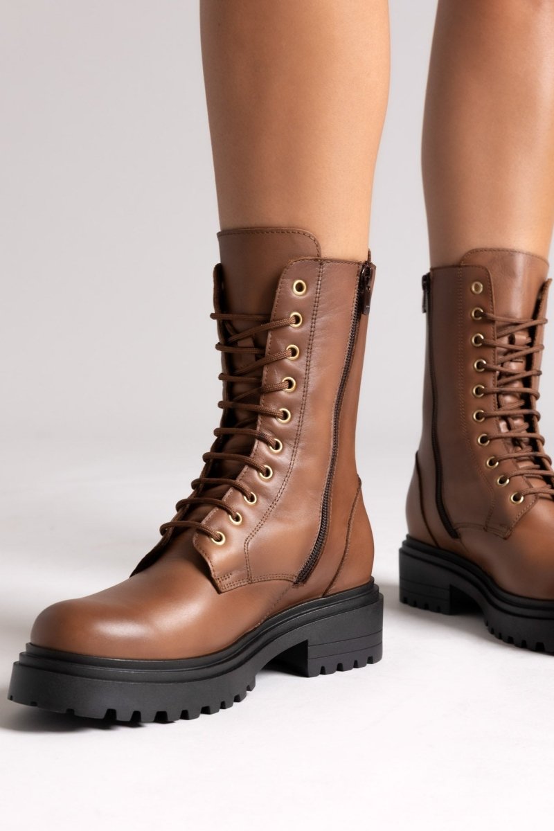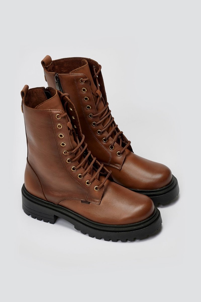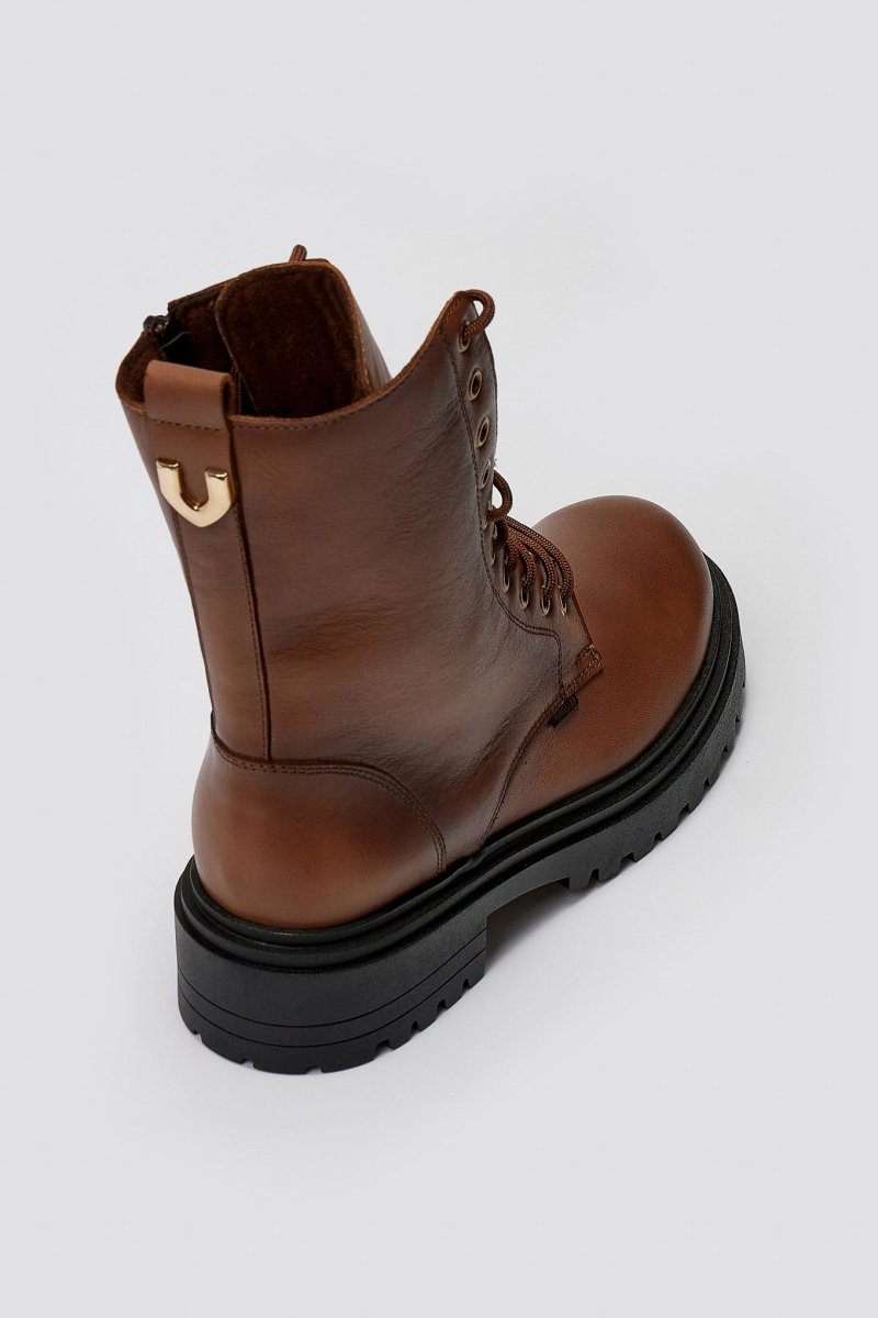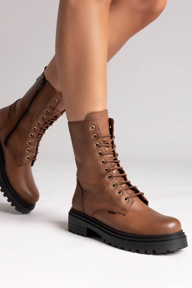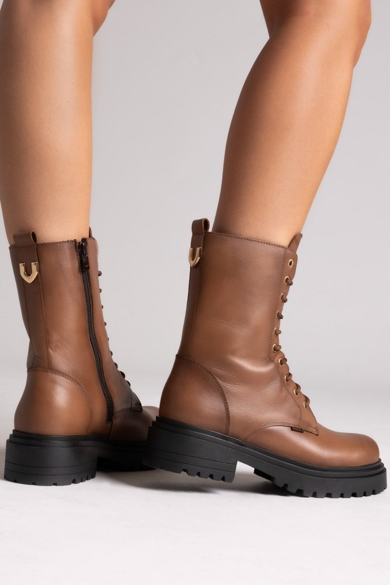 Ragazza 0283 Δερμάτινα Μποτάκια Combat για Άνεση - Ταμπά Ματ