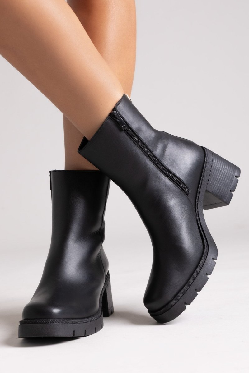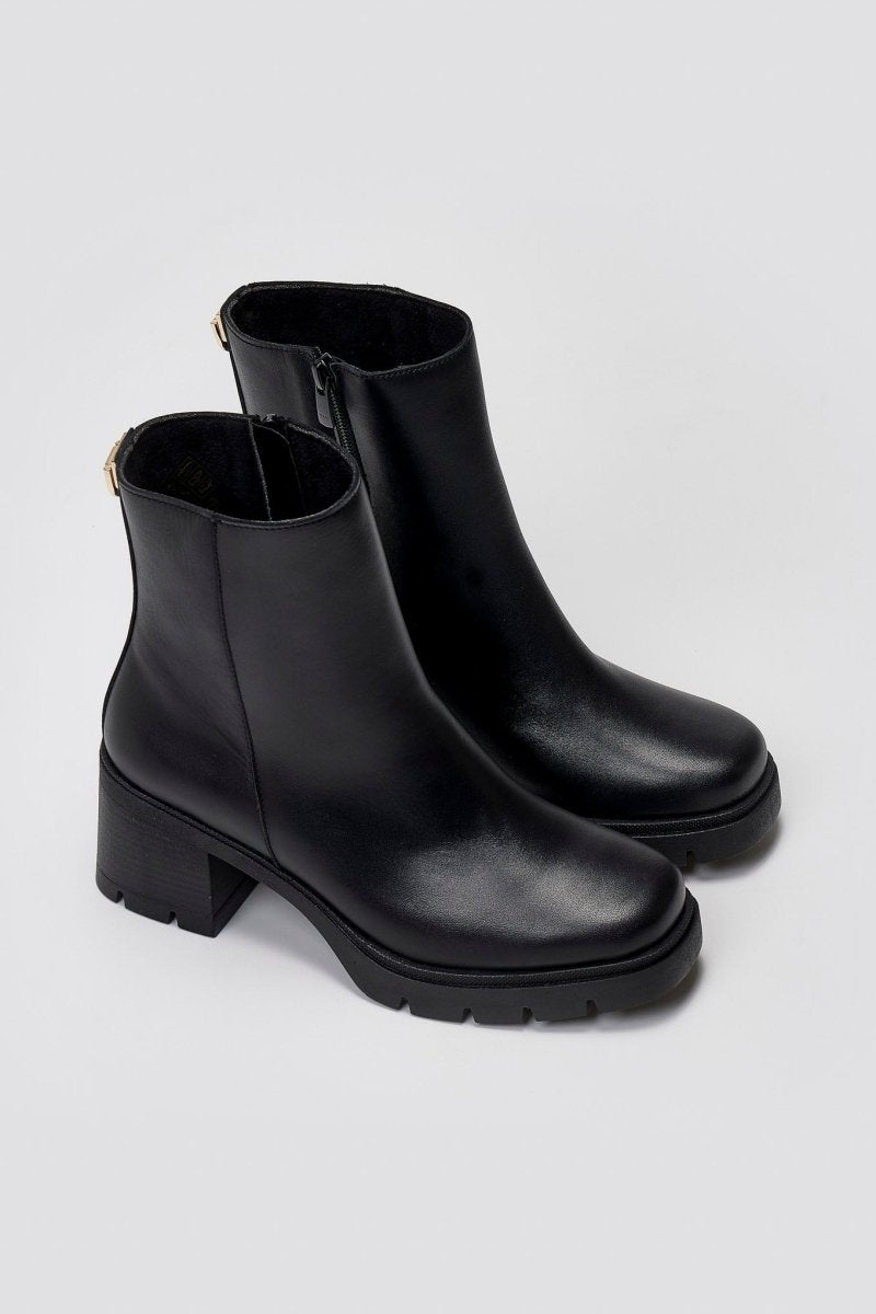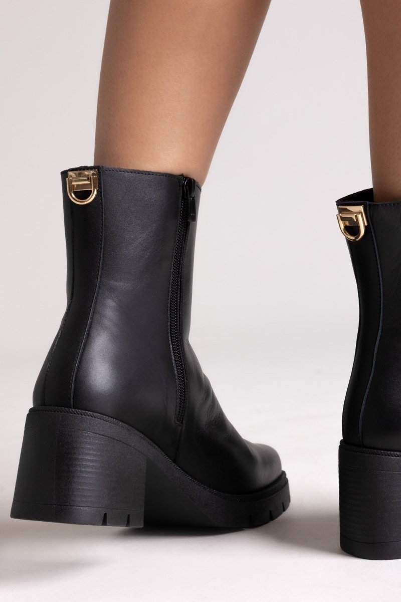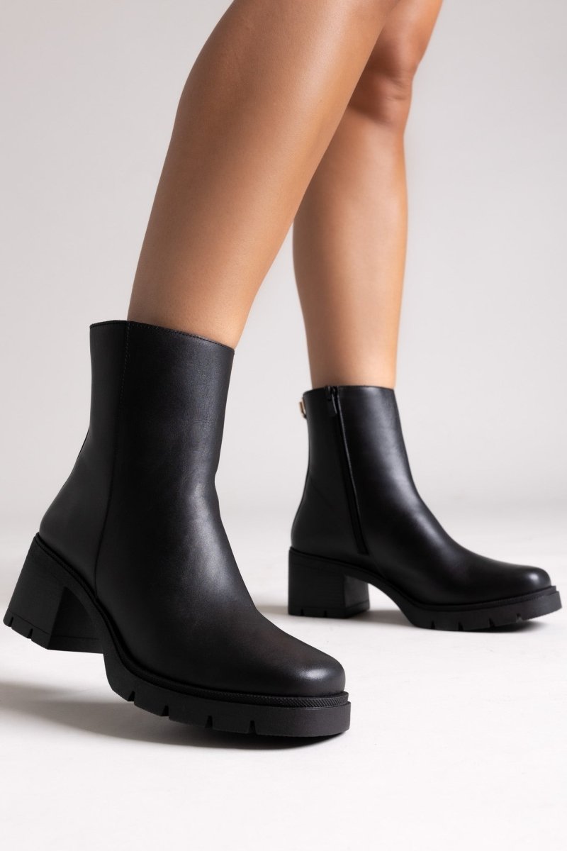 Ragazza 0658 Δερμάτινα μποτάκια με τετράγωνη μύτη - Μαύρο Matte