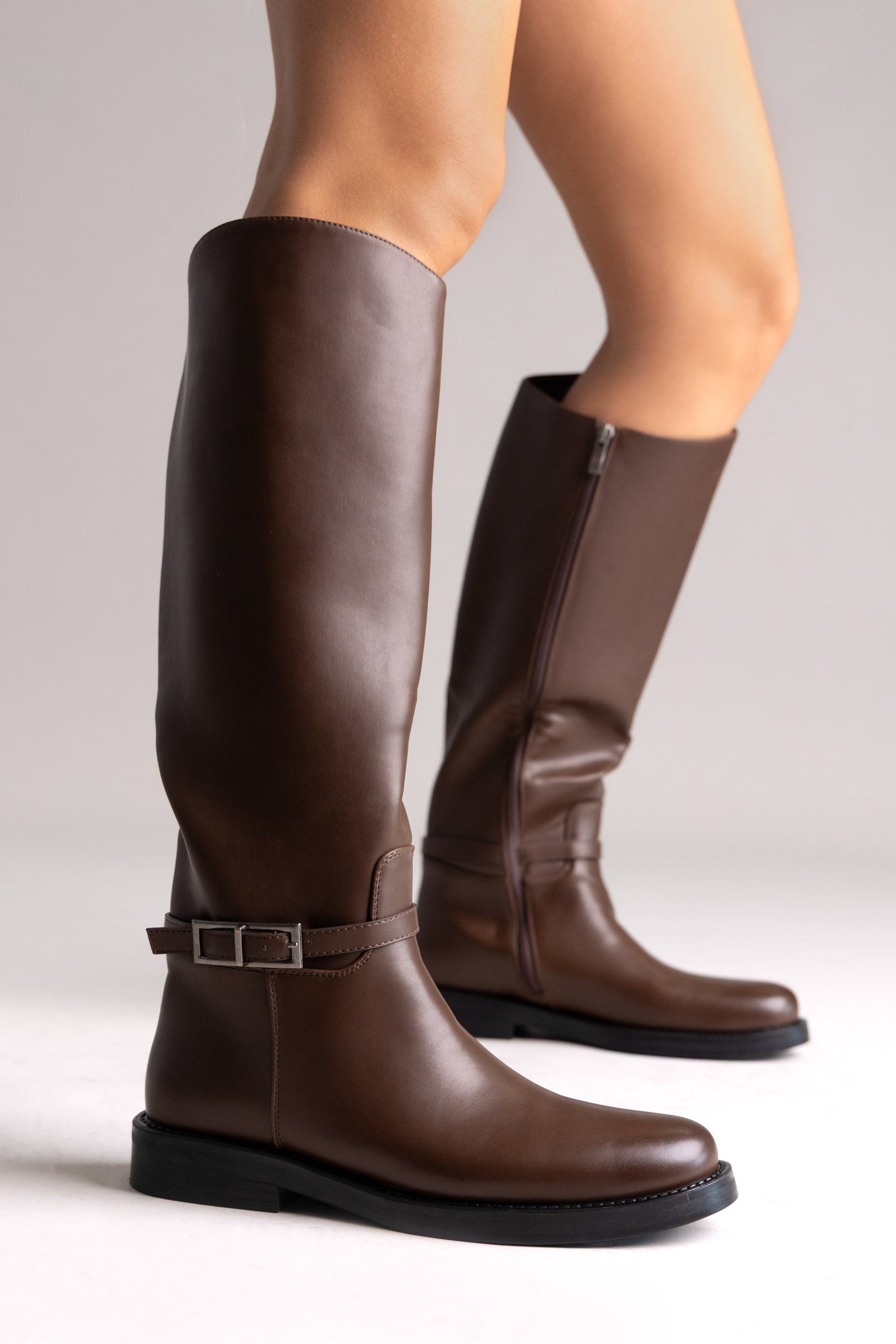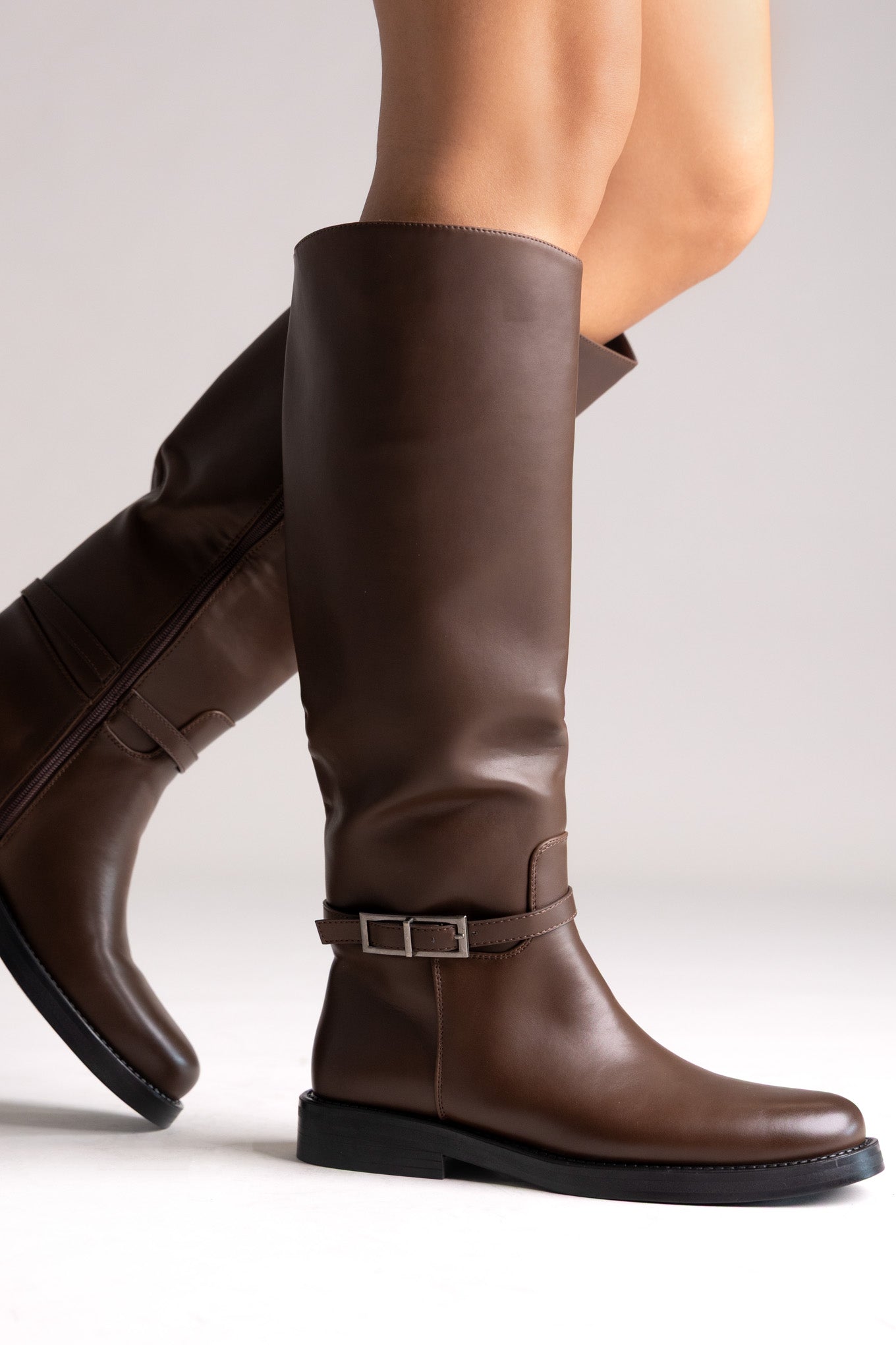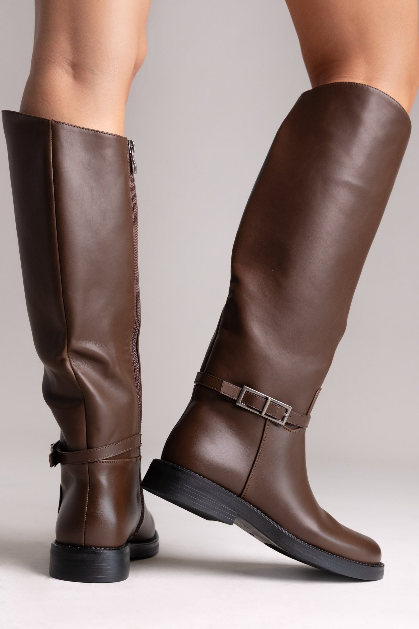 Κομψές μπότες ιππασίας με πλαϊνή αγκράφα και ασφαλές φερμουάρ. Ιππική σιλουέτα, μαλακή αντικραδασμική άνεση, premium φινίρισμα, ευέλικτες από το γραφείο μέχρι τη βραδινή έξοδο.