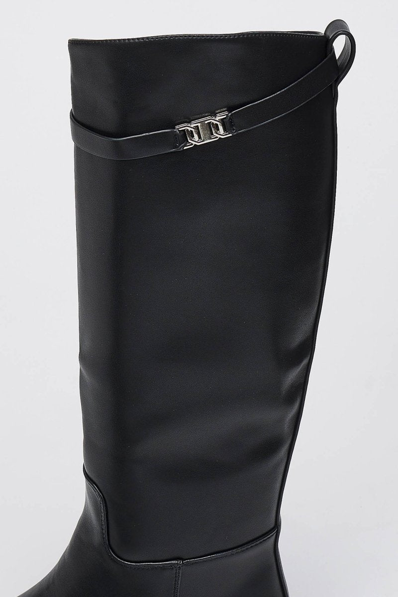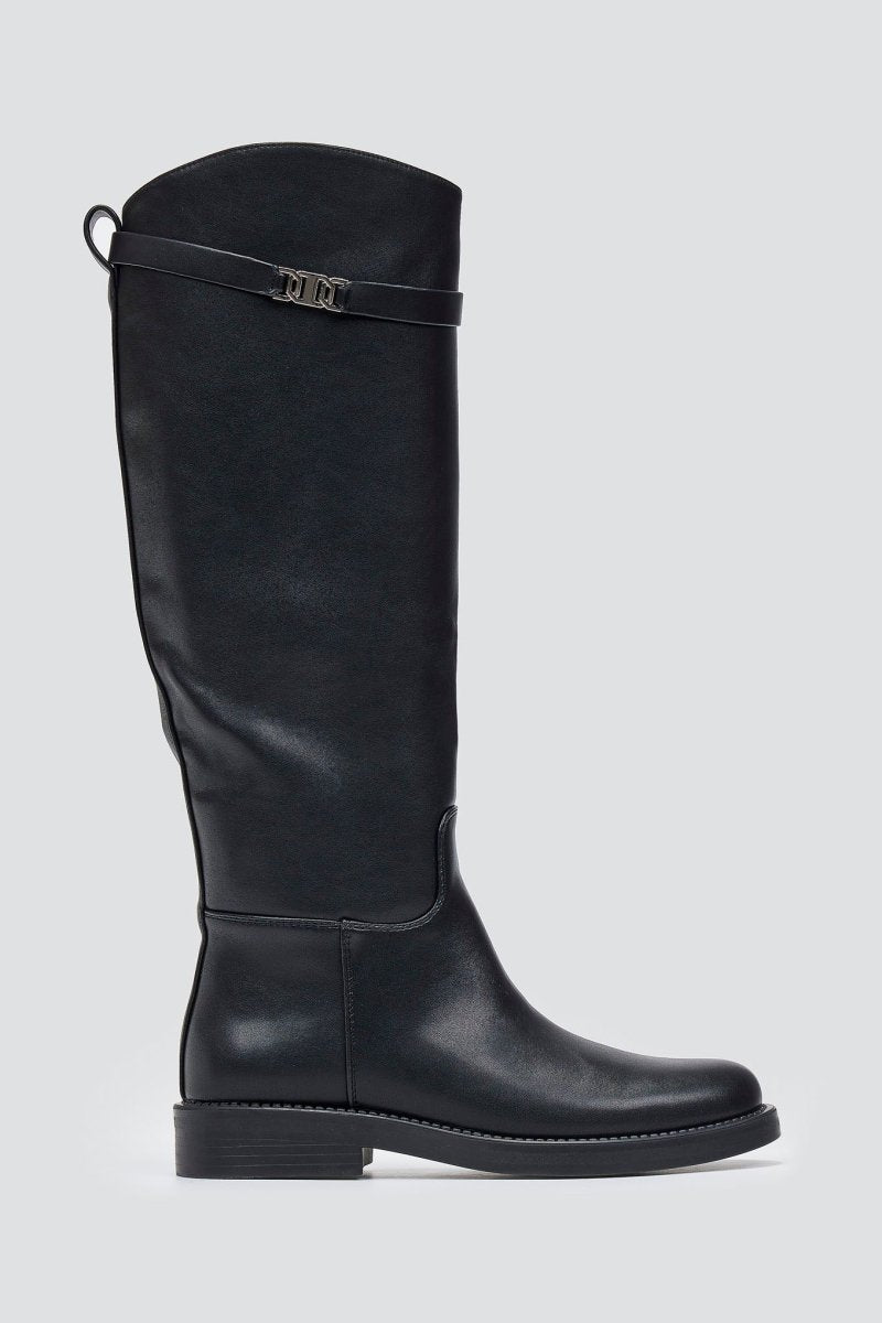 Μπότες ιππασίας με λεπτομέρεια λουράκι - μαύρο ματ