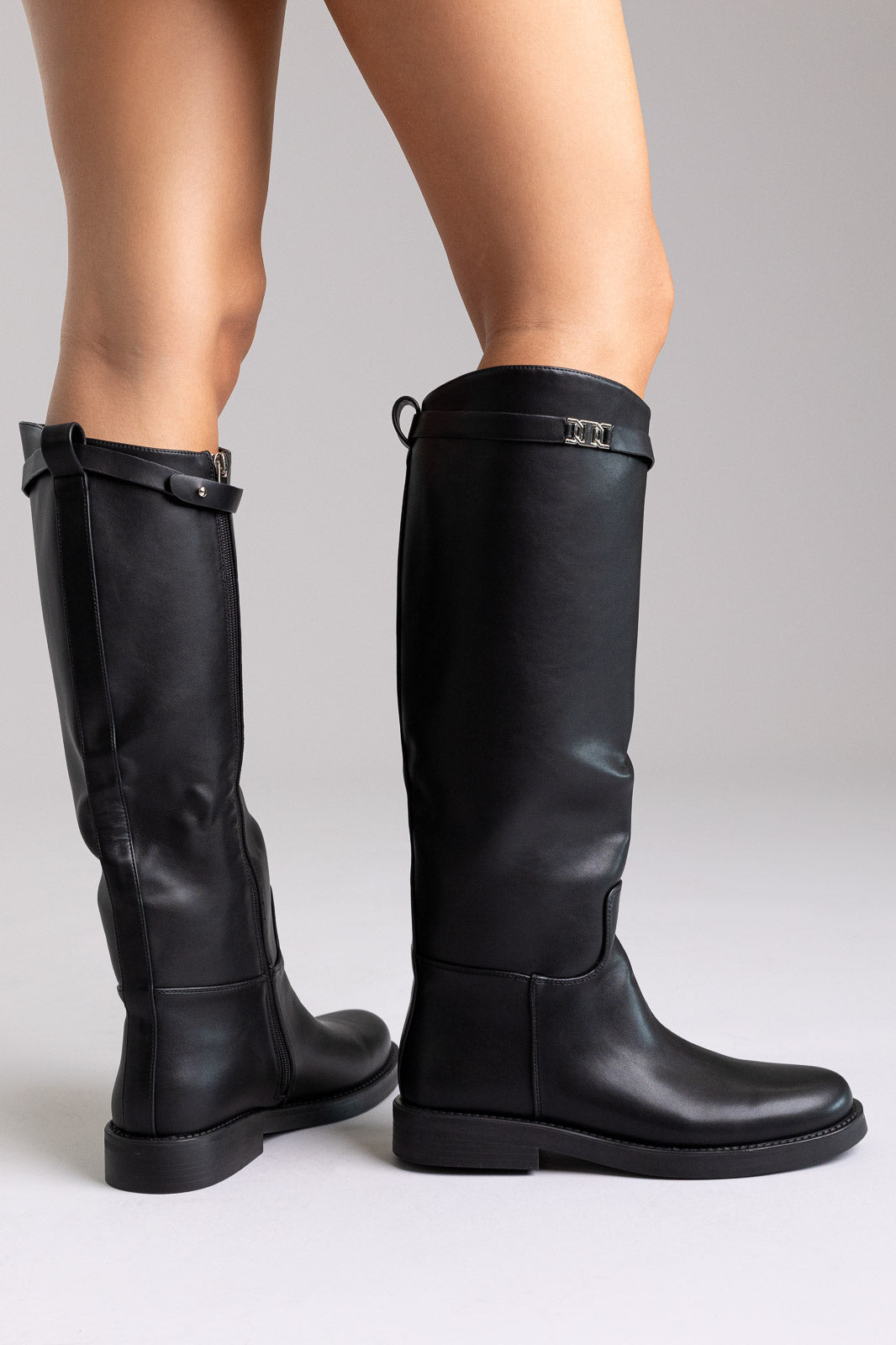 Μπότες ιππασίας με λεπτομέρεια λουράκι - μαύρο ματ