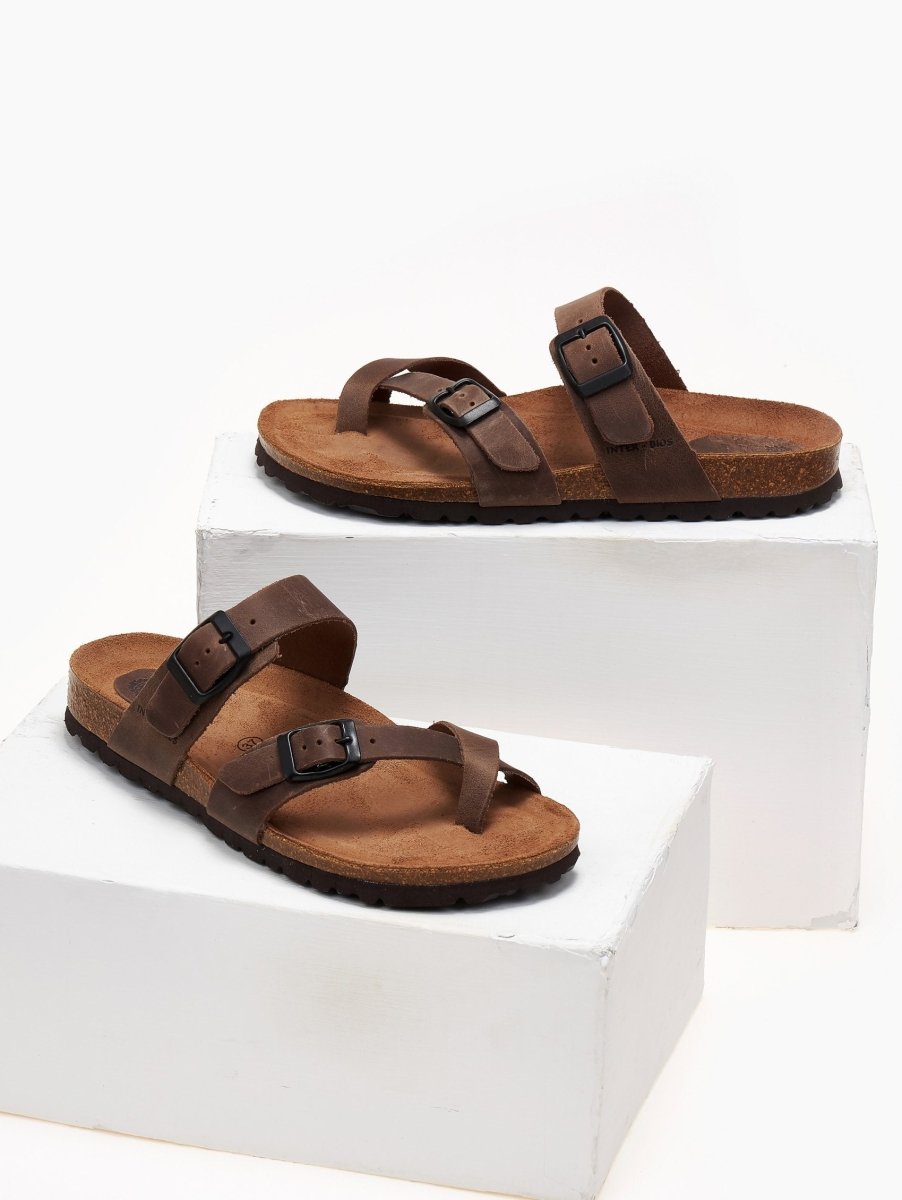 Σανδάλια ανατομικά δερμάτινα Interbios - Καφέ