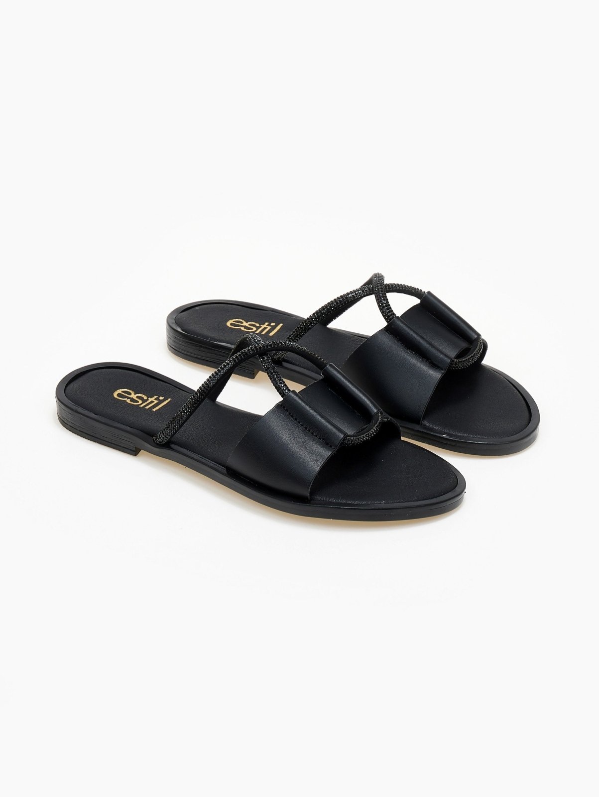 Σανδάλια με crossover στρας Estil - Μαύρο