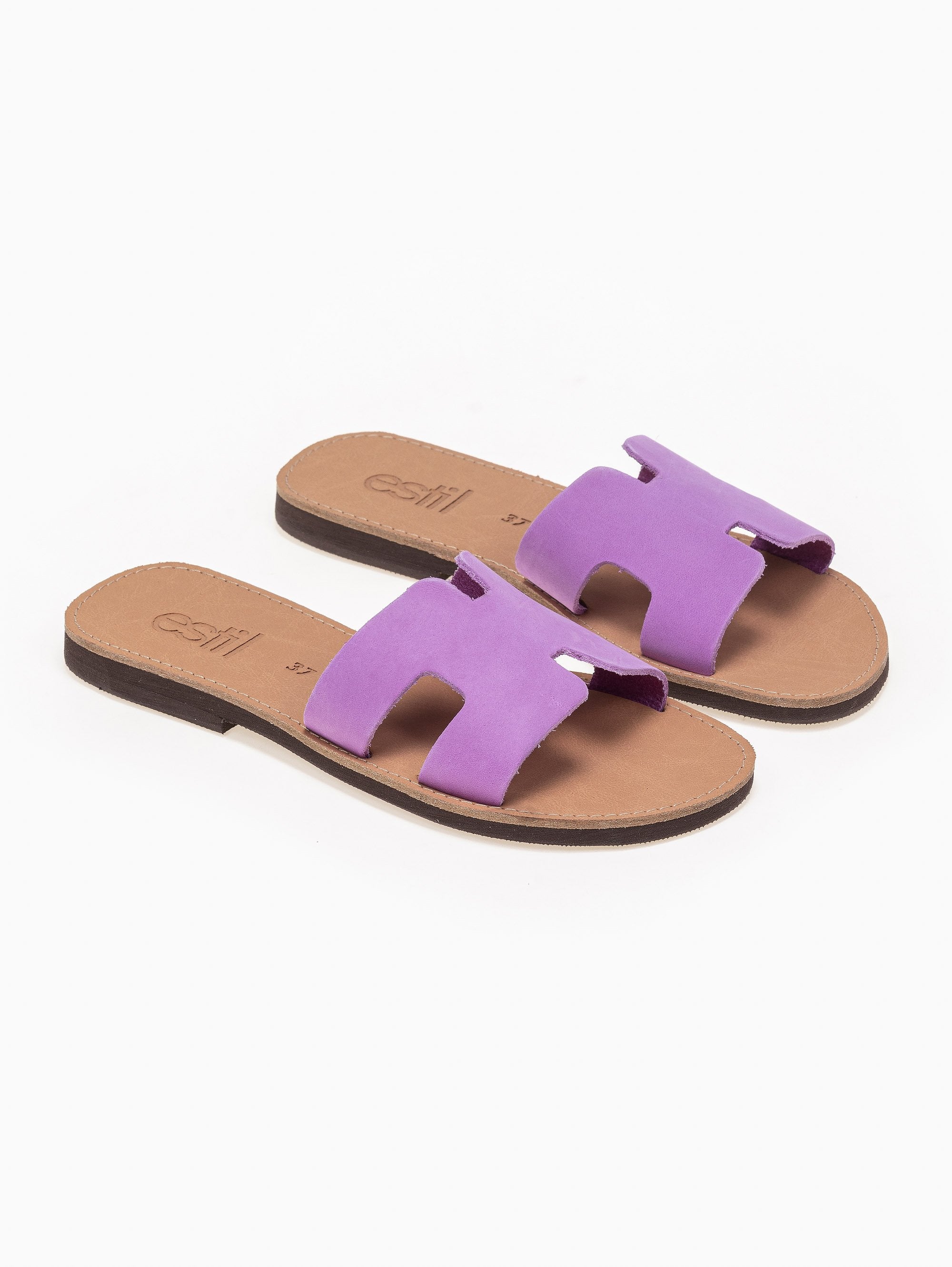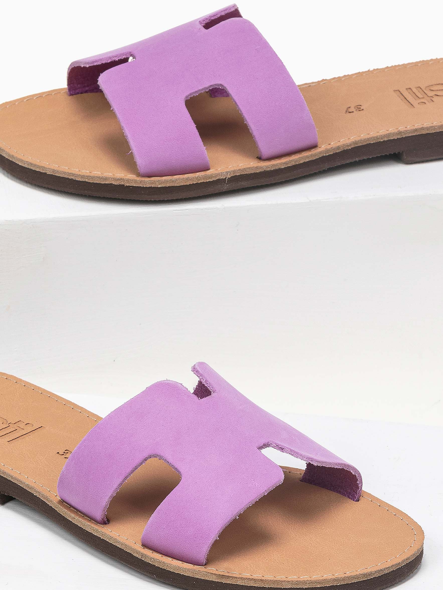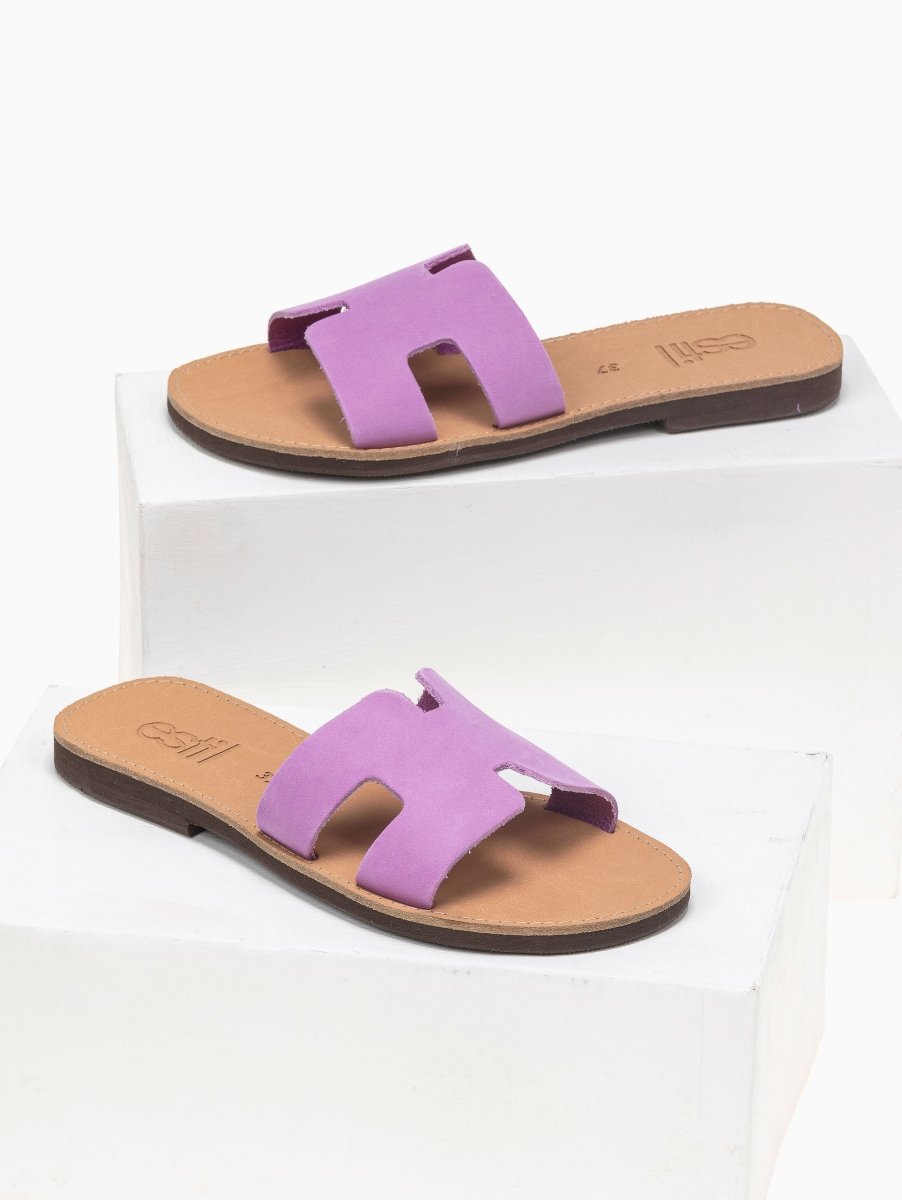 Σανδάλια δερμάτινα με άνοιγμα estil - Λιλά