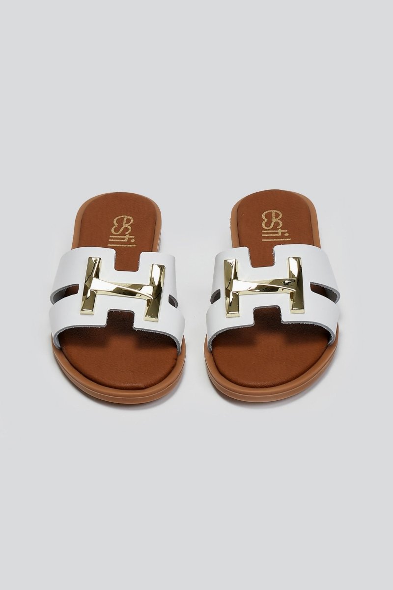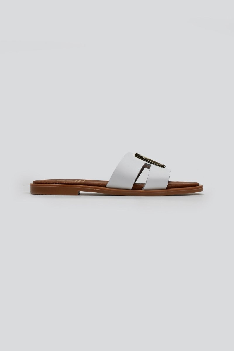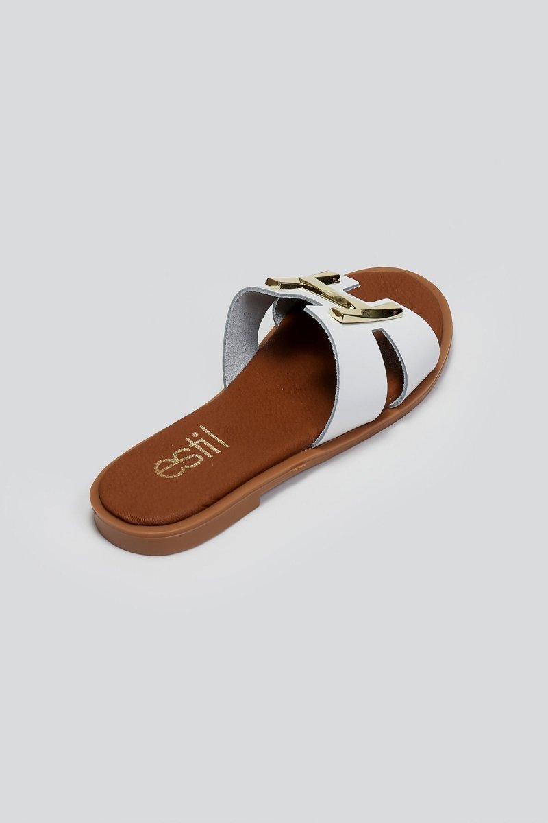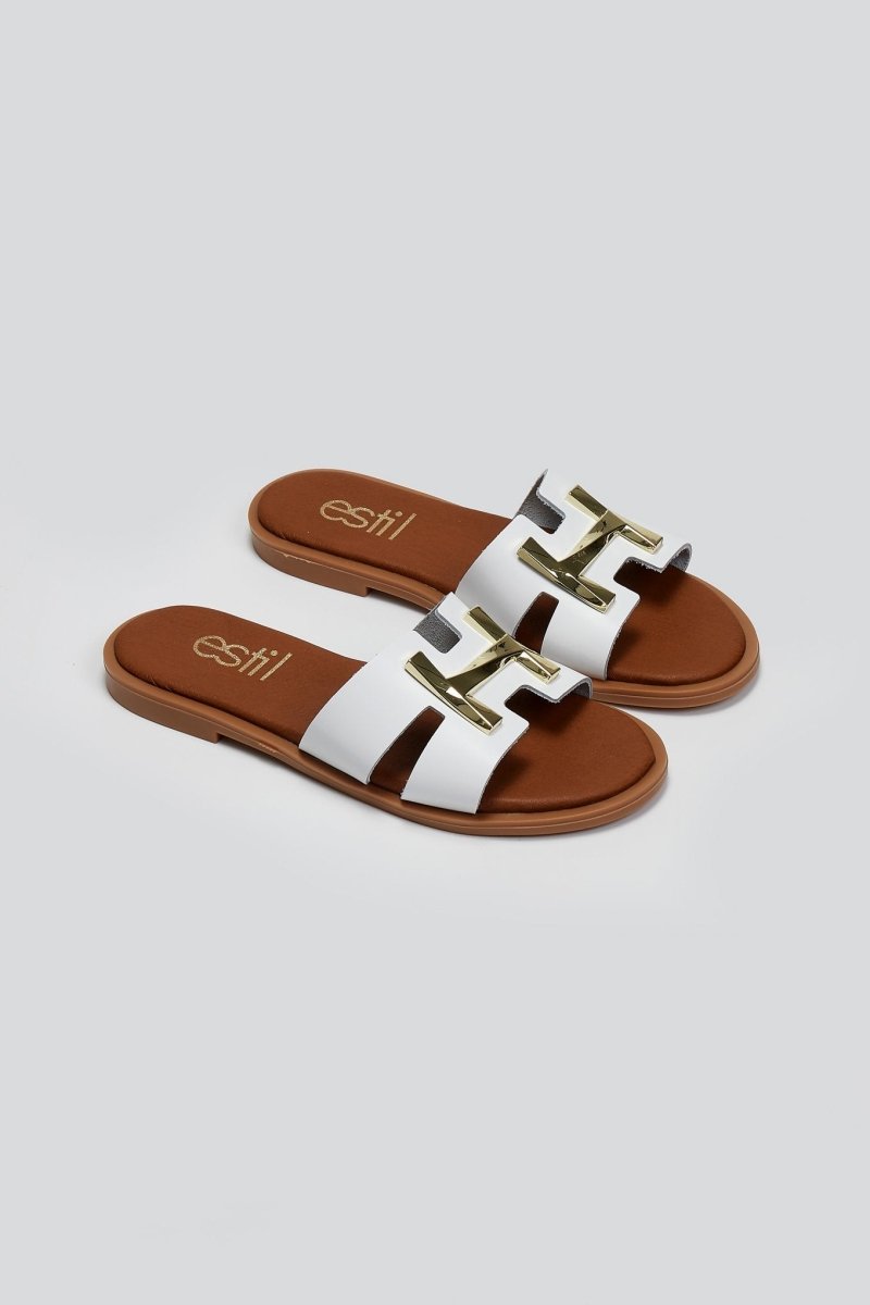 Σανδάλια από γνήσιο δέρμα Estil. Φαρδιά φάσα με ανοίγματα και μεταλλικό διακοσμητικό. Μαλακός πάτος με ενίσχυση. Ελληνικής κατασκευής.