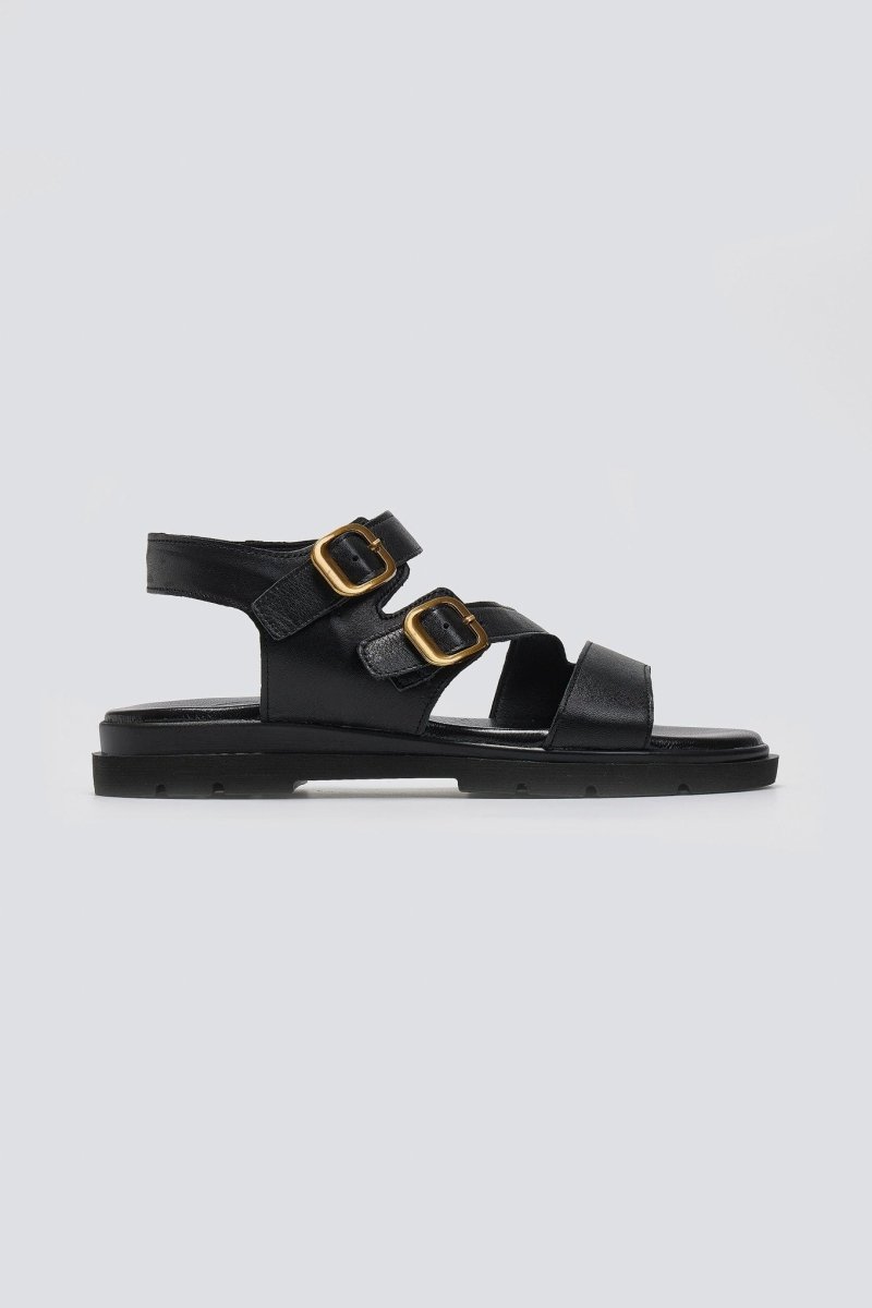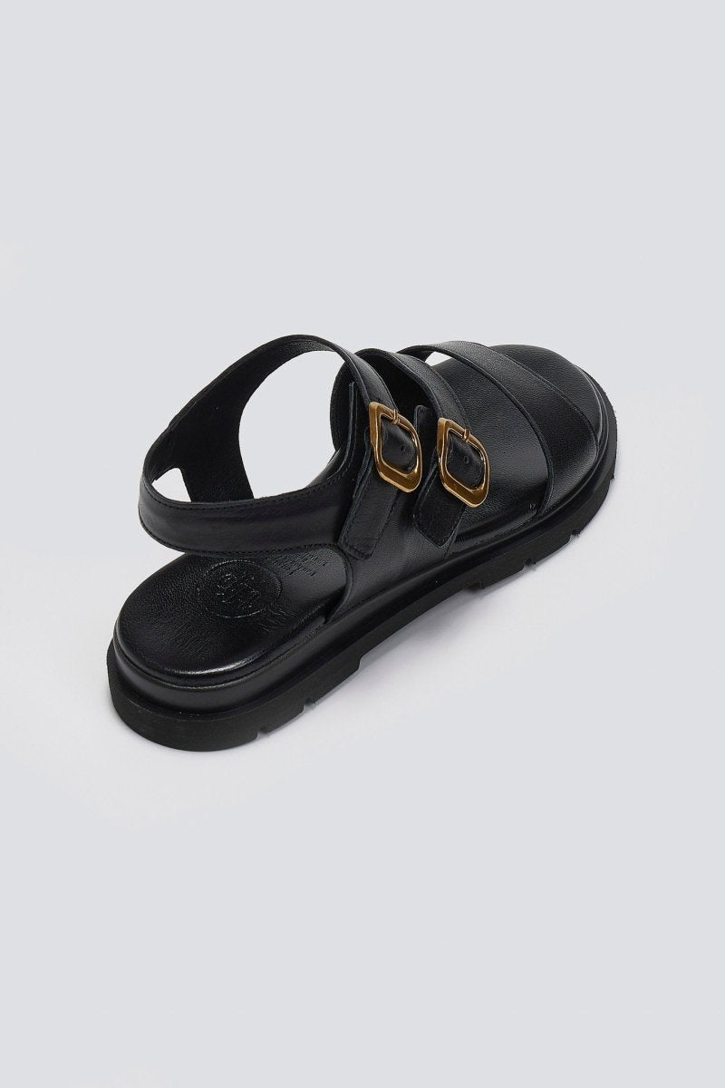 Σανδάλια δερμάτινα με διπλό τοκά TFP - Μαύρο