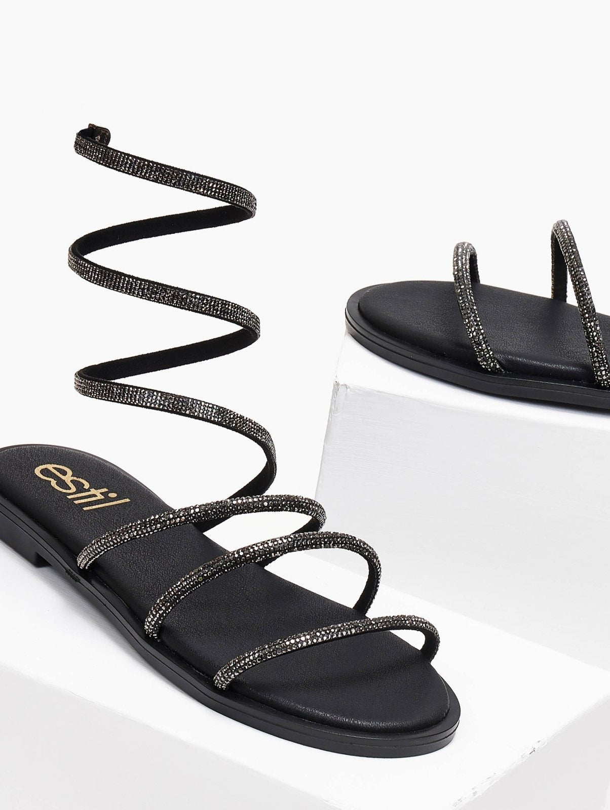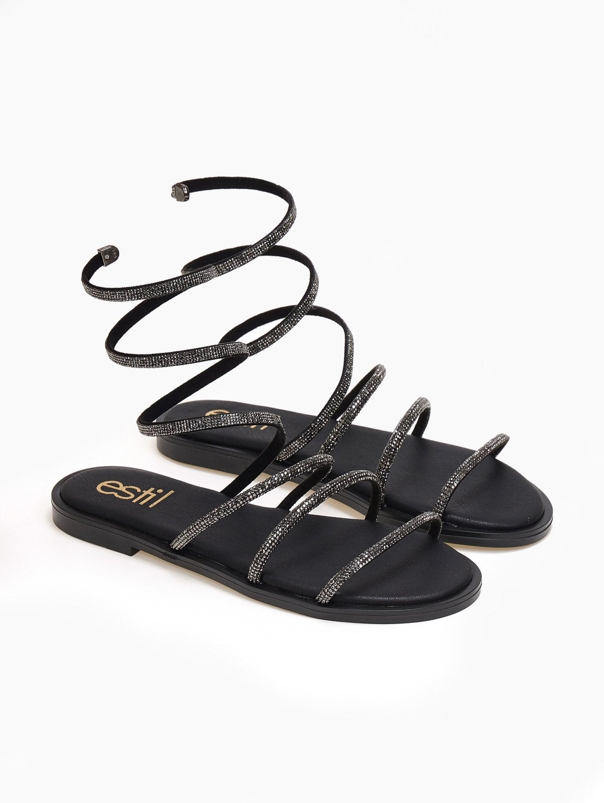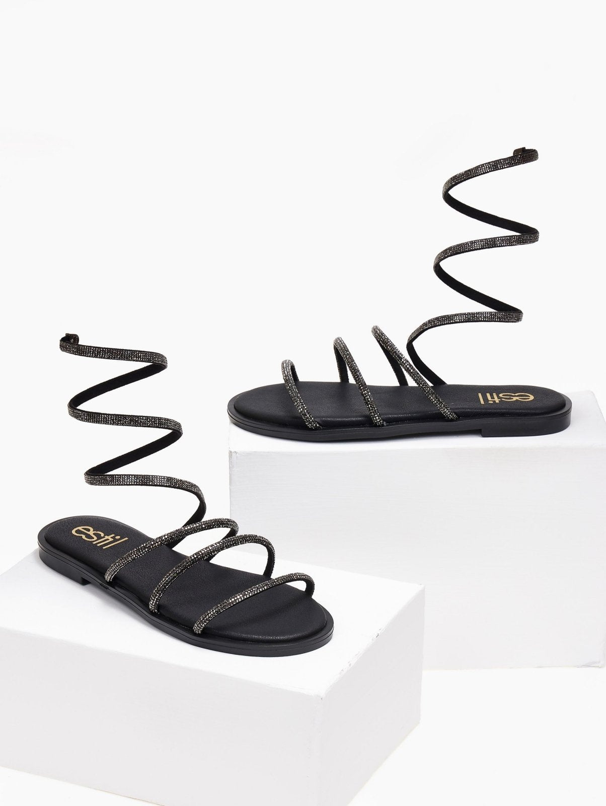 Σανδάλια δερμάτινα με έλασμα και στρας estil - Μαύρο