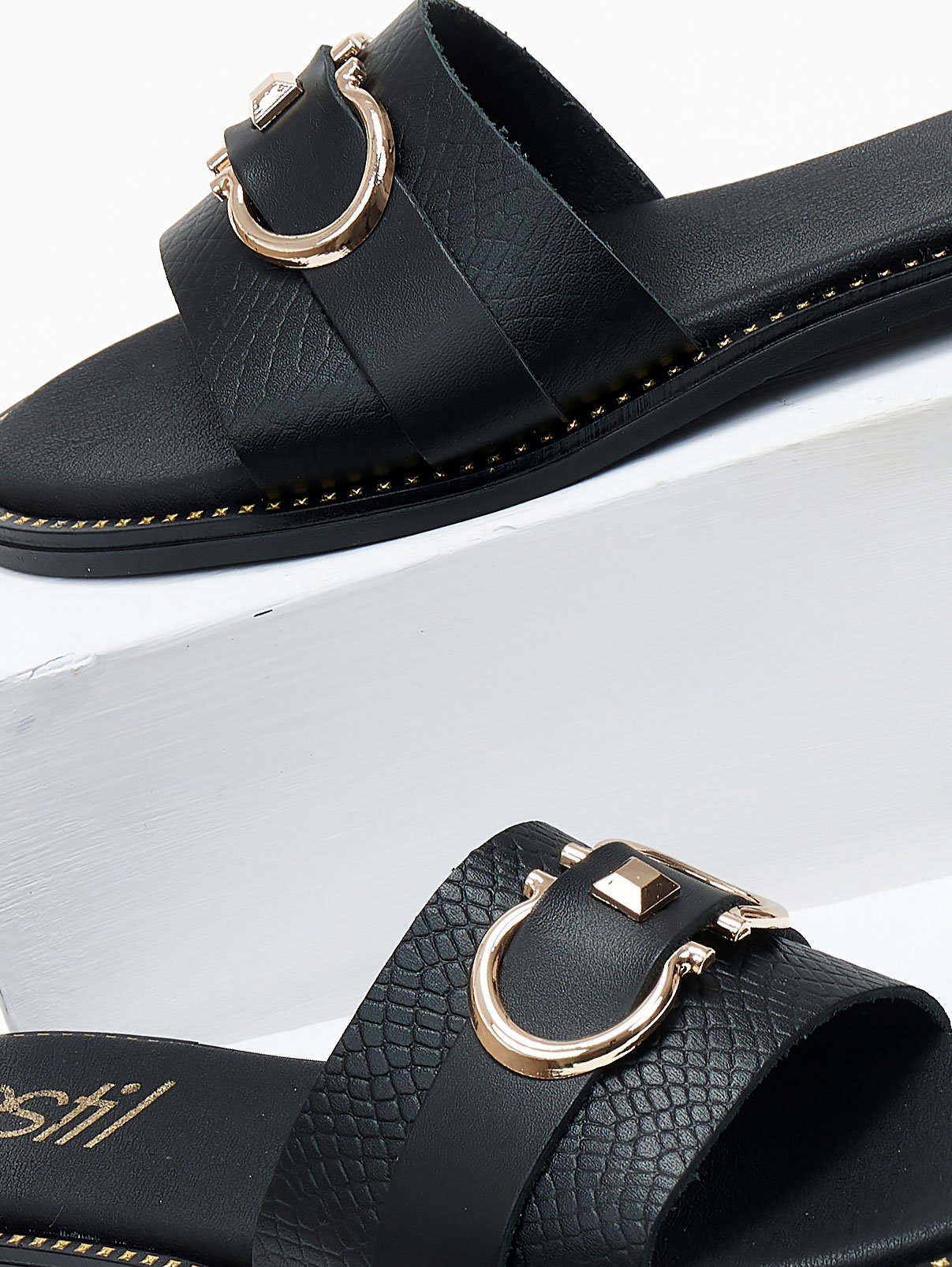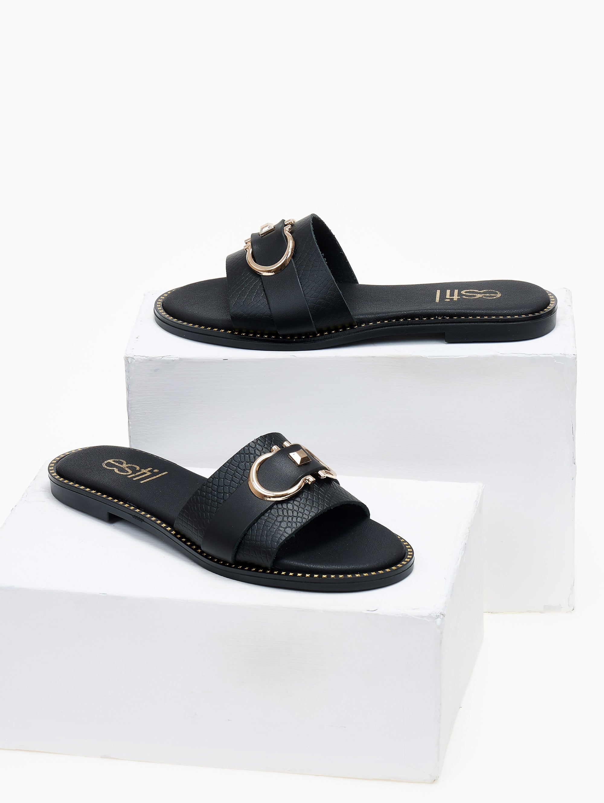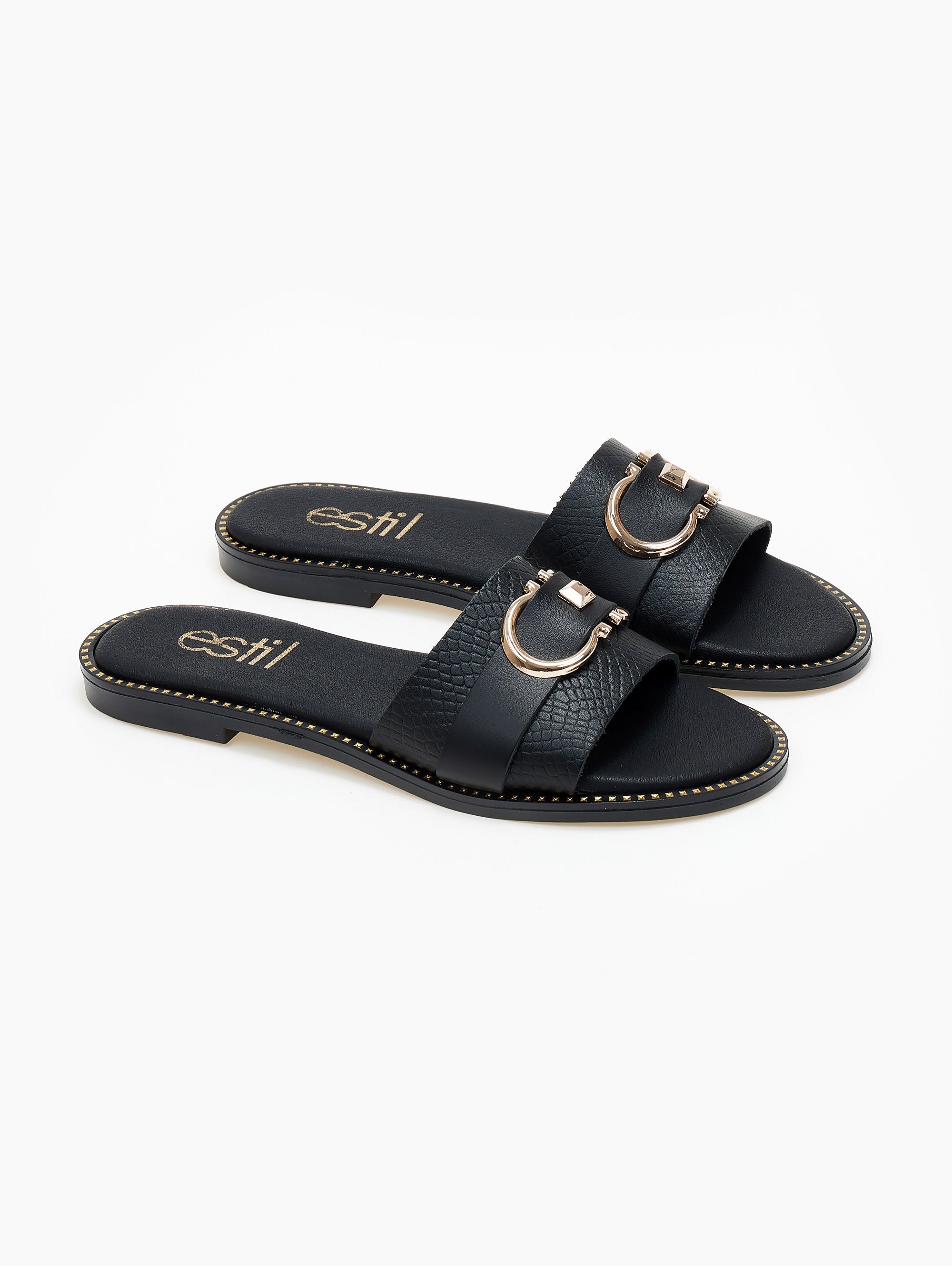 Σανδάλια δερμάτινα με φαρδιά φάσα Estil - Μαύρο