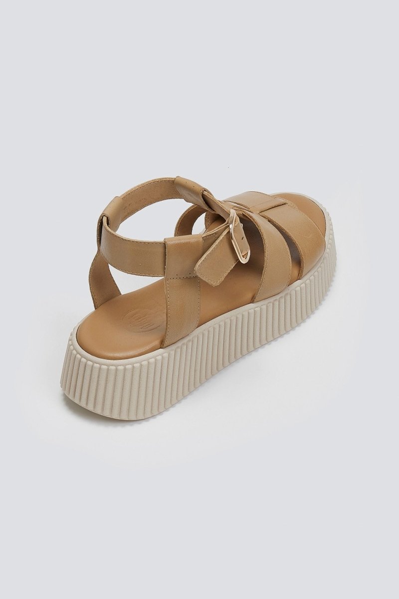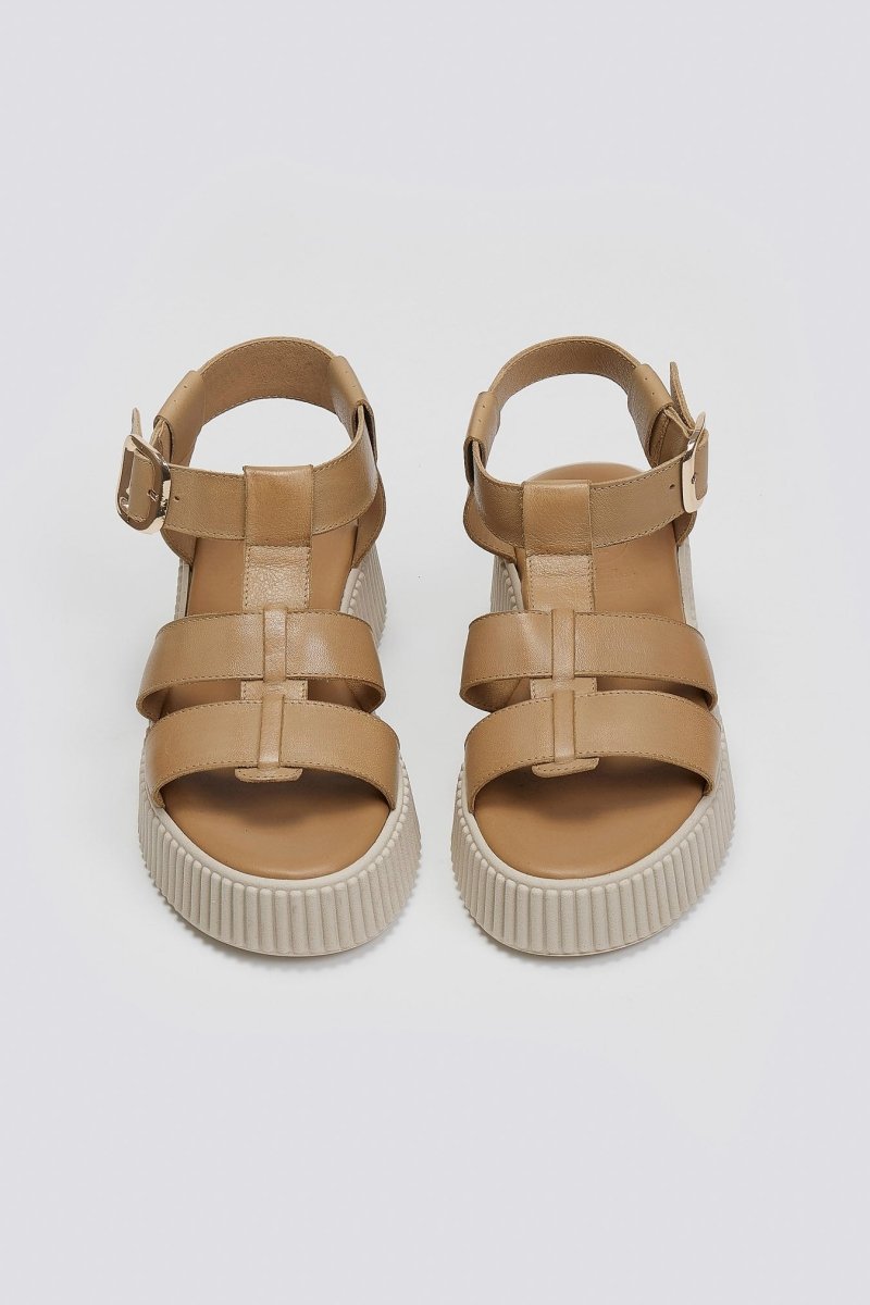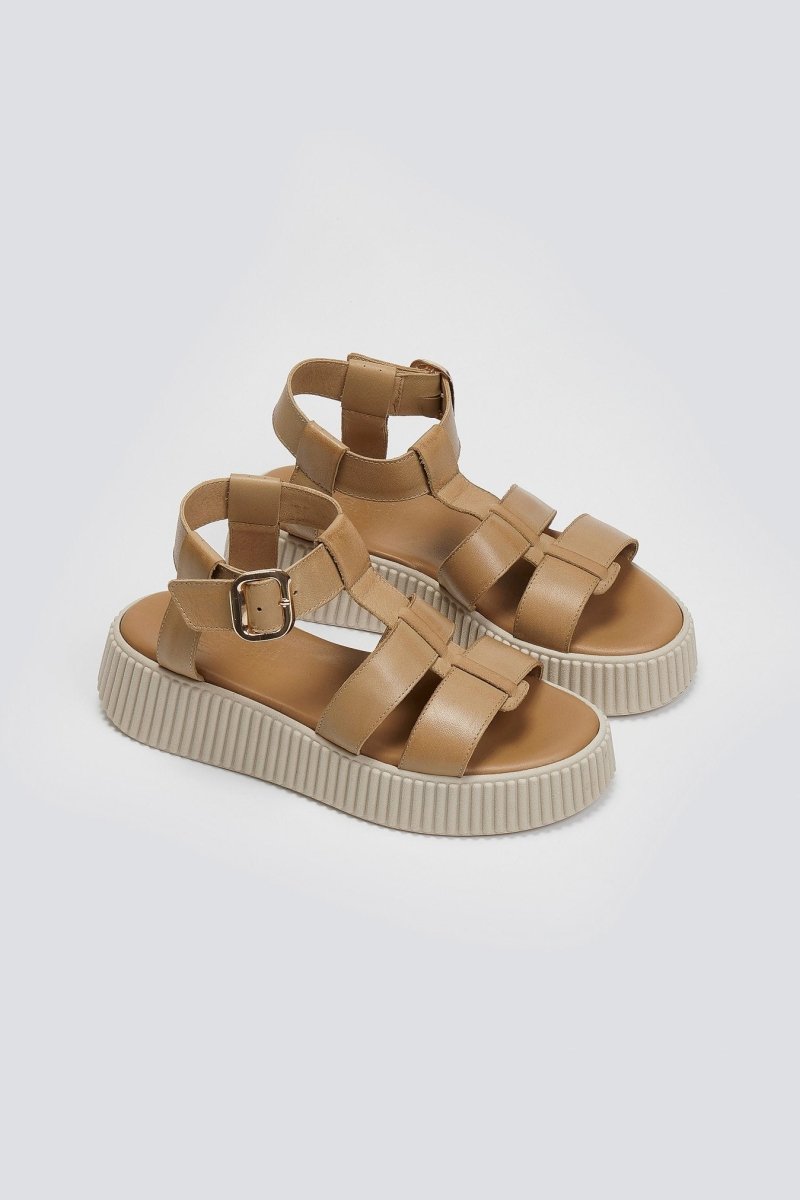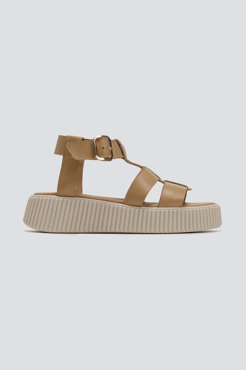 Σανδάλια δερμάτινα flatforms με τοκά TFP - Μπεζ
