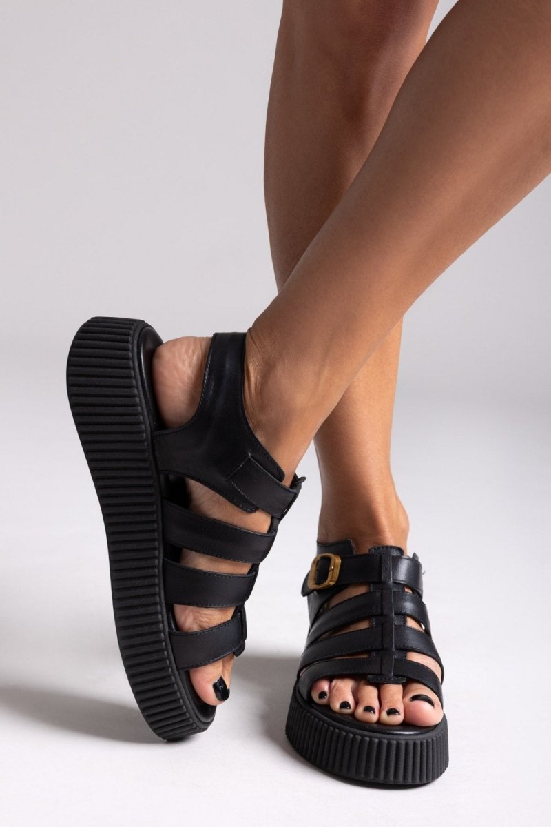 Σανδάλια δερμάτινα gladiator Tfp - Μαύρο