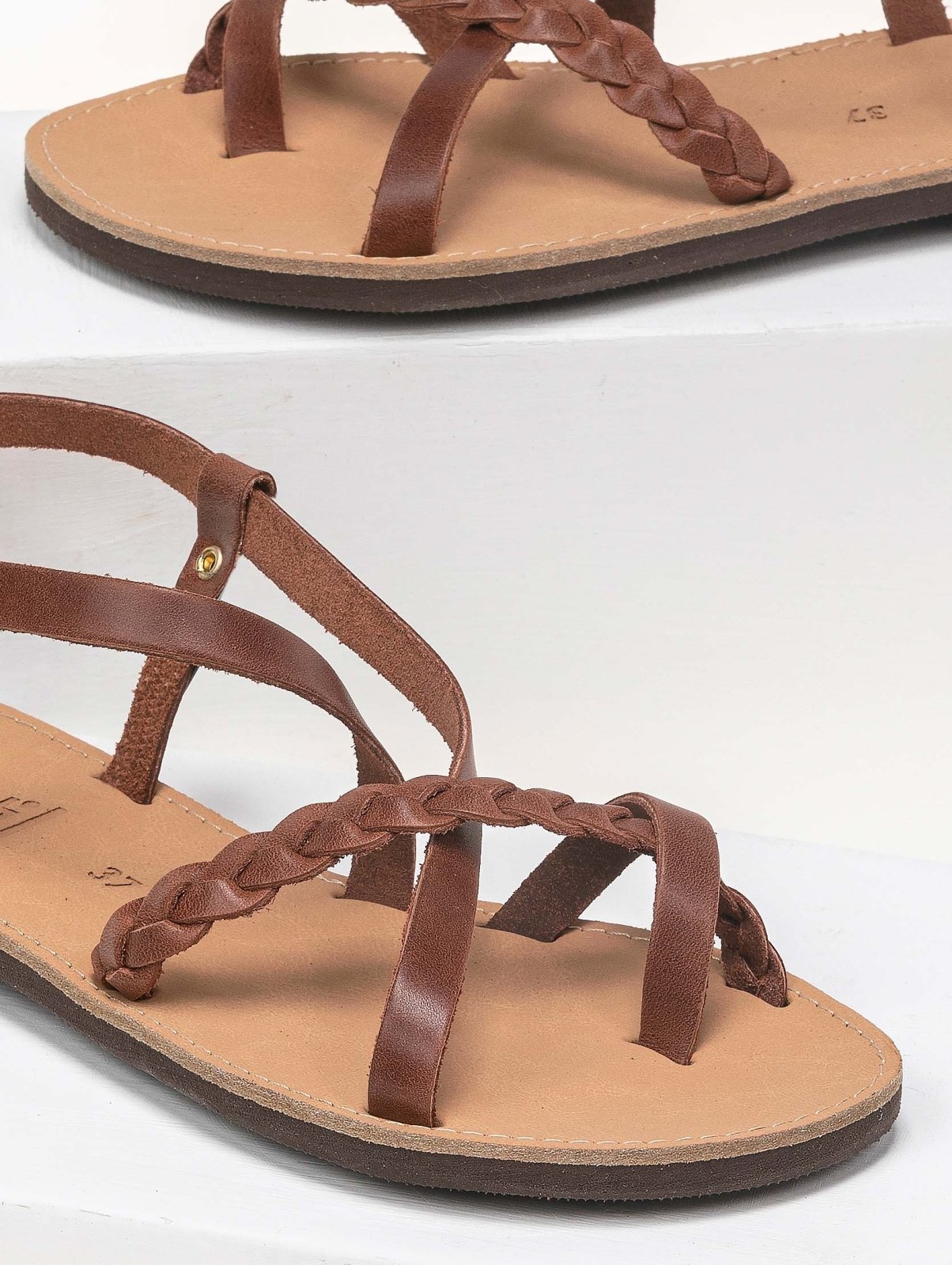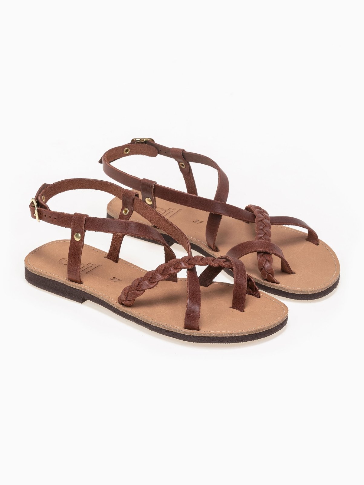Σανδάλια δερμάτινα με κοτσιδάκι estil - Ταμπά