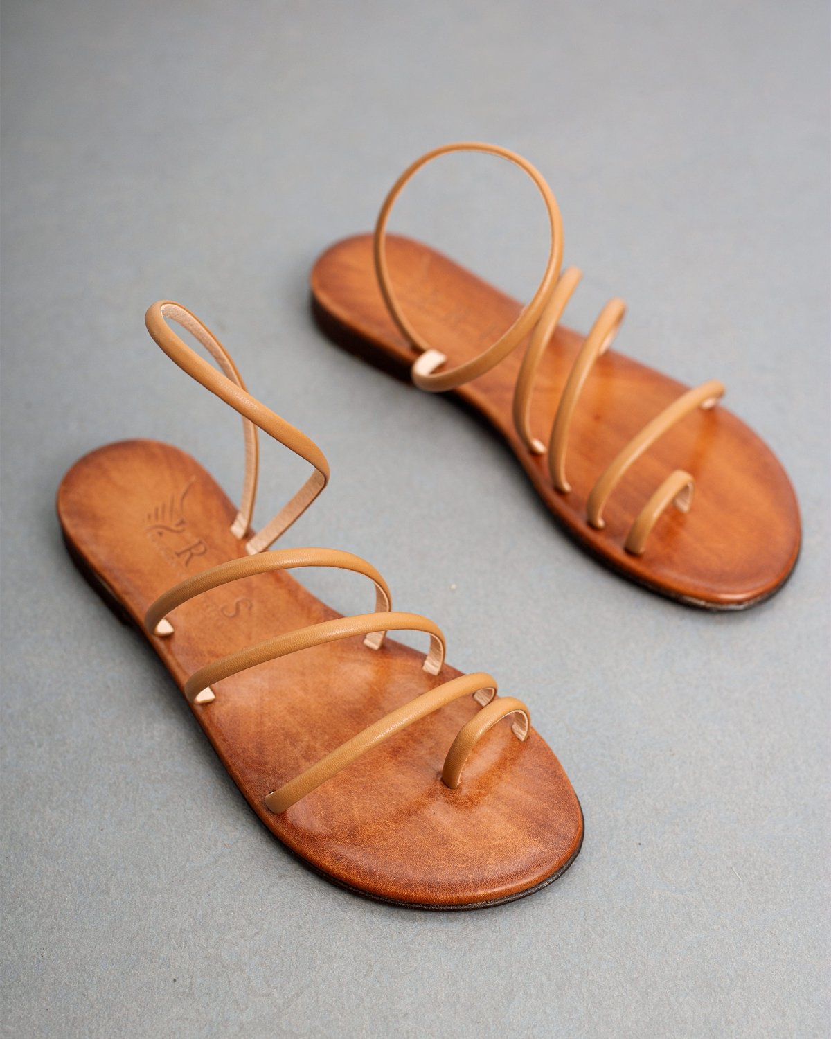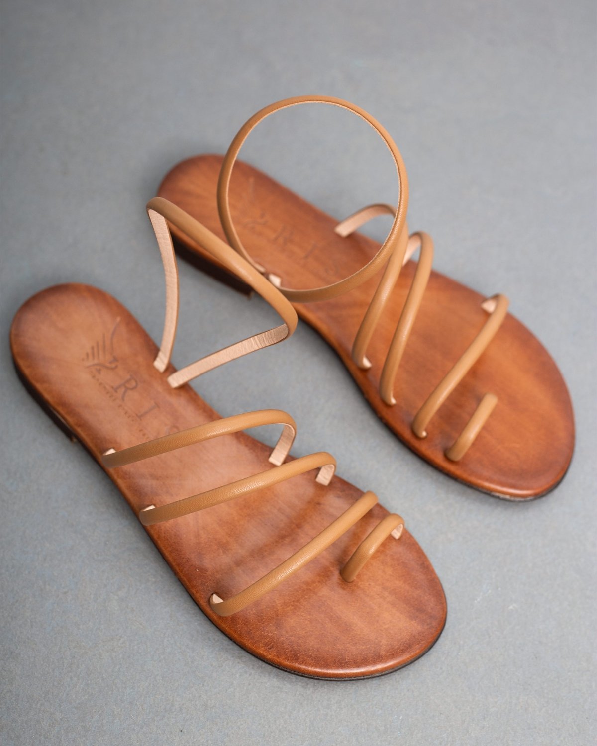 Σανδάλια δερμάτινα με λεπτά λουράκια Iris Sandals - Ταμπά