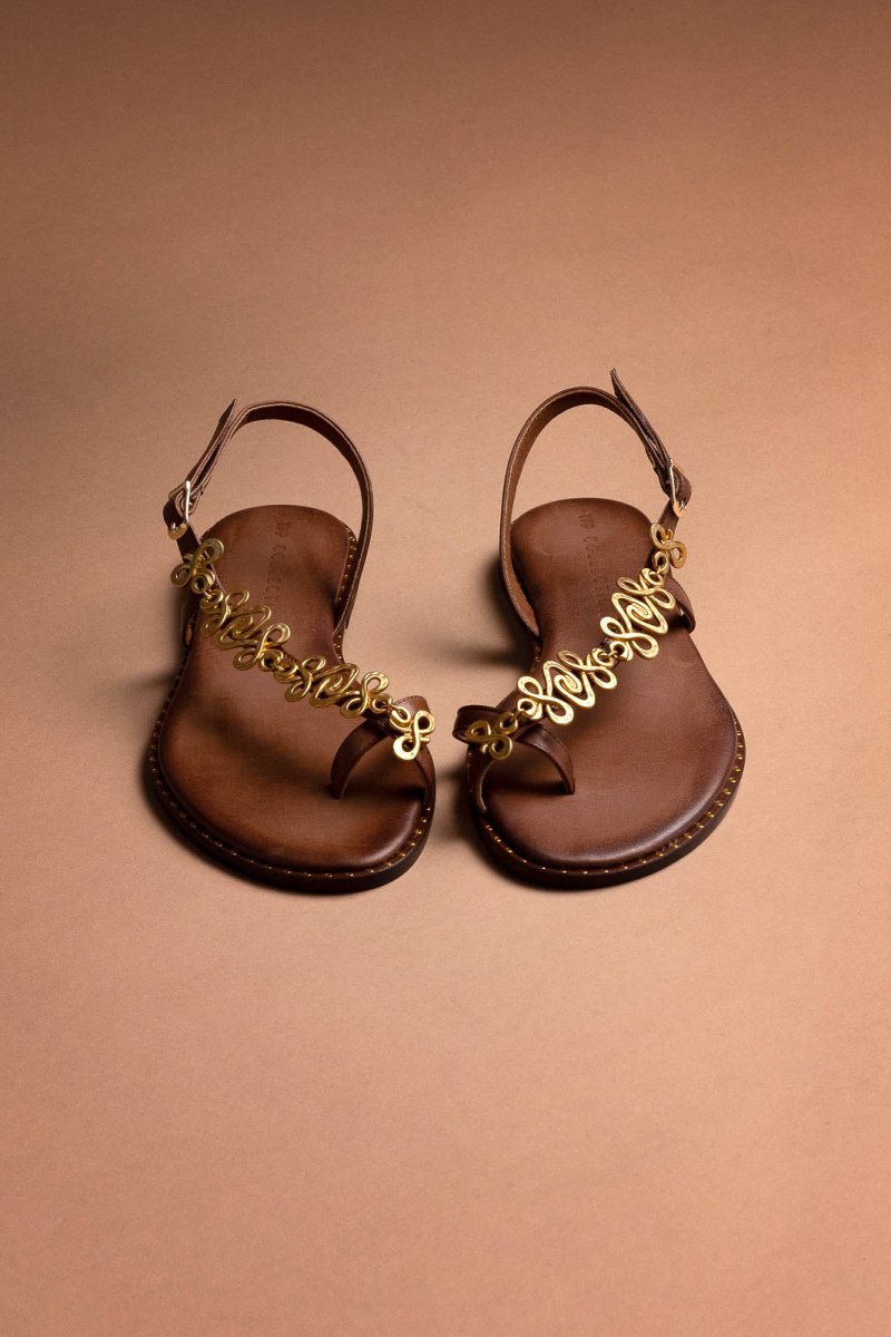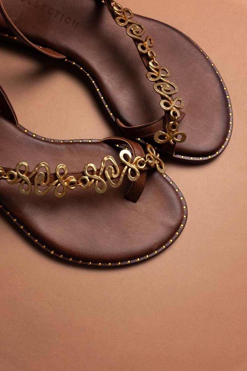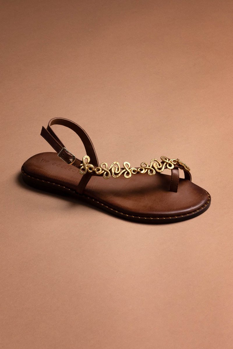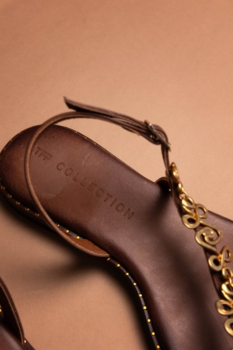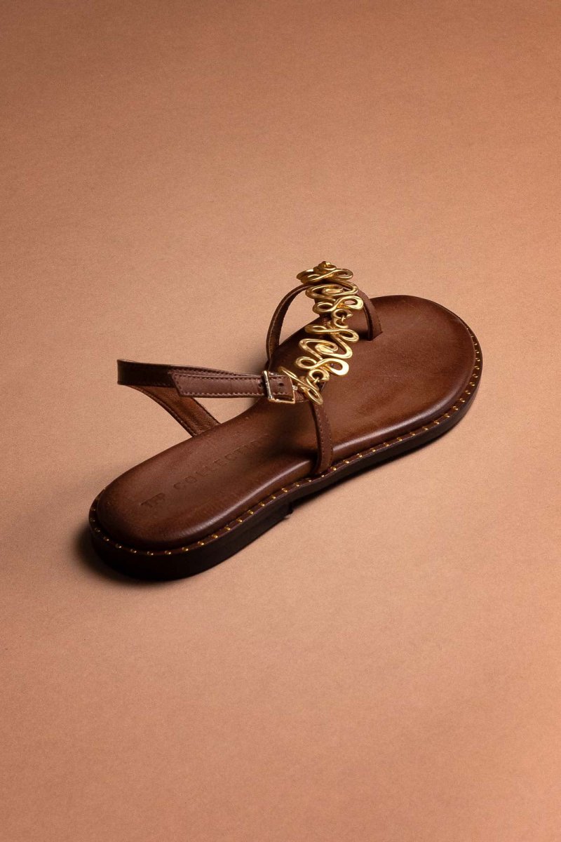 Σανδάλια δερμάτινα με μεταλλικό στοιχείο Tfp - Καφέ