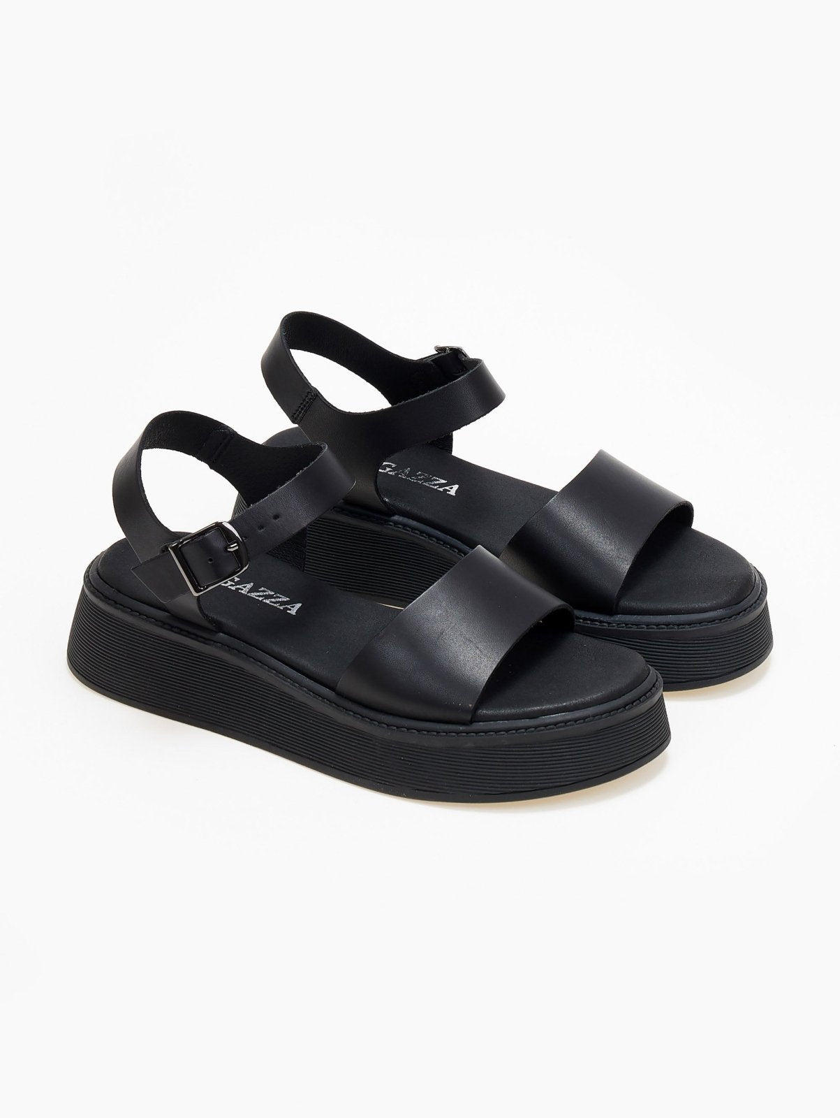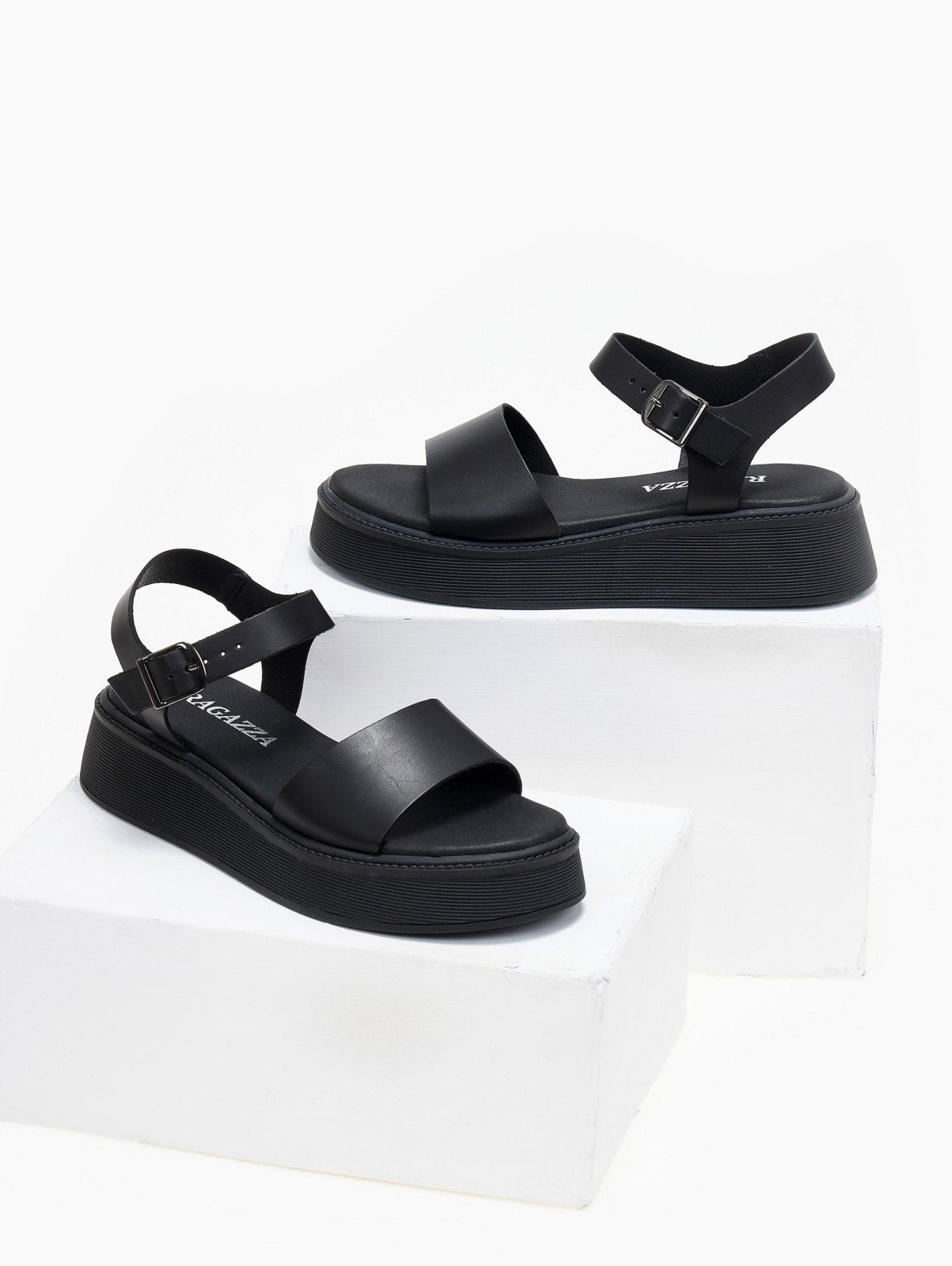 Σανδάλια δερμάτινα με μπαρέτα Ragazza 01234 - Μαύρο