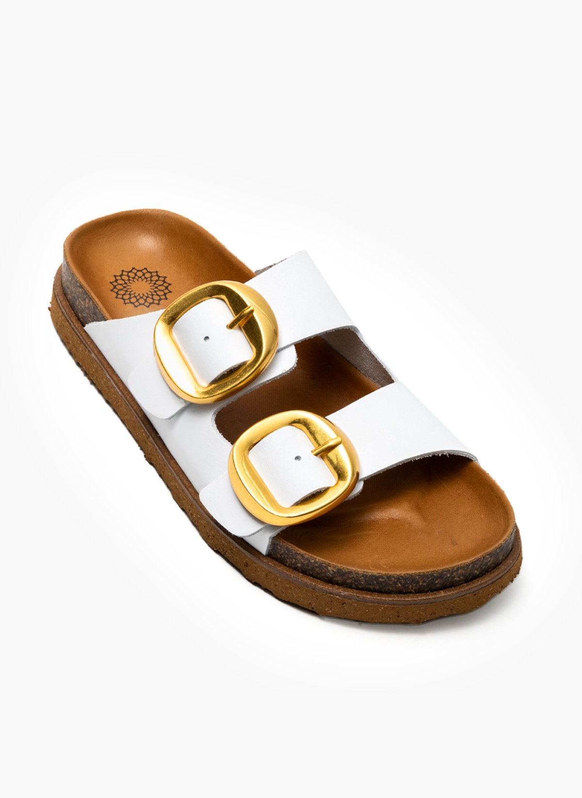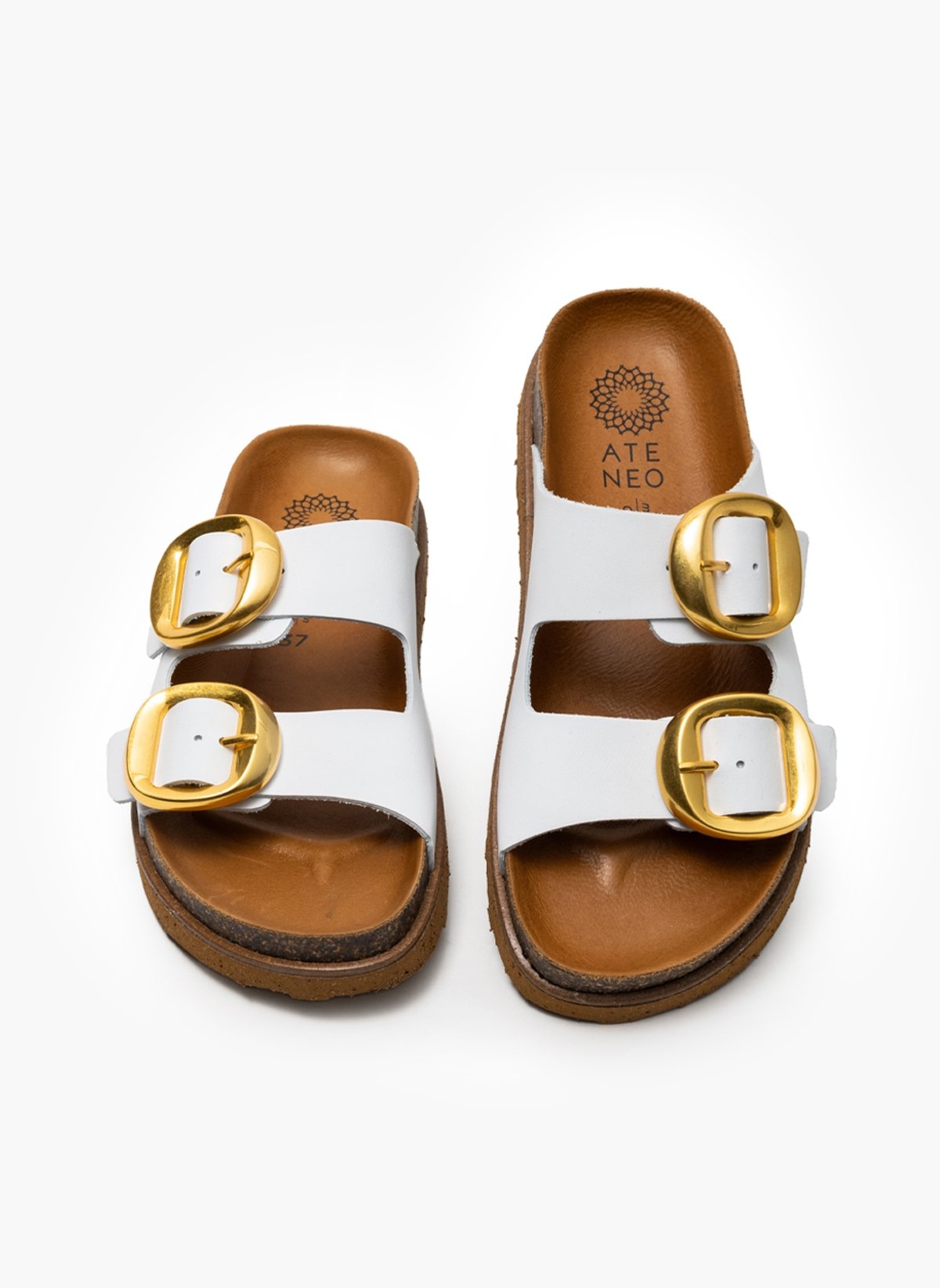 Σανδάλια δερμάτινα με oversize τοκάδες ATENEO - Λευκό