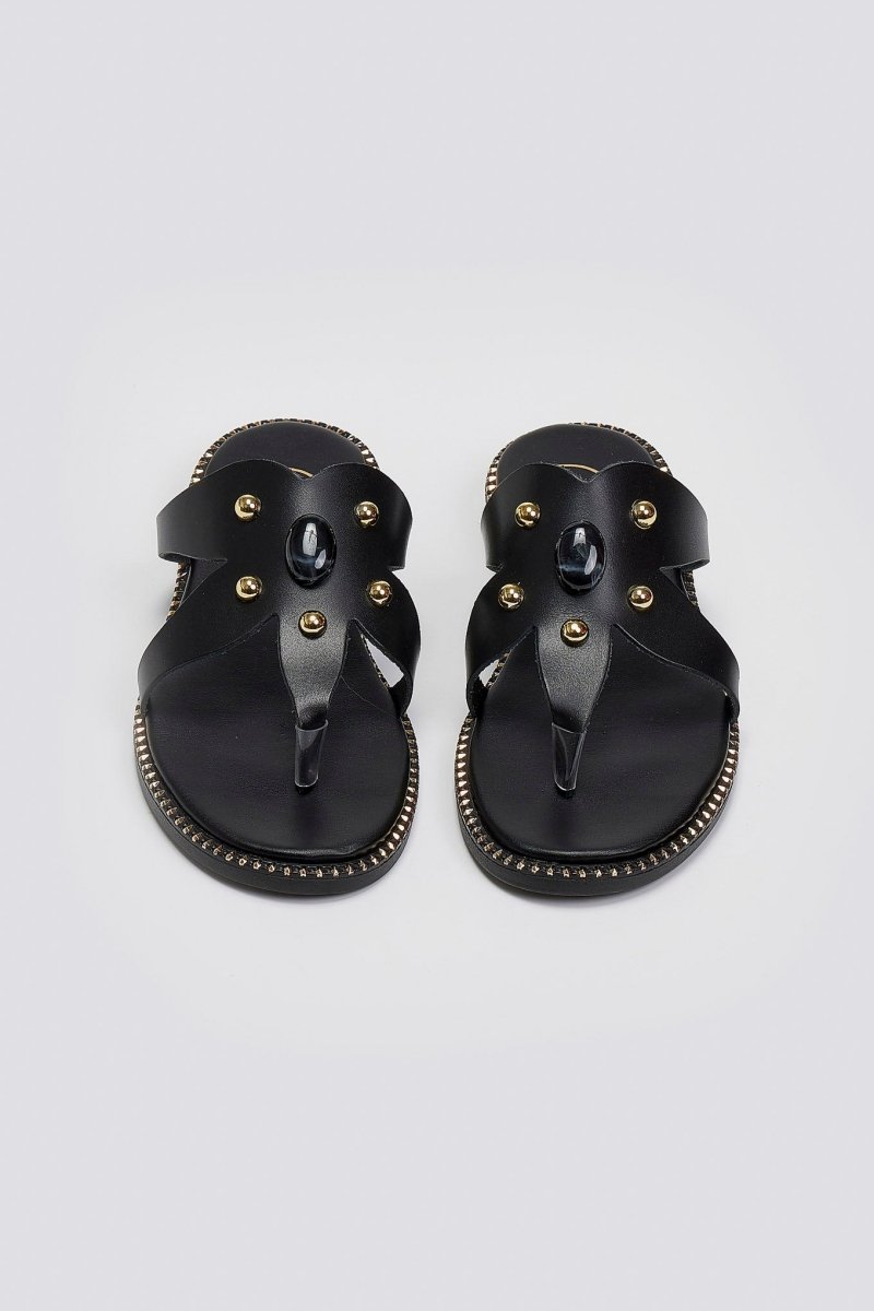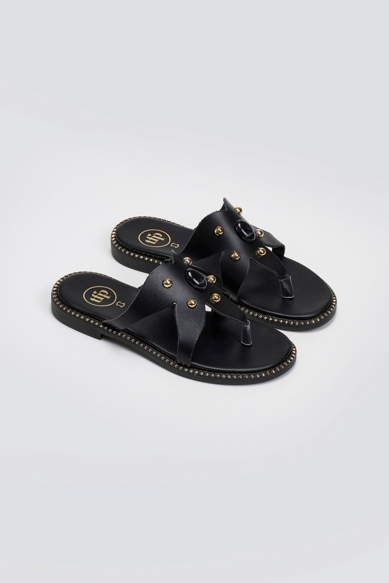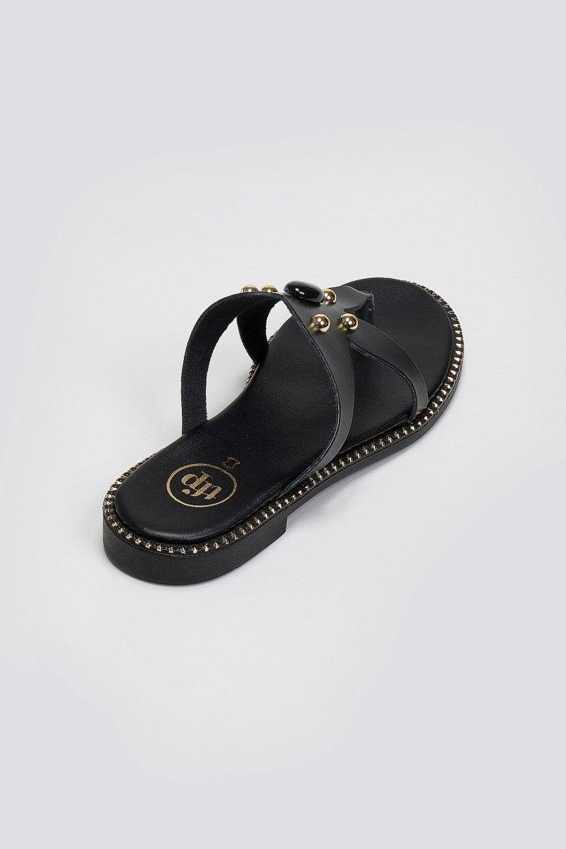 Σανδάλια δερμάτινα με πέτρα και τρουκς Tfp - Μαύρο
