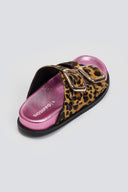 Σανδάλια από γνήσιο δέρμα με animal print ponyskin Gioseppo. Φαρδιές φάσες με μεταλλικούς τοκάδες. Μαλακός δερμάτινος πάτος. Ελαφριά σόλα.