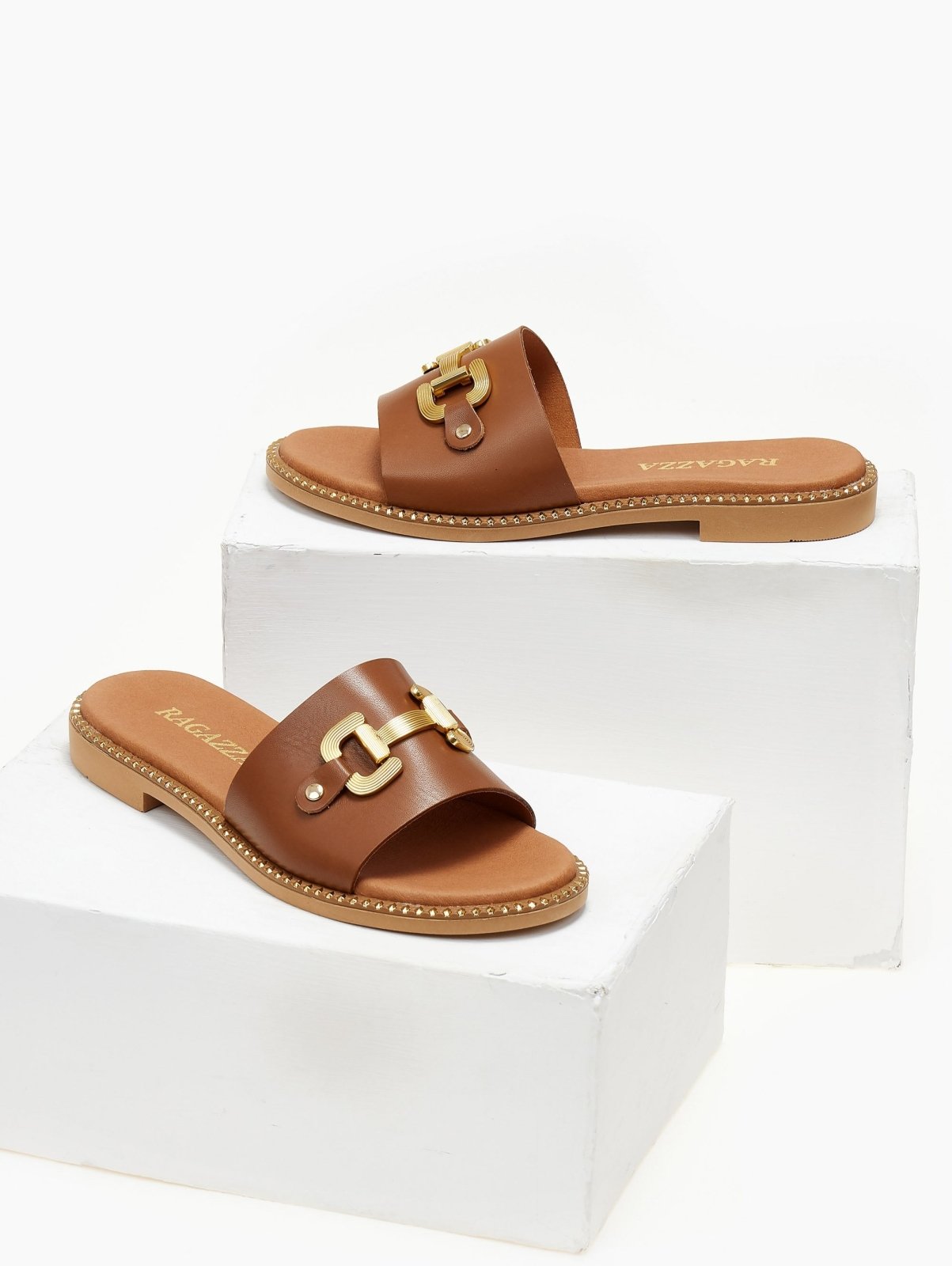 Σανδάλι αμε φαρδιά φάσα από γνήσιο δέρμα Ragazza. μεταλλικό διακοσμητικό. Μαλακός πάτος με ενίσχυση. Η Ελληνική εταιρεία Ragazza ειδικεύεται στα ανατομικά (comfort) παπούτσια τα οποία διαθέτουν την κορυφαία τεχνολογία Dryflex στο εσωτερικό τους, που προσφέρει απόλυτη διαπνοή, απορρόφηση κραδασμών και προστασία από οσμές. Είναι η καλύτερη επιλογή για ατελείωτες ώρες και άνεση.