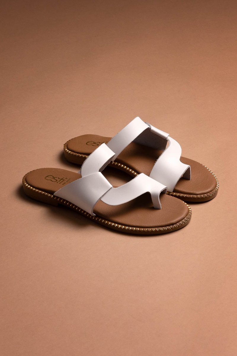 Σανδάλια από γνήσιο δέρμα Εstil. Λοξή περαστή φάσα στο κουτεπιέ. Comfort μαλακός πάτος με ενίσχυση. Μεταλλική λεπτομέρεια περιμετρικά της σόλας. Ελληνικής κατασκευής.