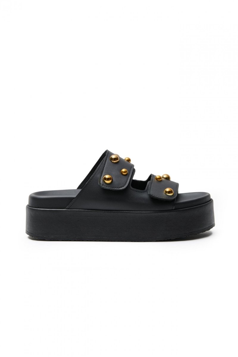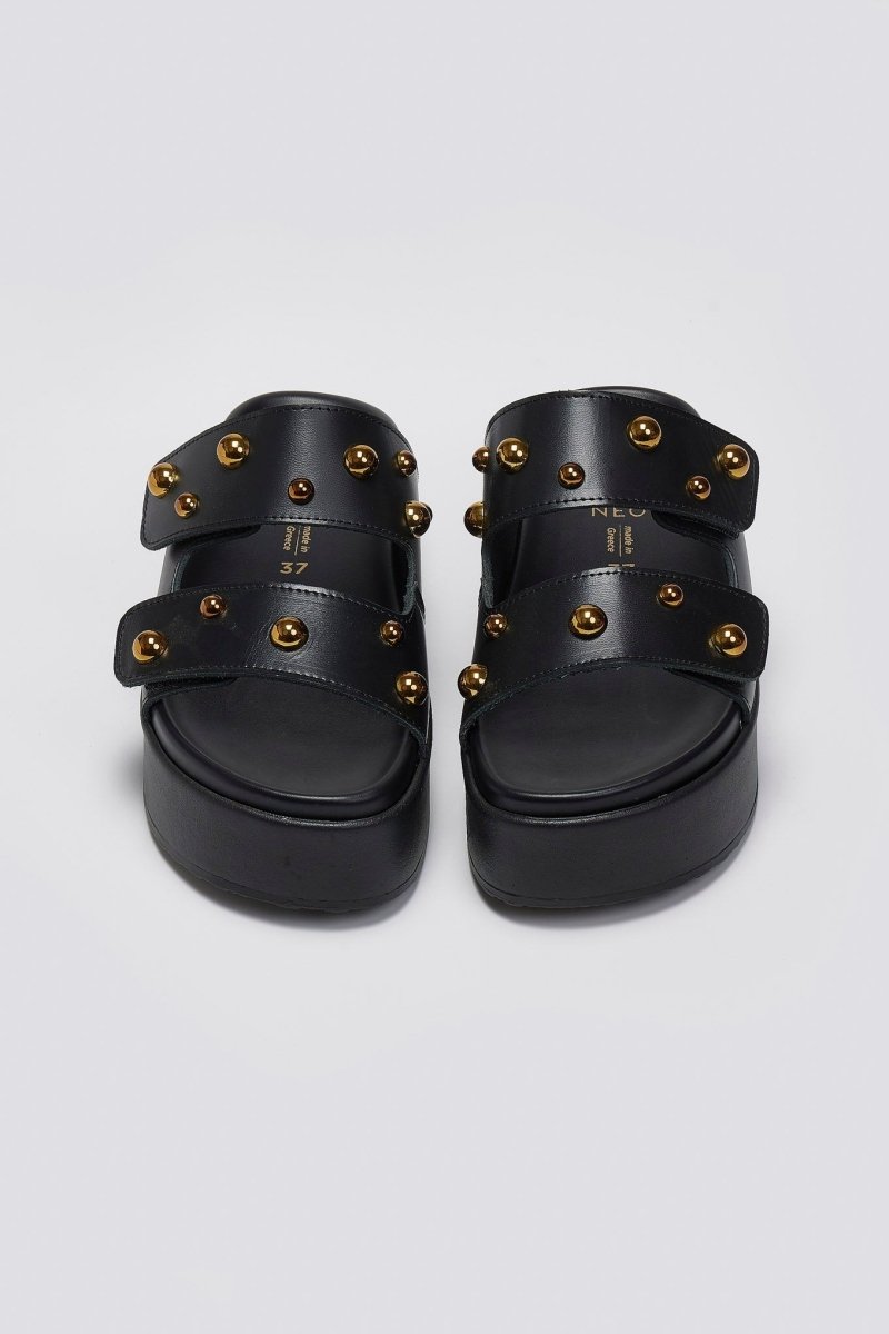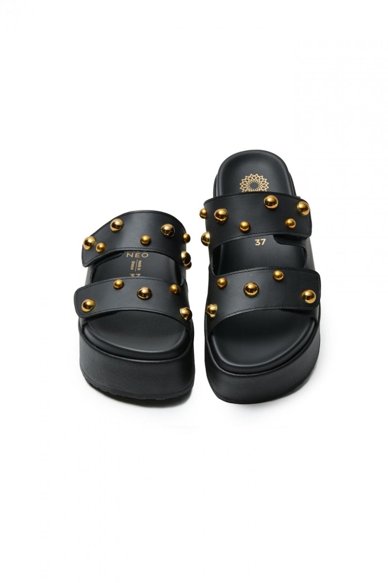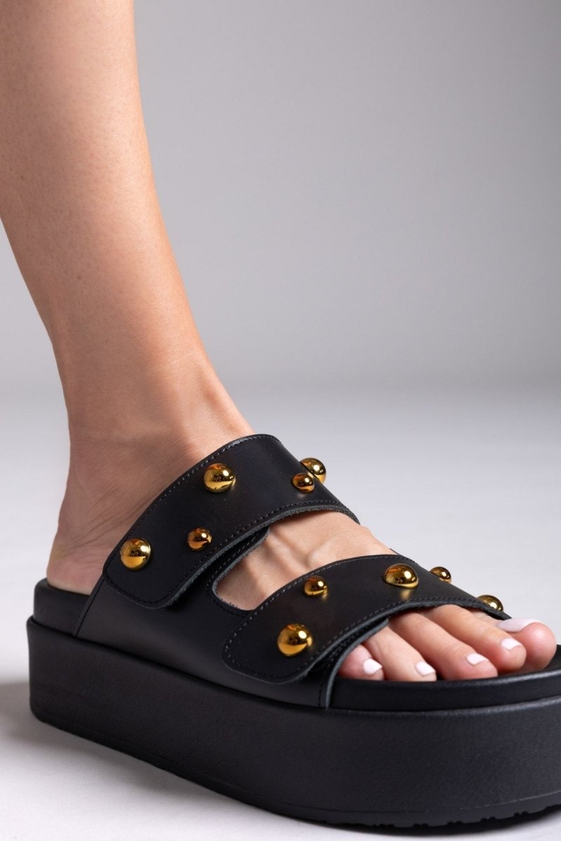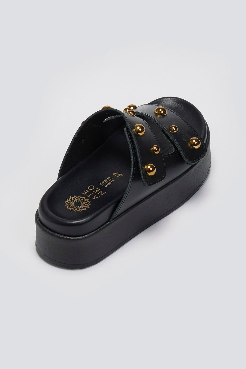Σανδάλια δερμάτινα με τρουκς ATENEO - Μαύρο