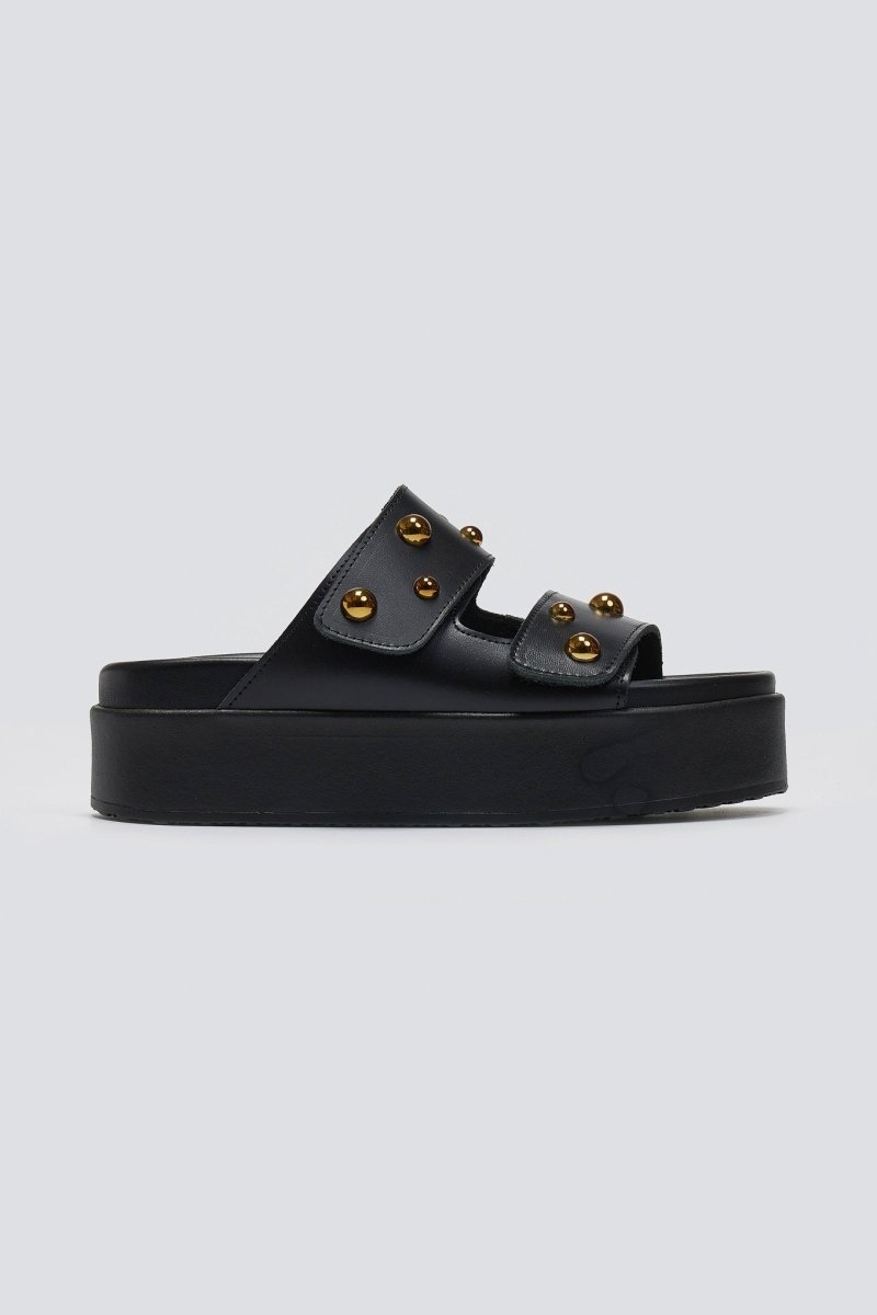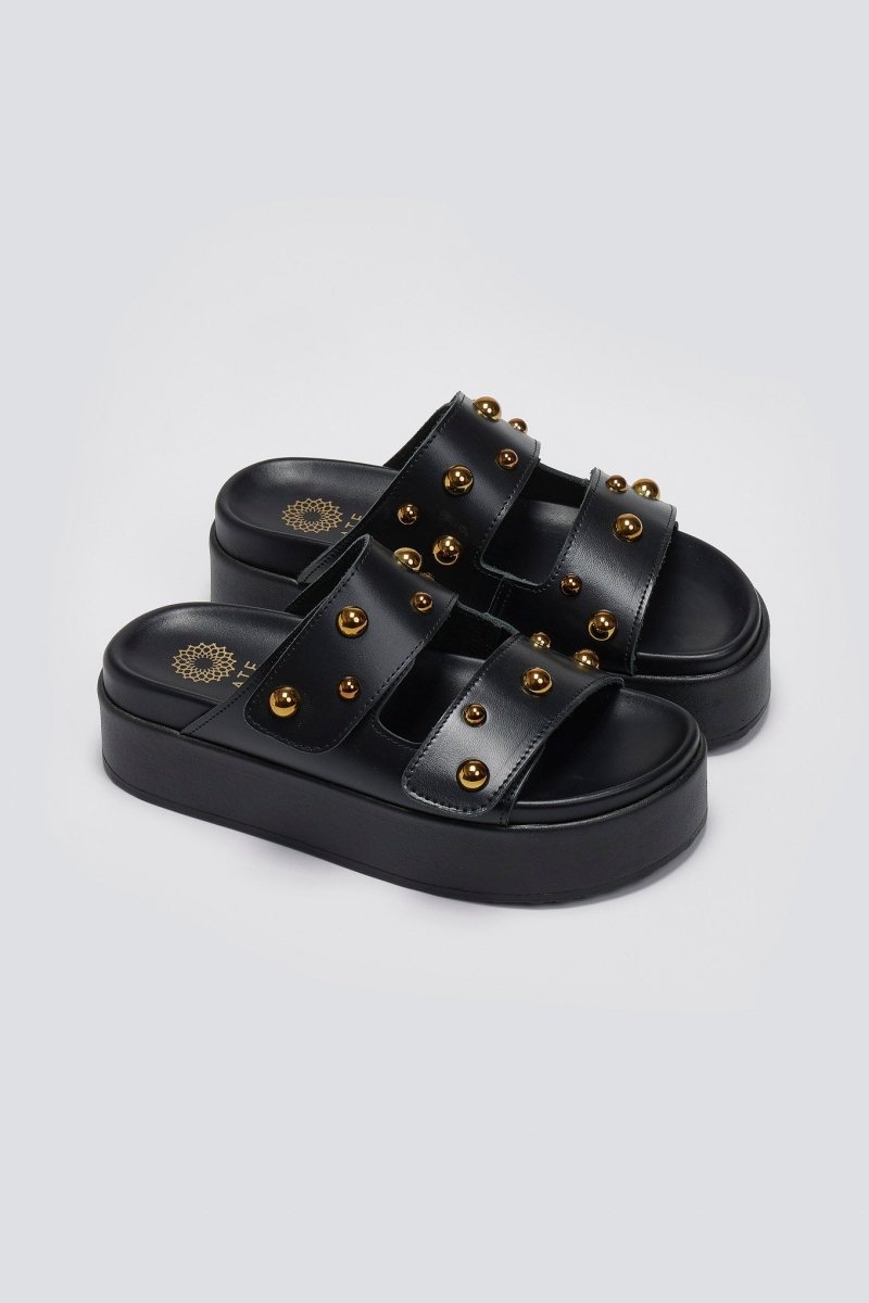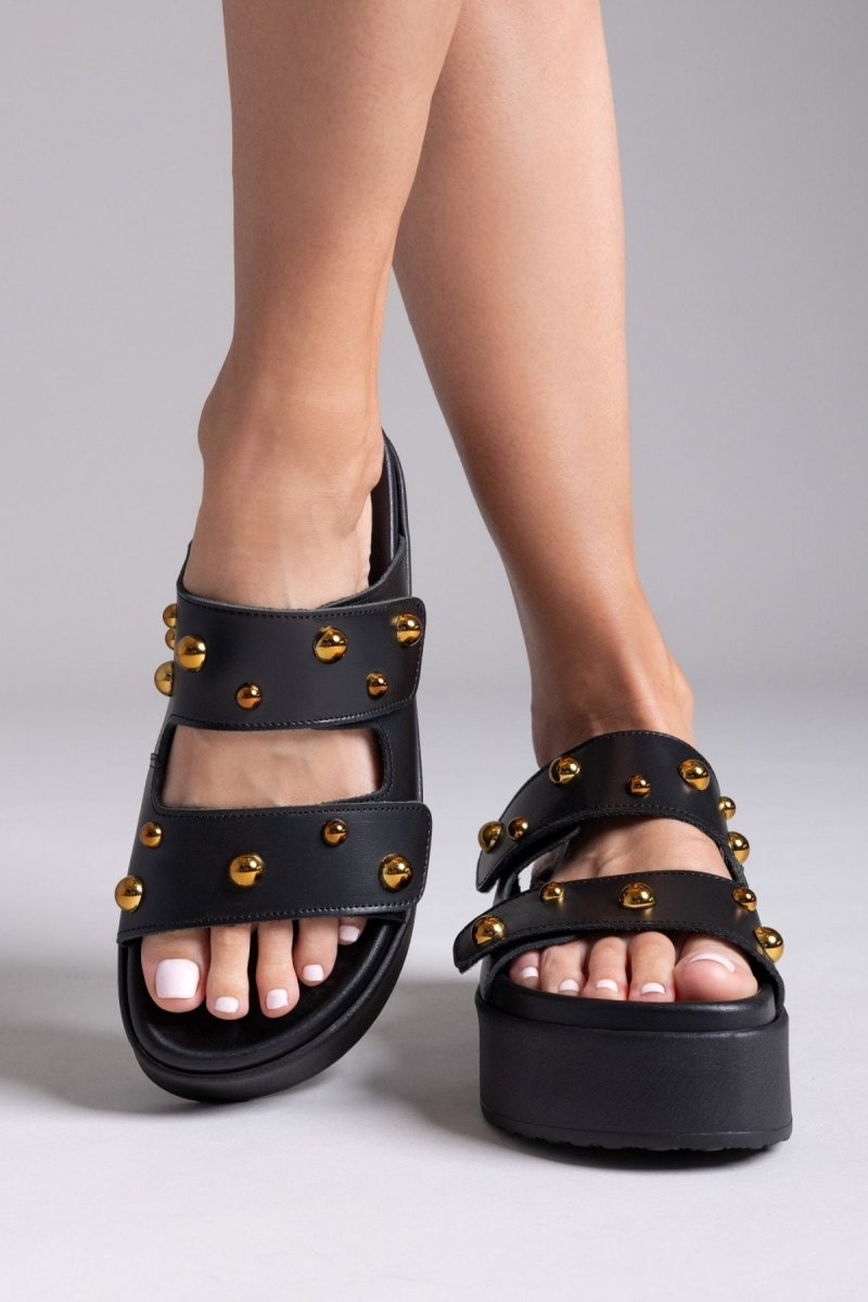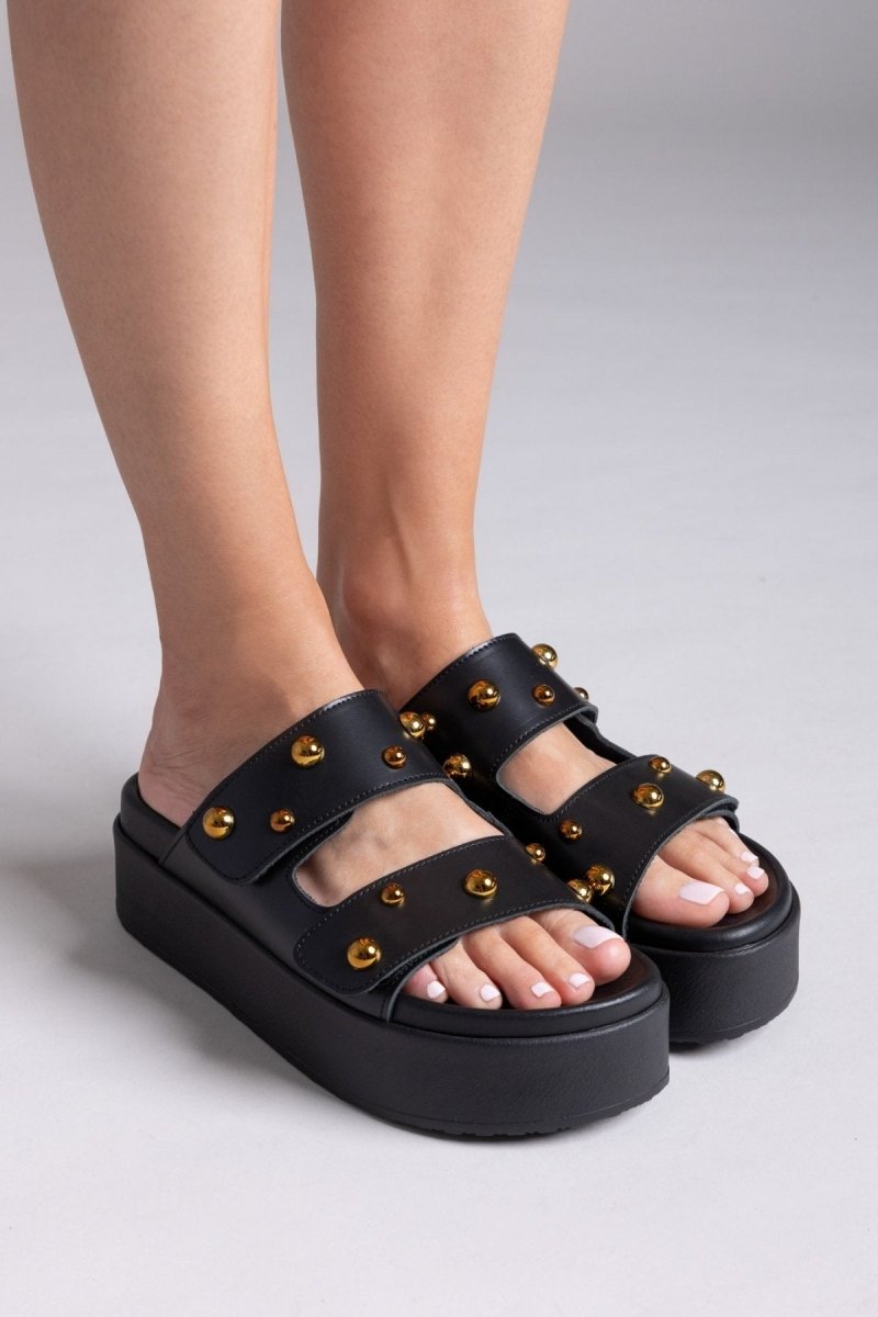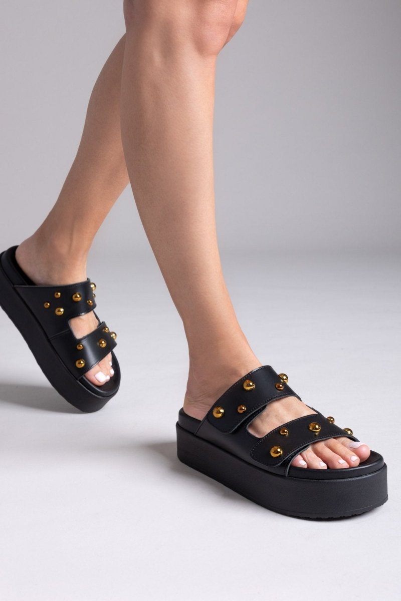 Σανδάλια δερμάτινα με τρουκς ATENEO - Μαύρο