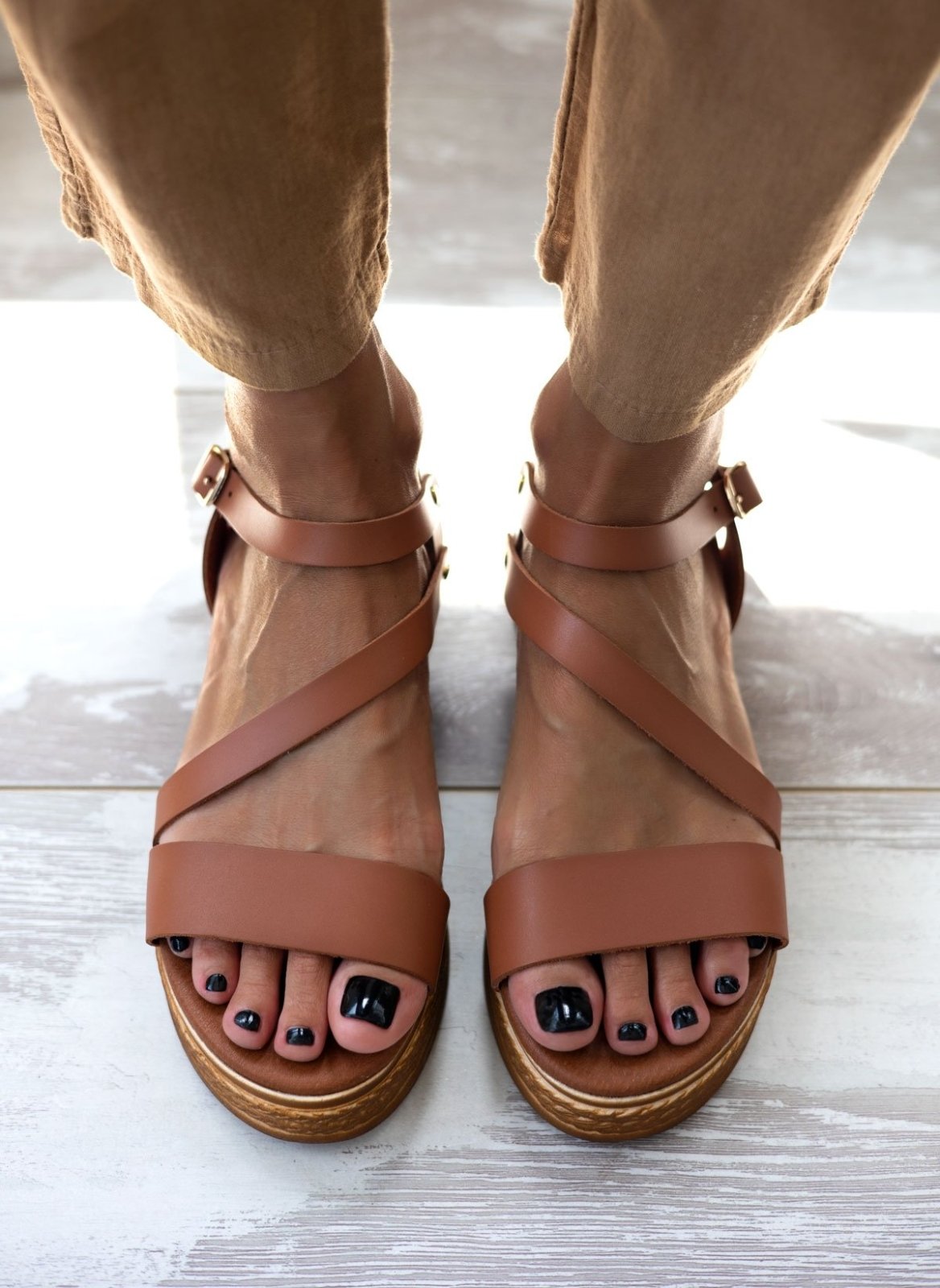 Σανδάλια flatforms δερμάτινα estil - Ταμπά