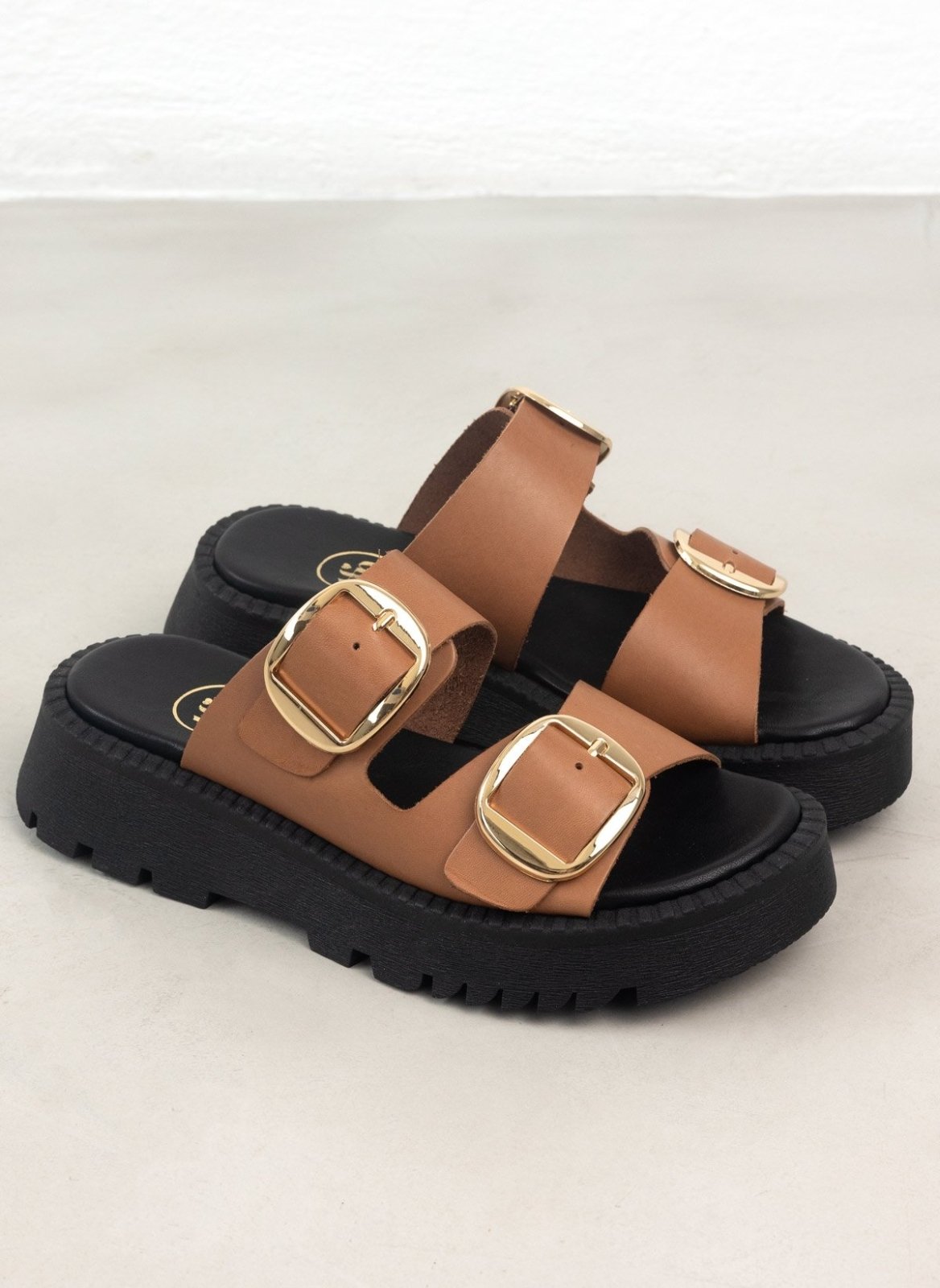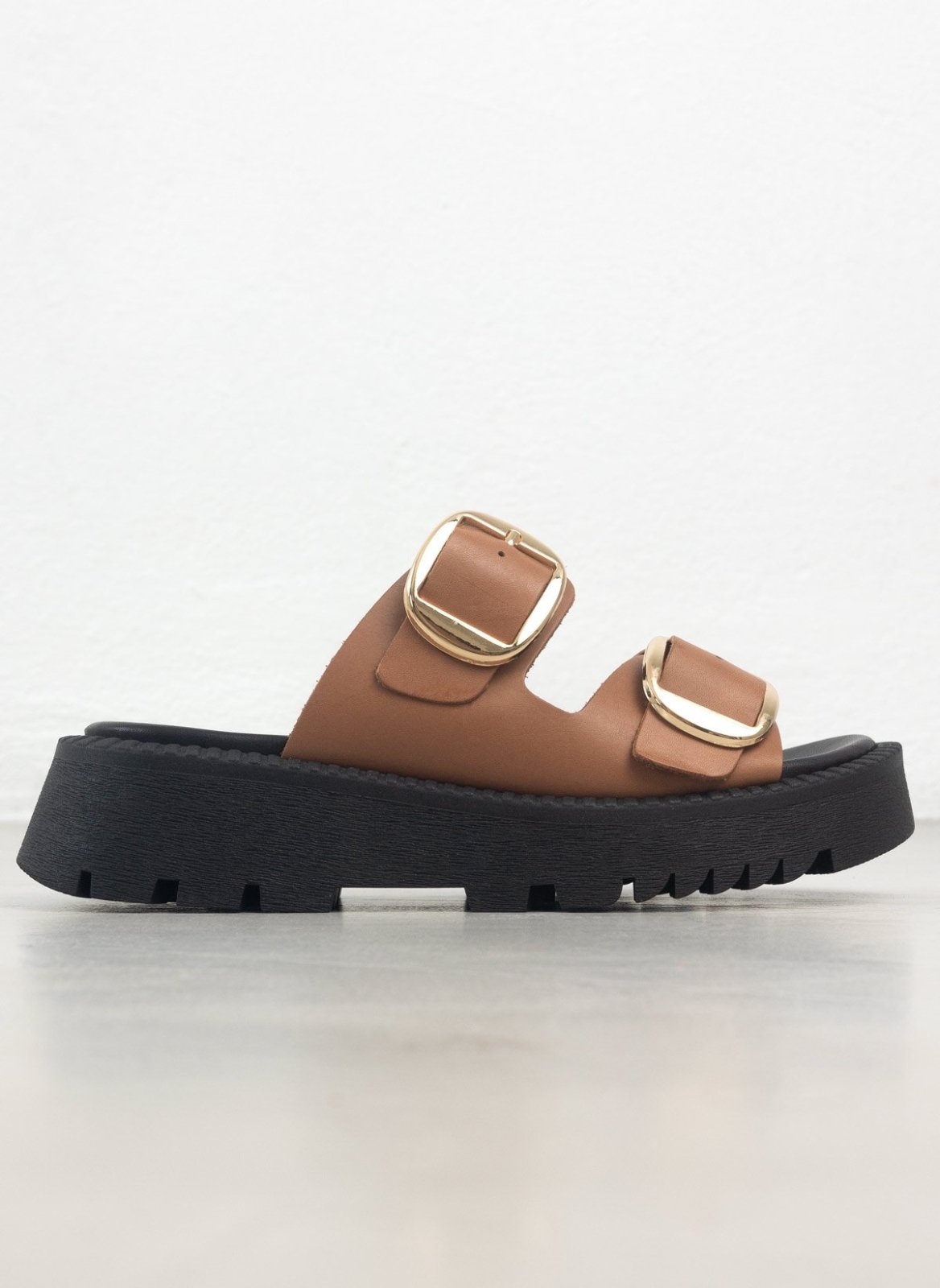 Σανδάλια flatforms δερμάτινα με διπλή φάσα TFP - Mocha