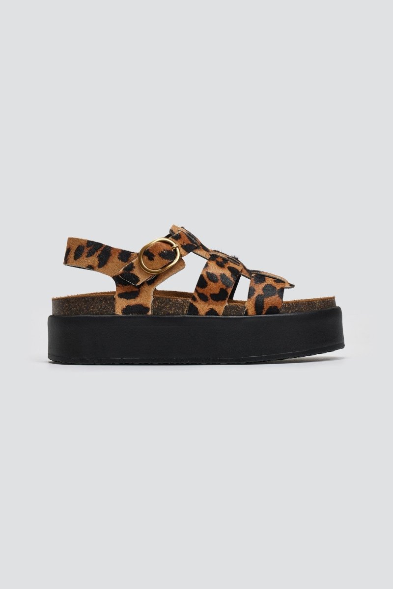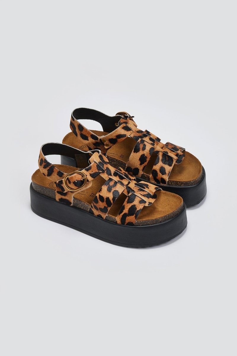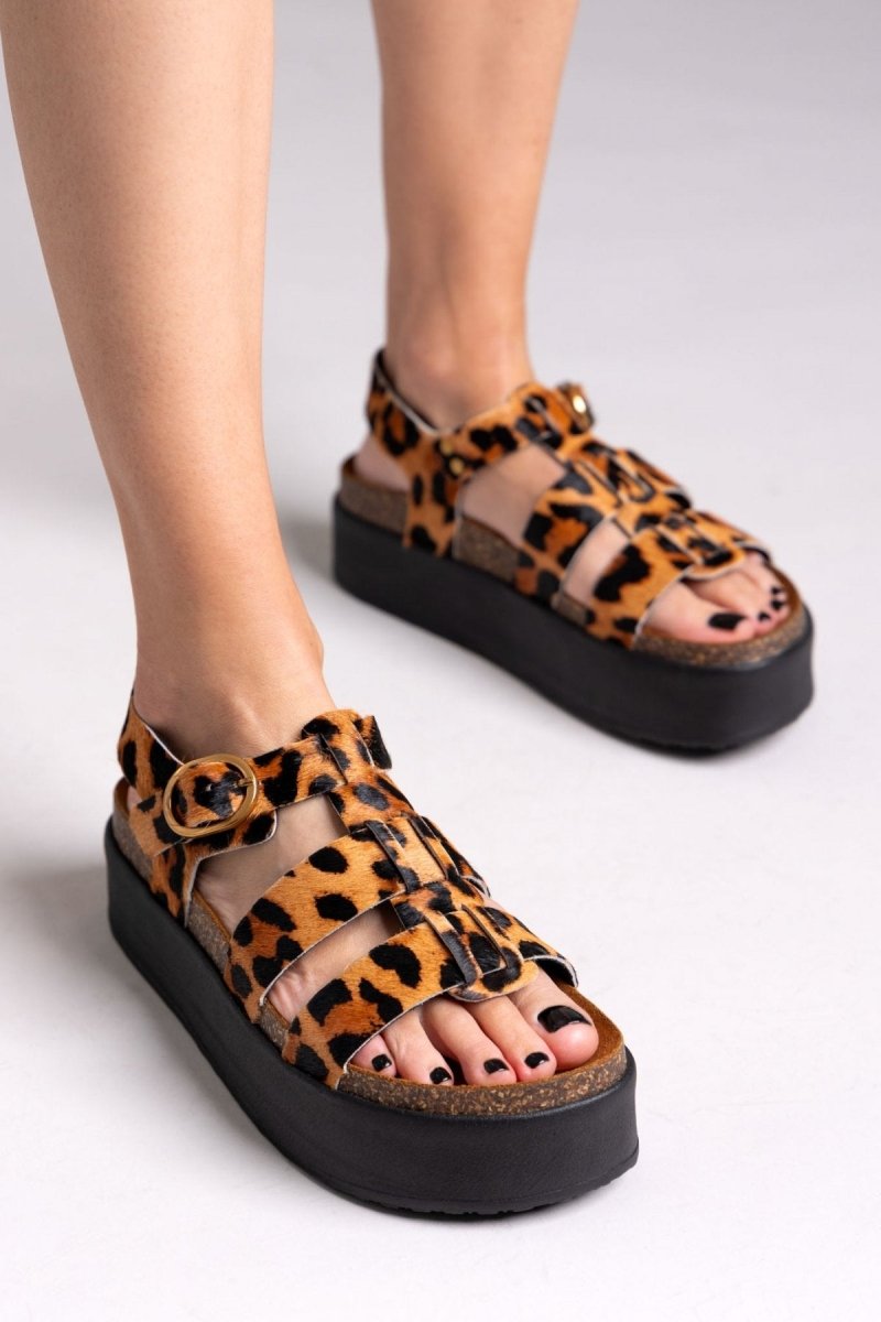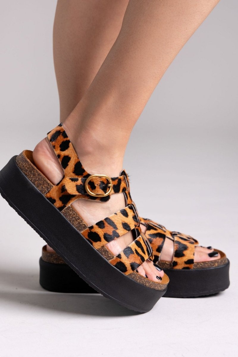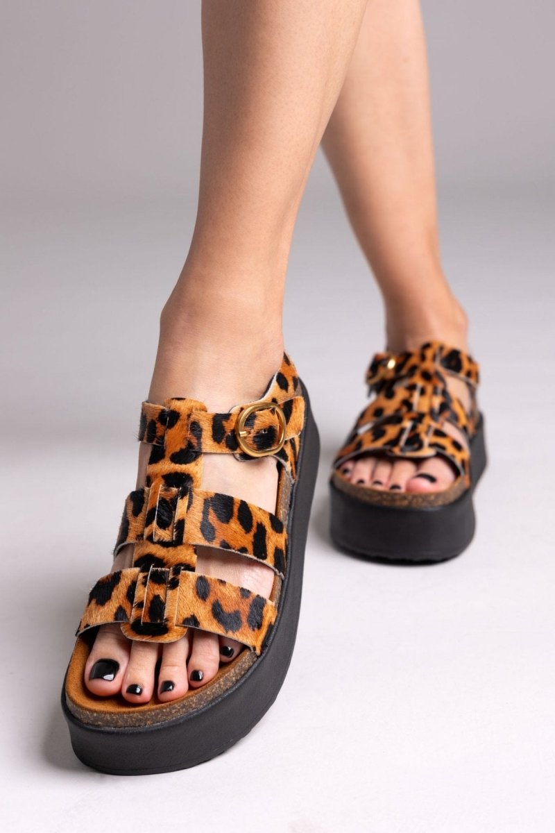Σανδάλια flatforms δερμάτινα με print ATENEO - Leopard
