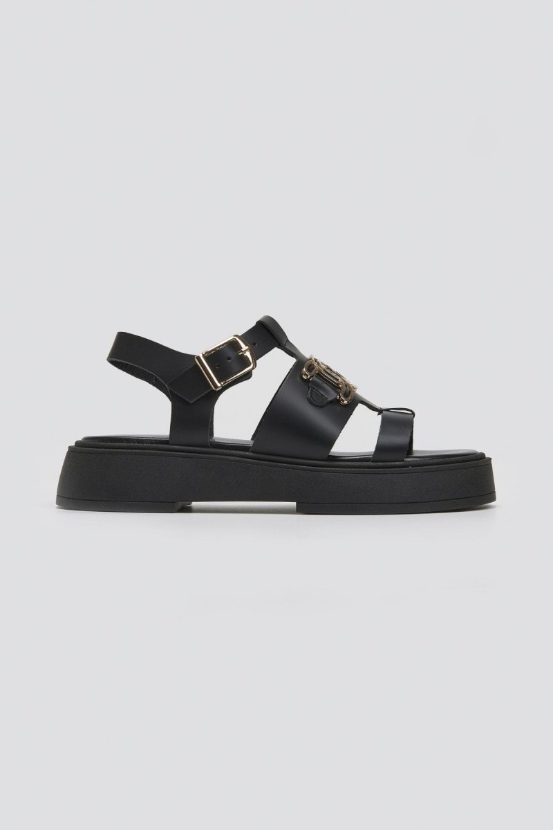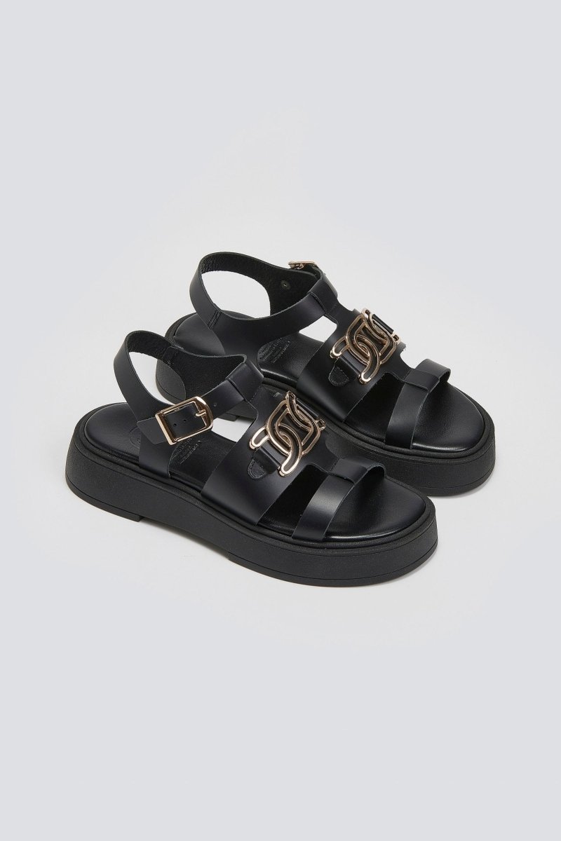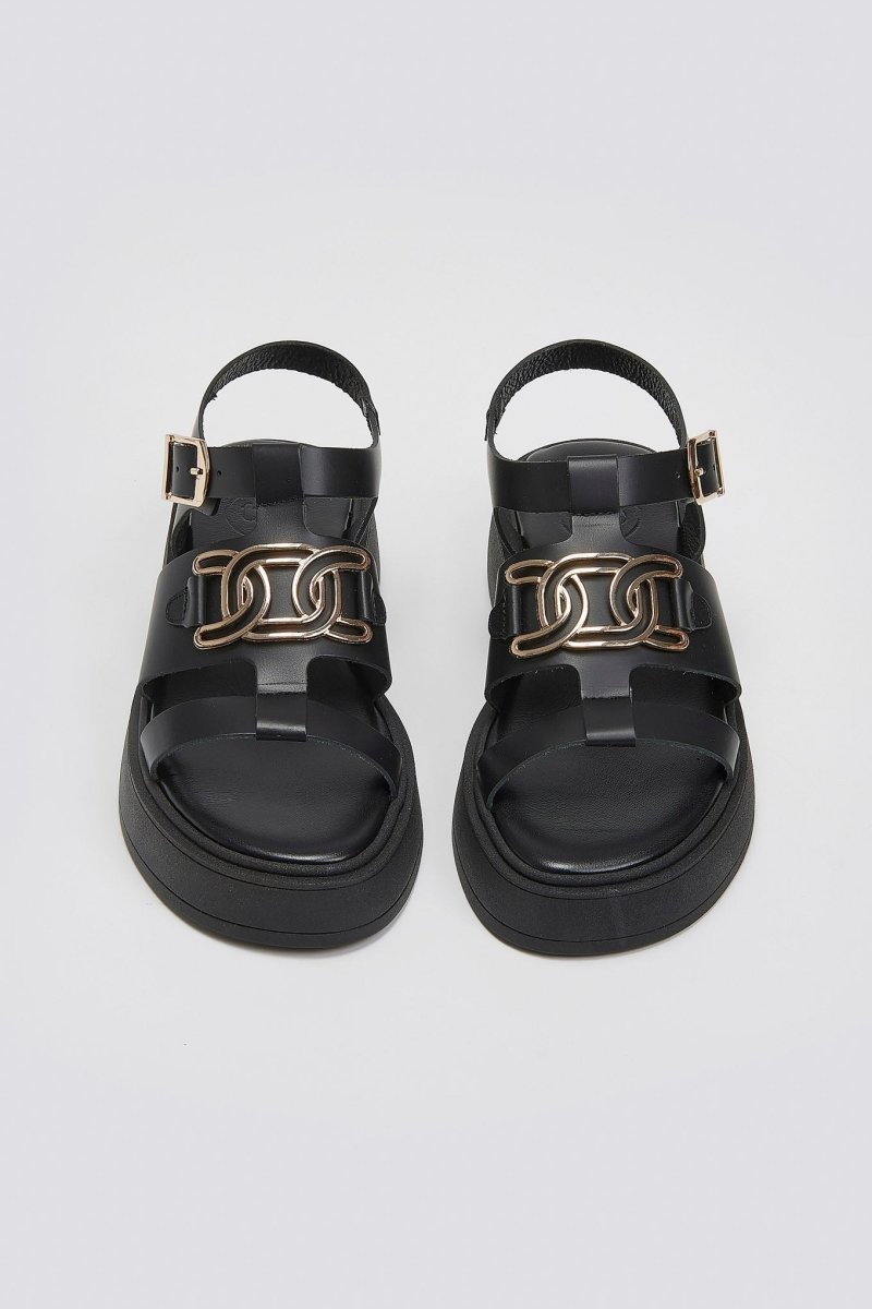 Σανδάλια flatforms δερμάτινα Tfp - Μαύρο