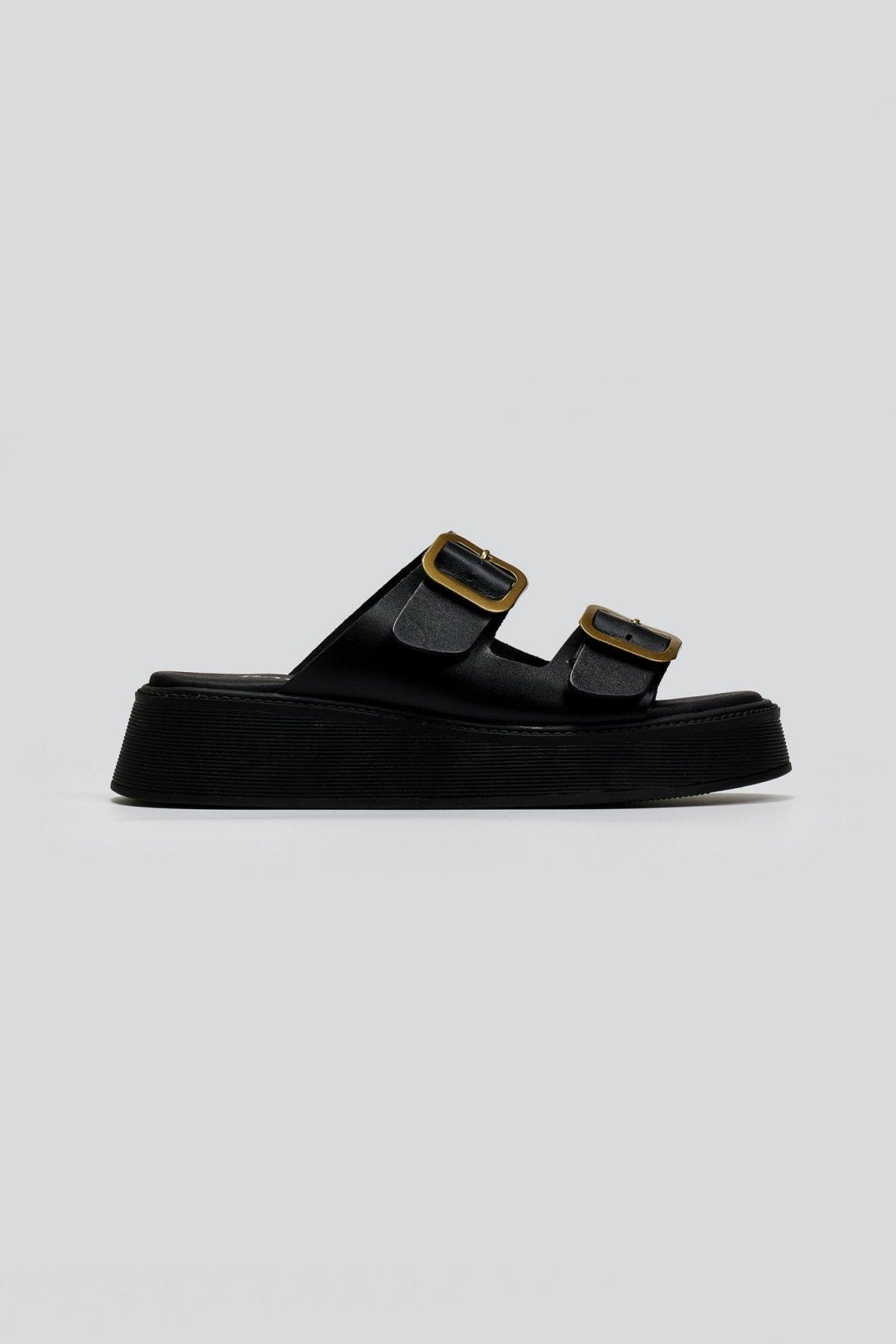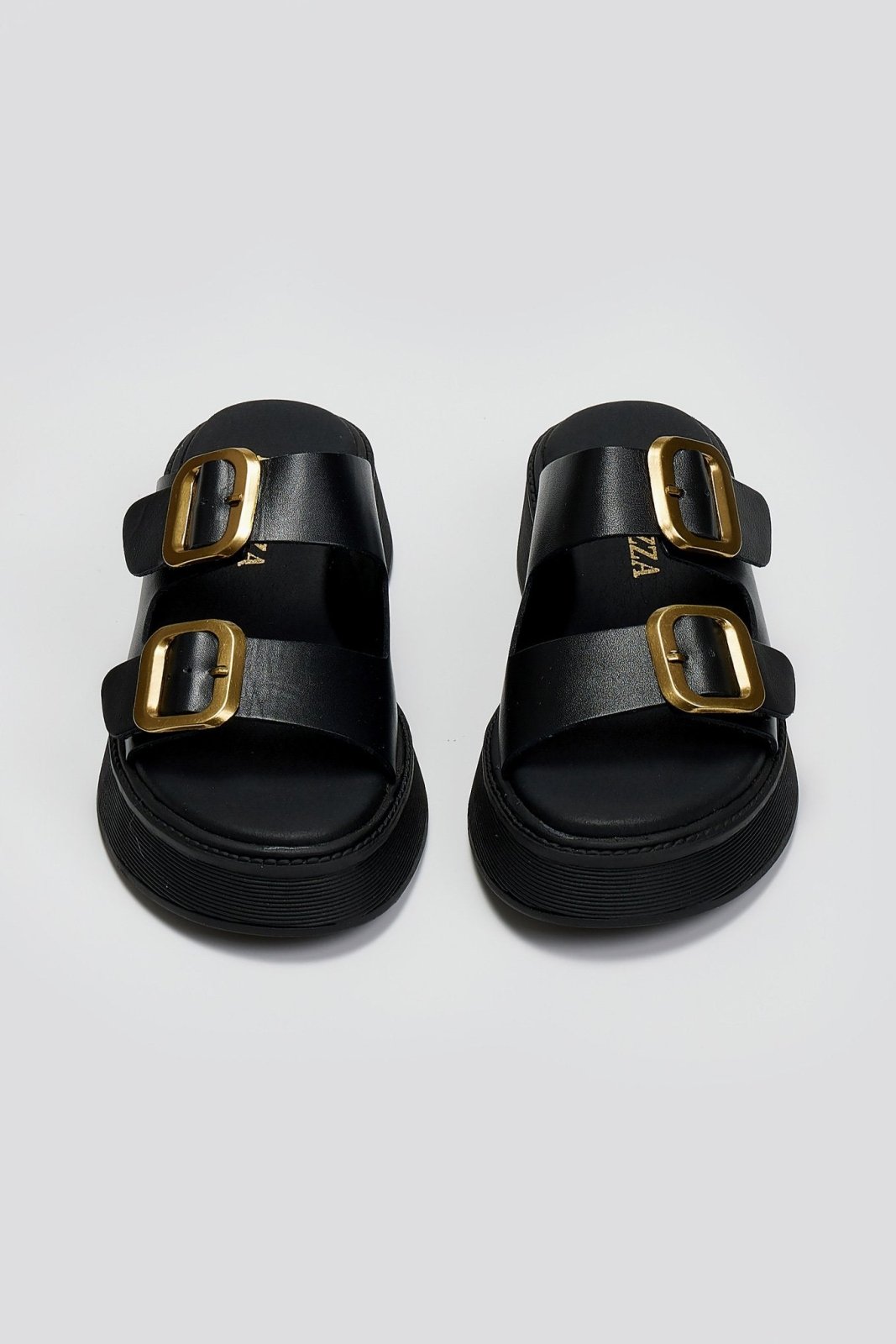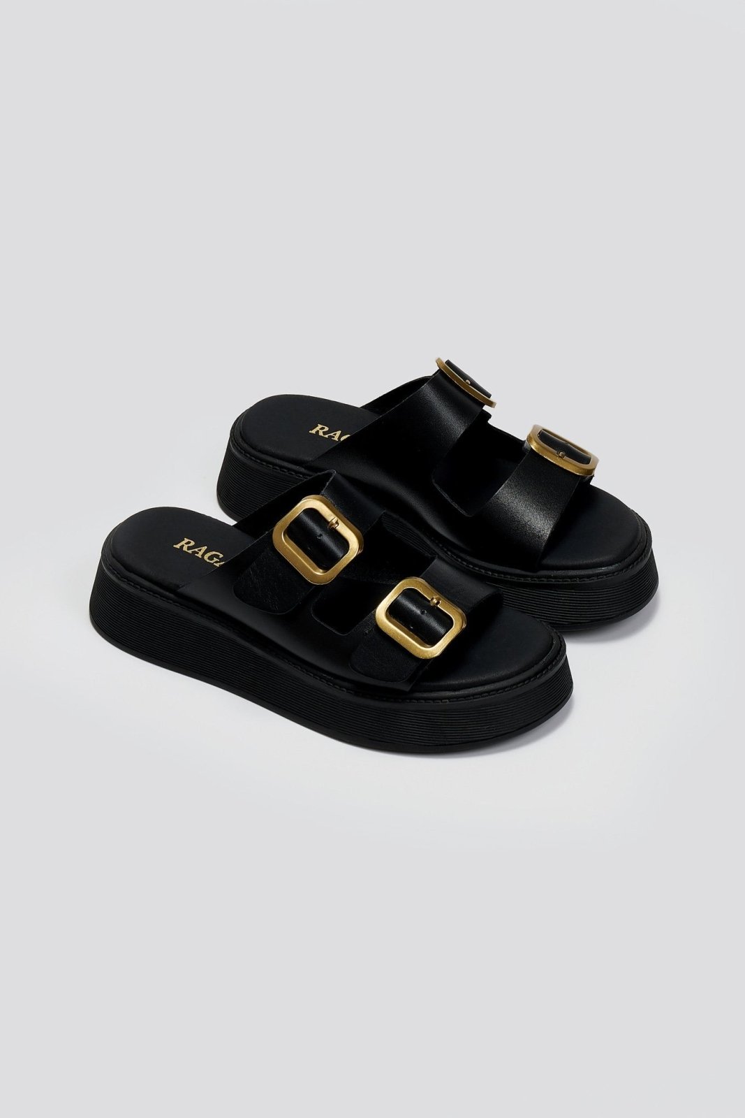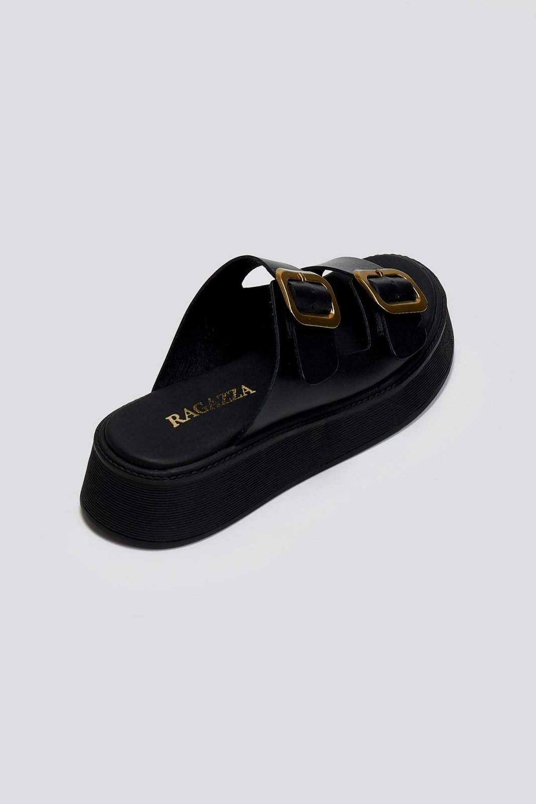 Σανδάλια flatforms δερμάτινα με τοκάδες Ragazza 01236 - Μαύρο