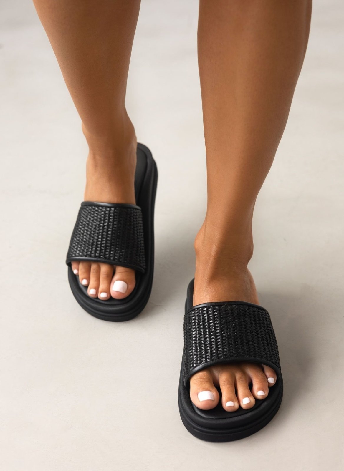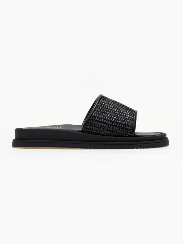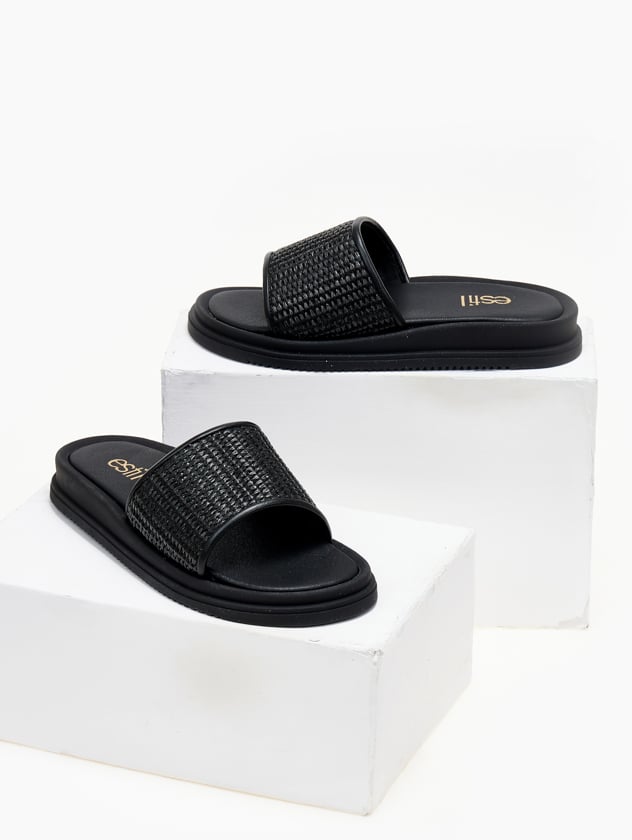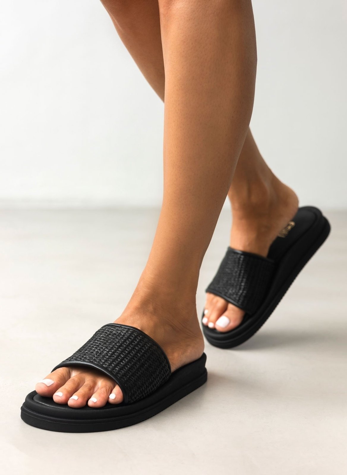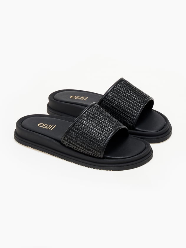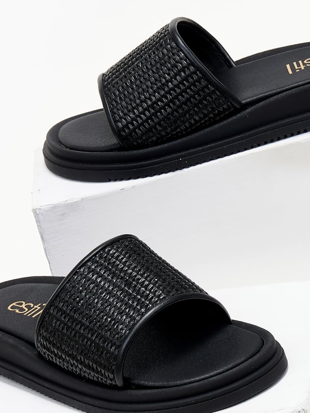 Σανδάλια flatforms με φαρδιά ψάθινη φάσα Estil - Μαύρο