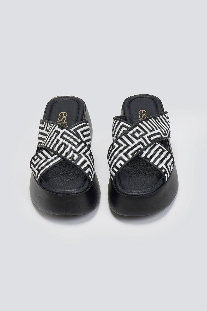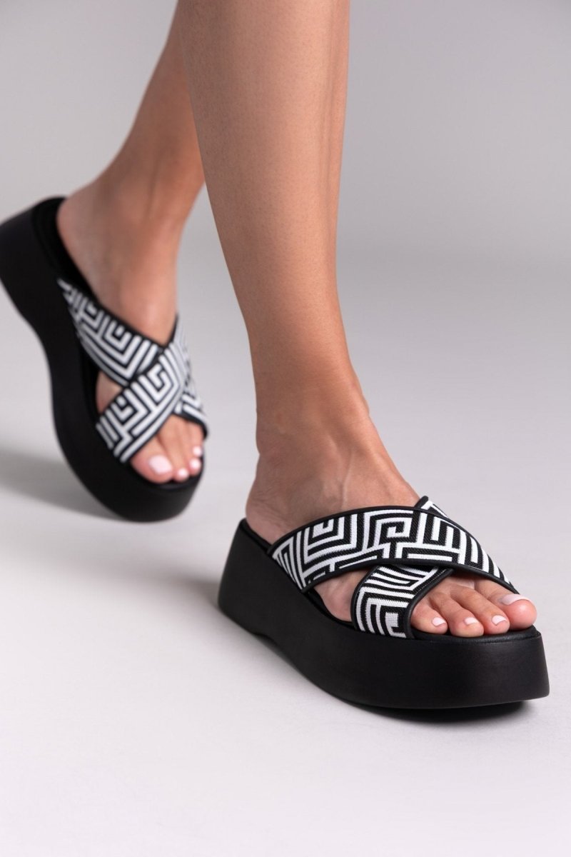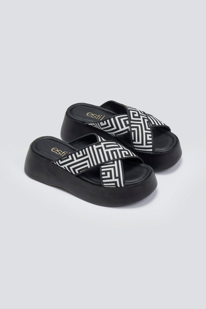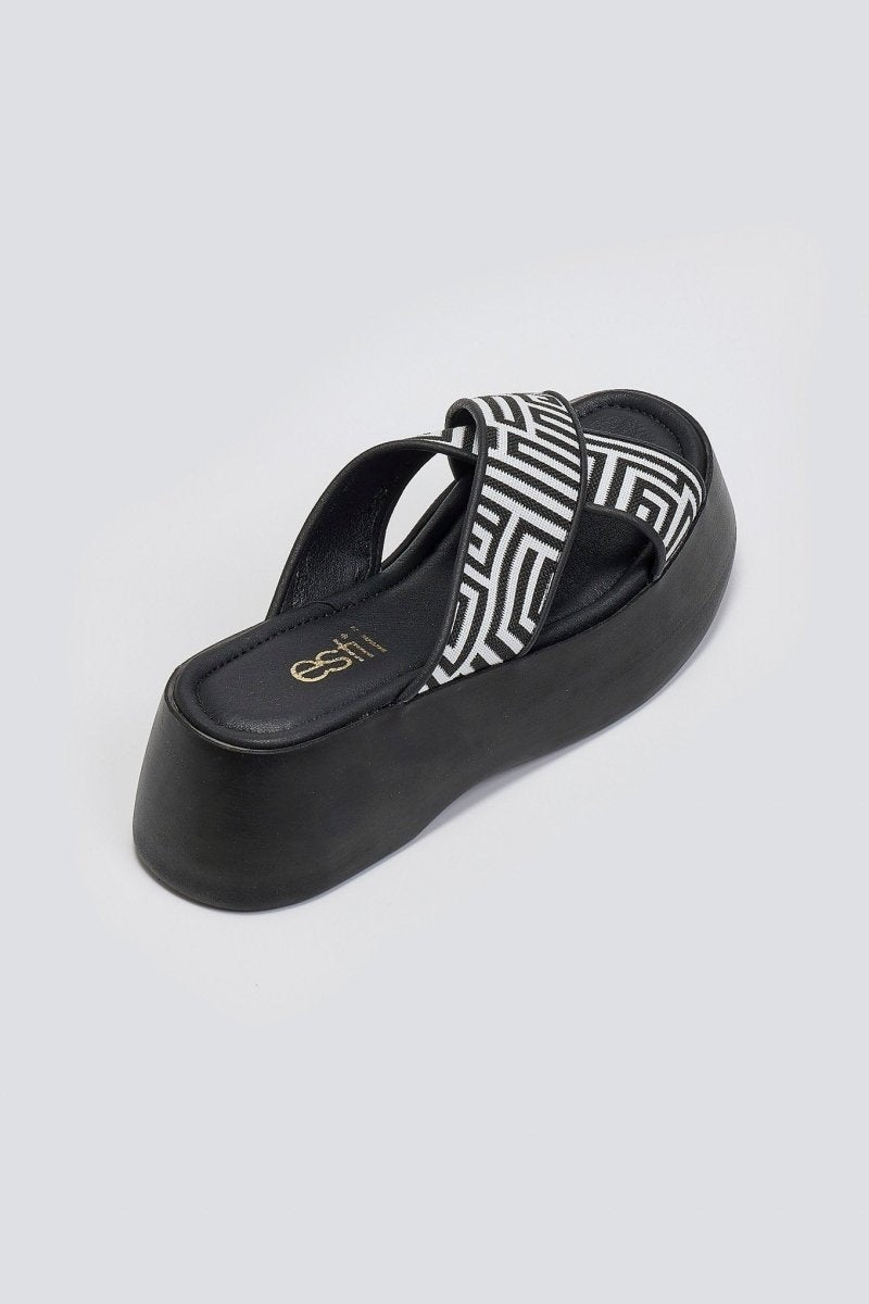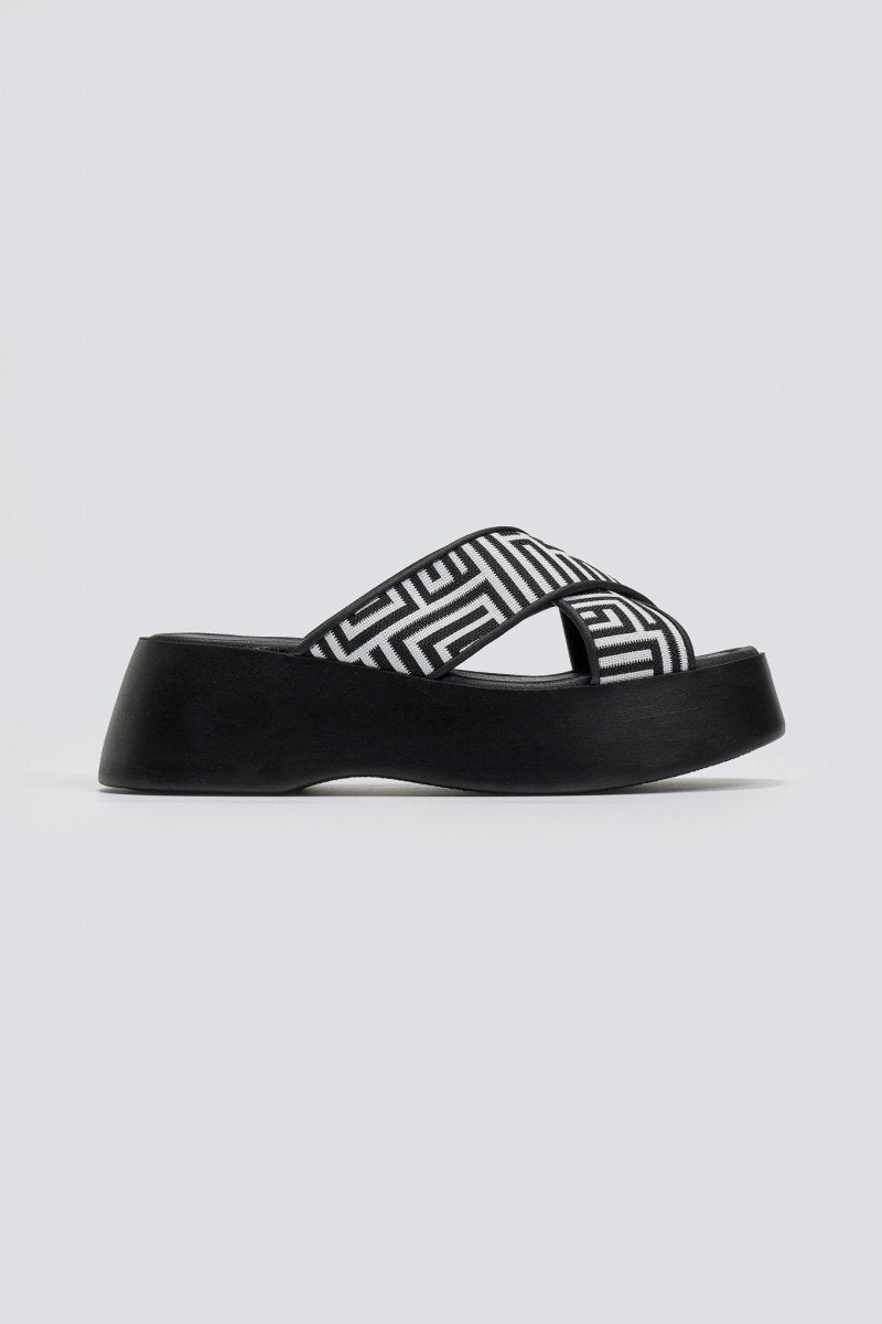 Σανδάλια flatforms crossover με print Estil - Μαύρο