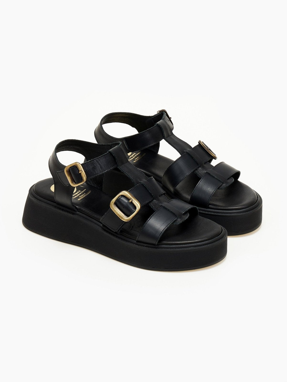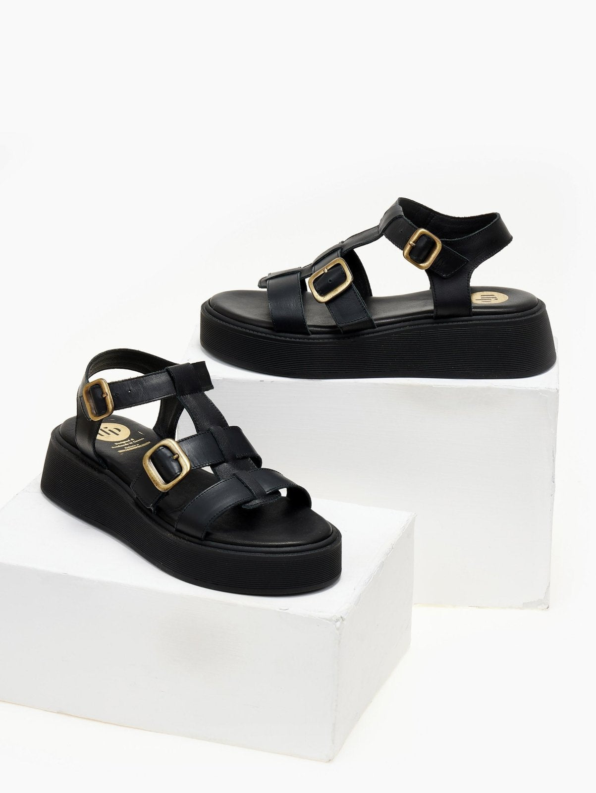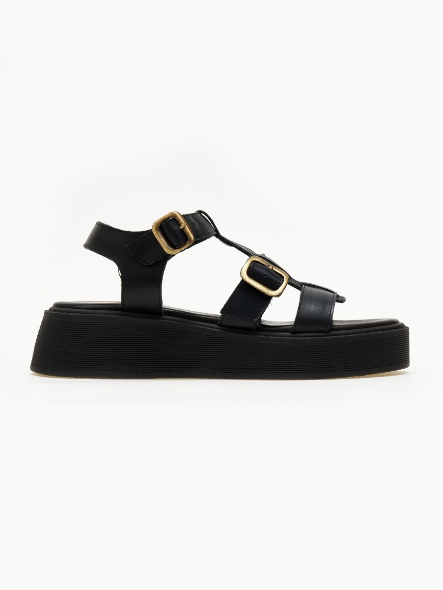 Σανδάλια flatforms δερμάτινα gladiator TFP - Μαύρο
